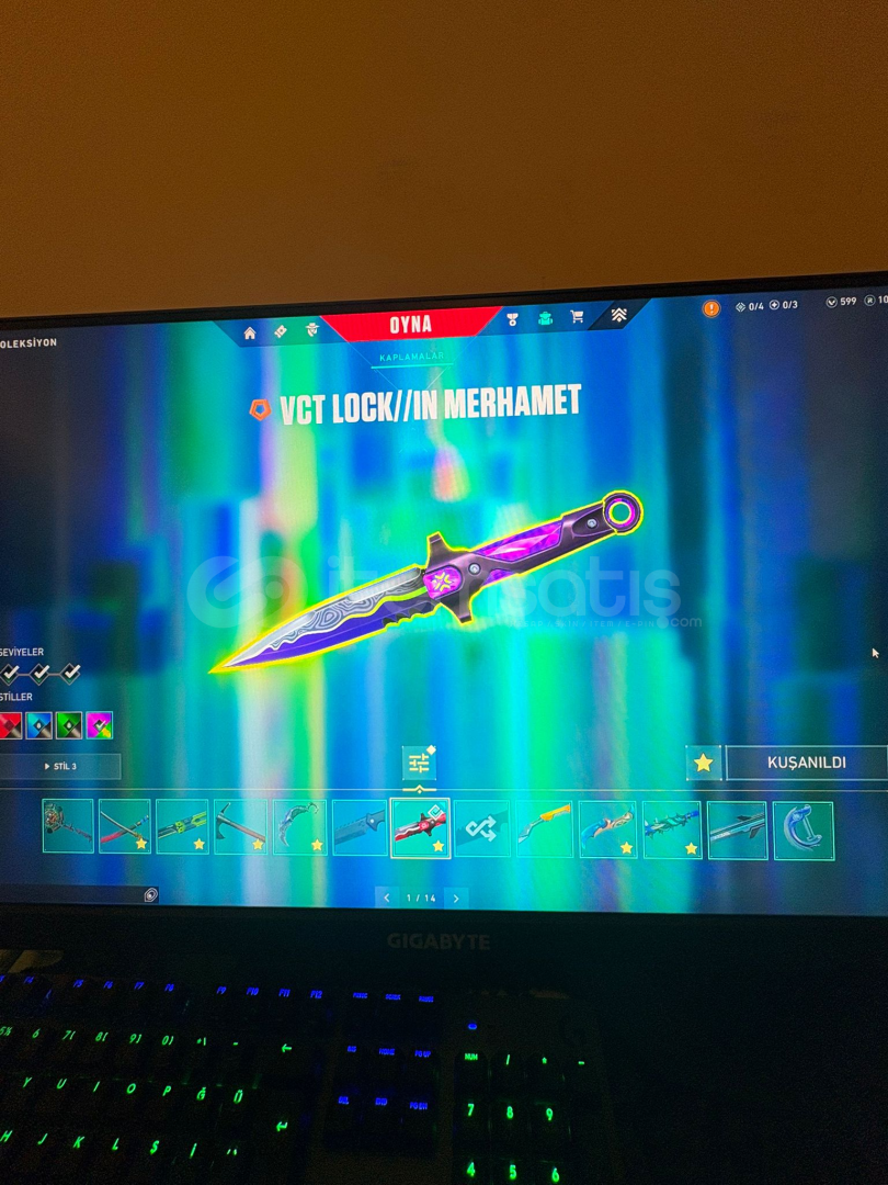BIÇAKLAR : VCT LOOK IN - AY YADİGARI - ONİ KILICI - RGX KELEBEK - SERİ BALTA - YAĞMACI KARAMBİT( VE SAVAŞ BİLETİ SKİNLERİ )
