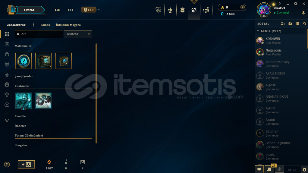 Skinleri vardır. En yüksek ulaştığı rank Gold 2 şuan Gümüş 4 97 LP DE