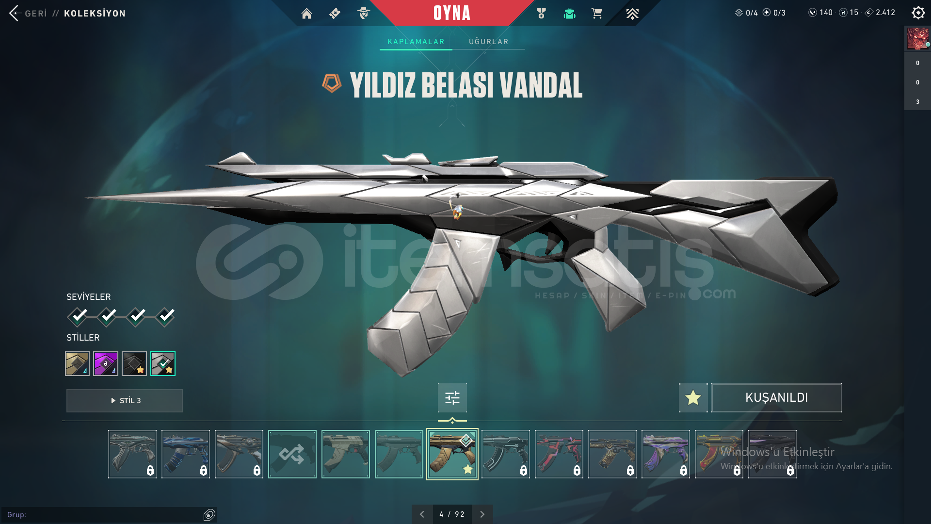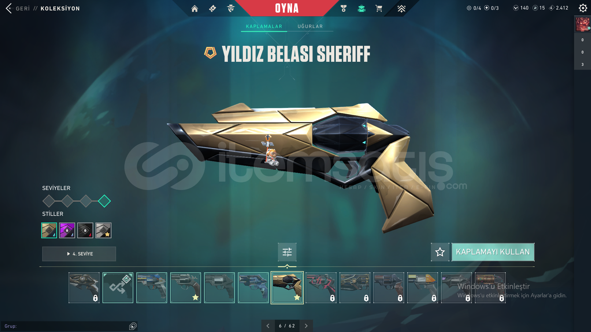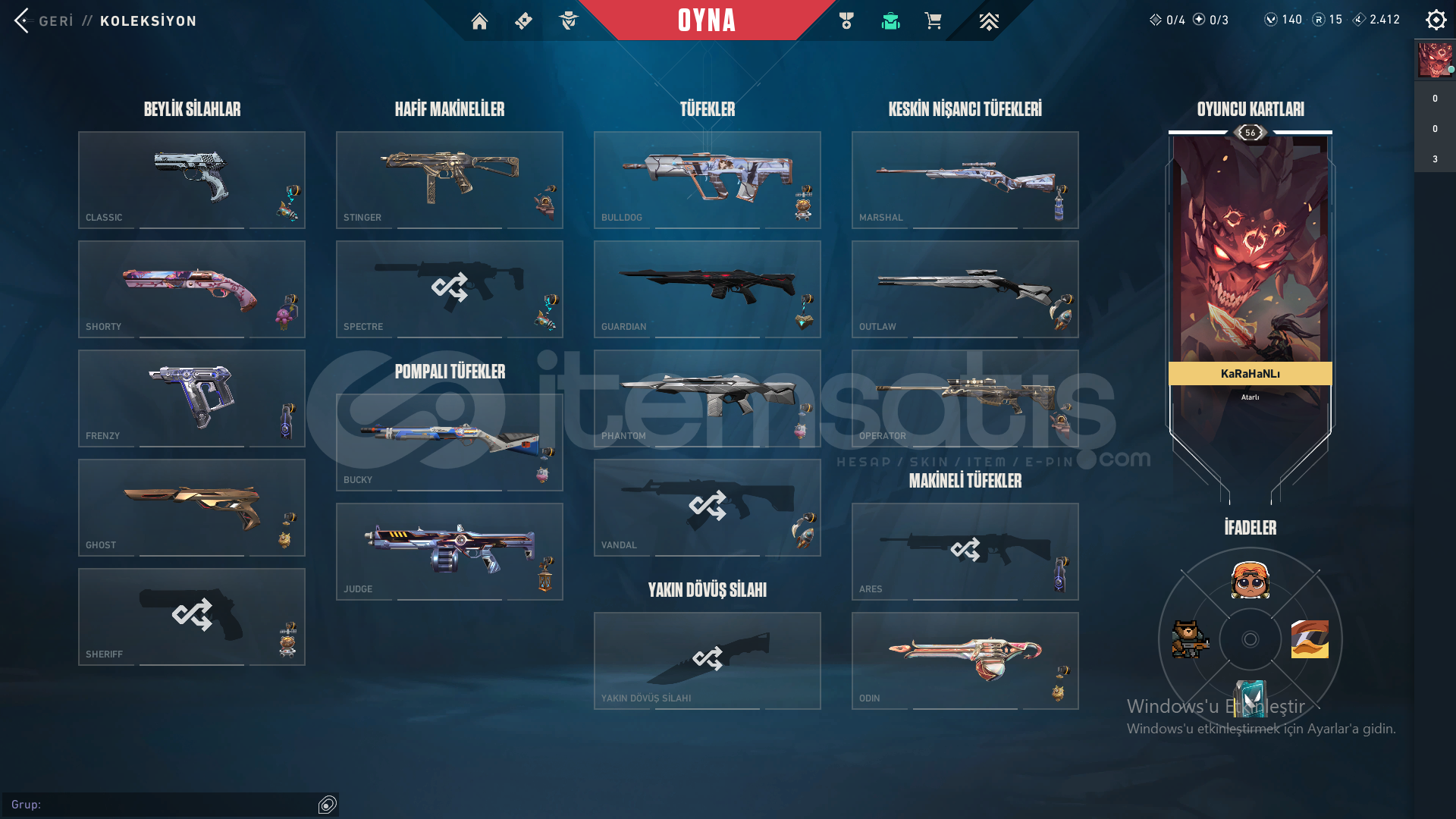 Yıldız Belası Seti, Seri Tetik Sherif, Evori Odin, Kuronami Specter, Ulu pençe Ghost37 Skin, her silah için skın var,Unranked