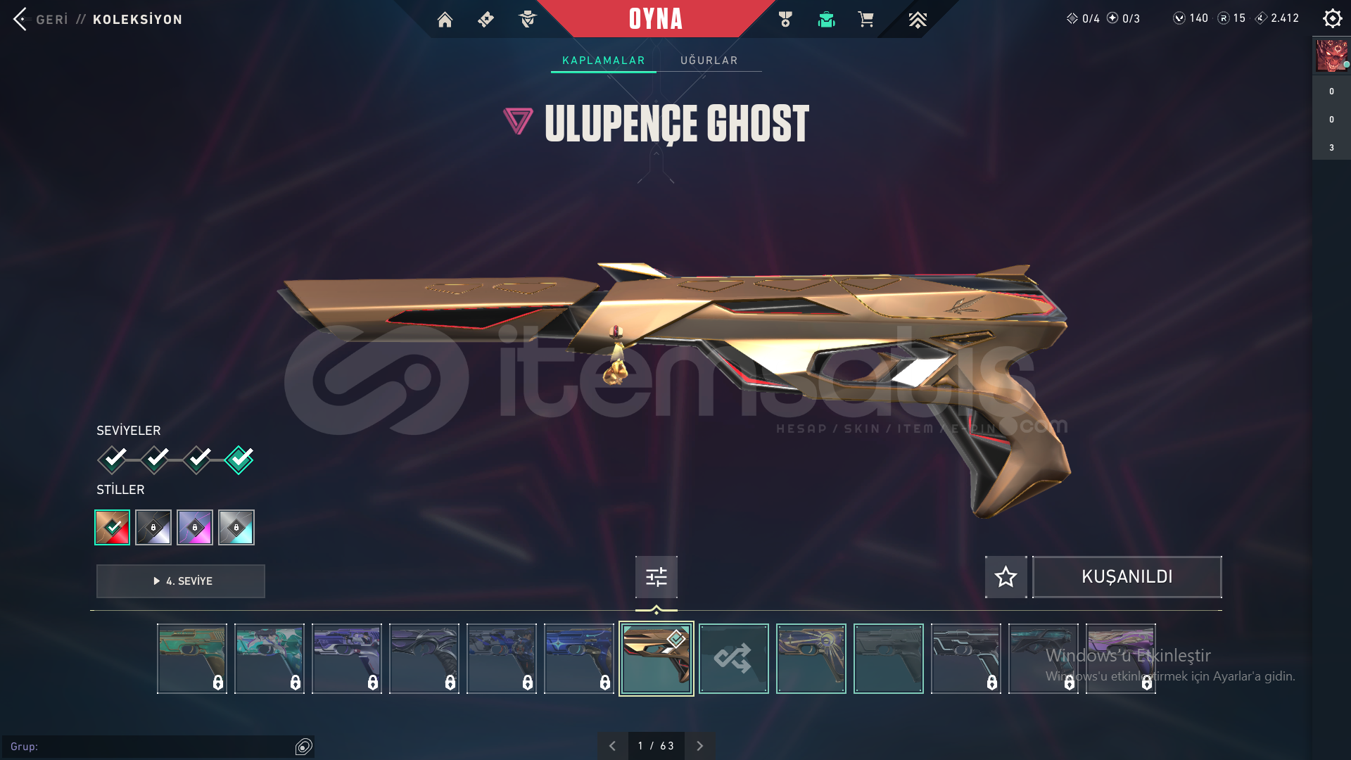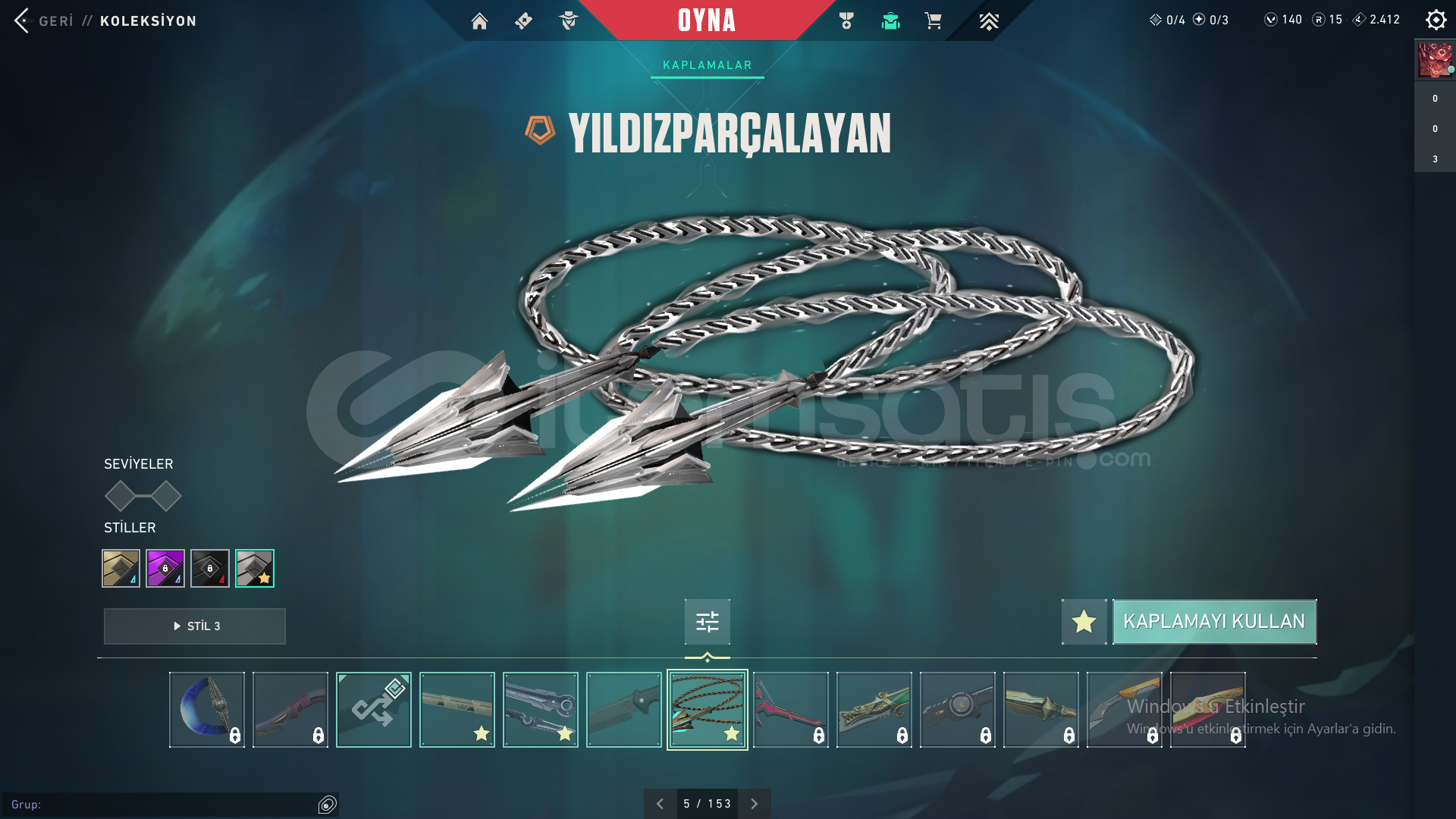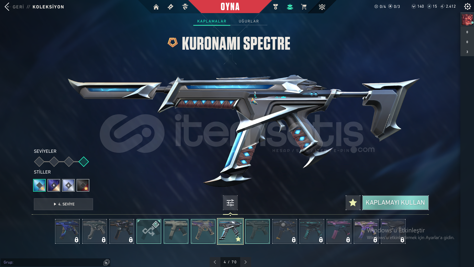 Yıldız Belası Seti, Seri Tetik Sherif, Evori Odin, Kuronami Specter, Ulu pençe Ghost37 Skin, her silah için skın var,Unranked