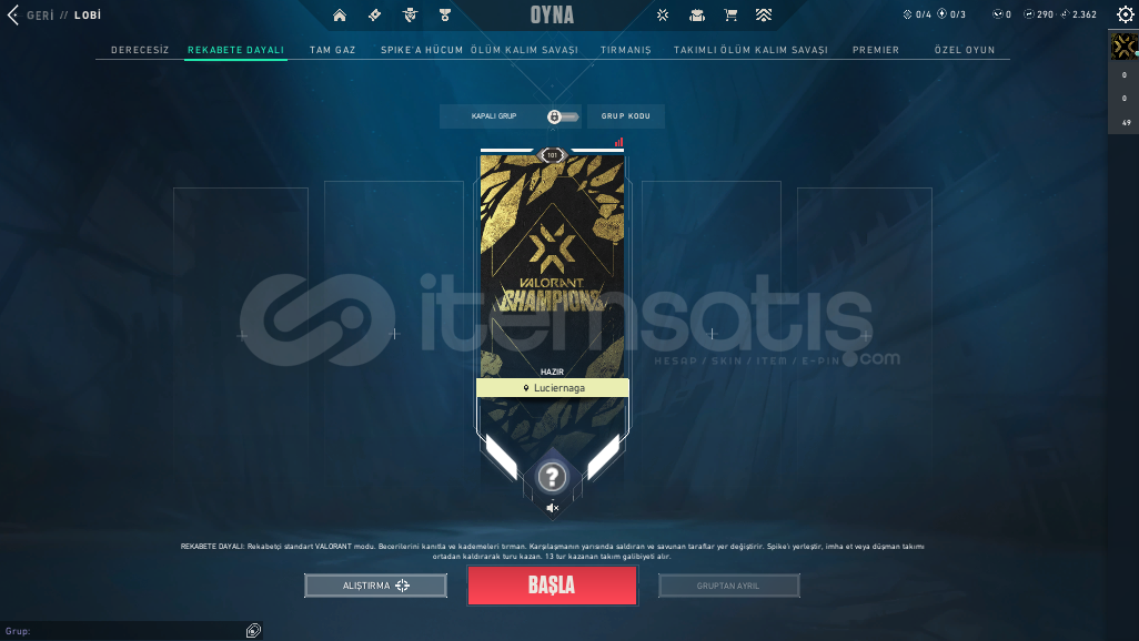 Bu hesaplar derecesiz olmalıdır, hesaba ilk giriş yaptığınızda mutlaka derecesini kontrol ediniz. Eğer dereceli bir hesap satıldıysa mutlaka siparişi iptal etmelisiniz.