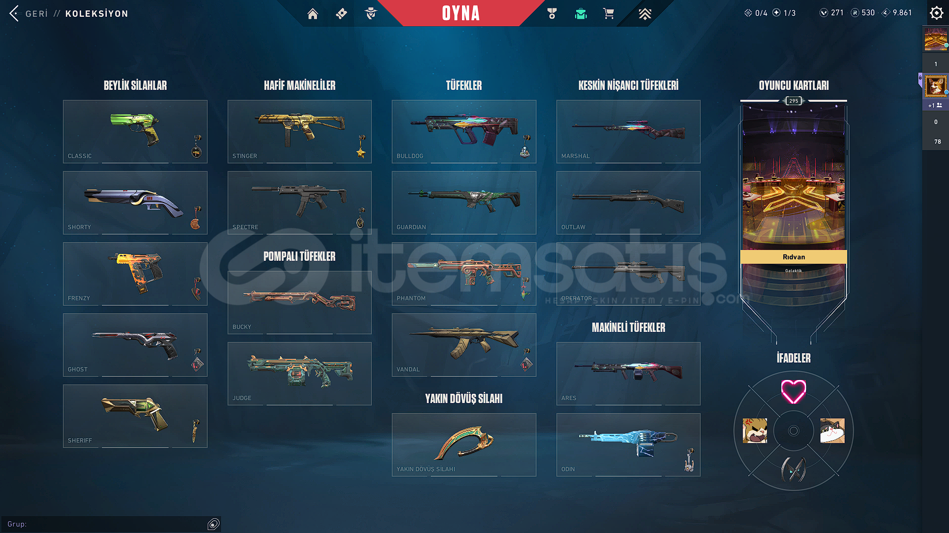 SATILIK VALORANT HESABI — İHTİYAÇTAN ACİLHesap Özellikleri:Level: 295+ (oyun içi profil seviyesi)Öne çıkan skinler: Yağmacı (Reaver) Vandal, Zamanın Ötesi (Chronovoid) / Yıldız Belası Vandal ve çeşitli Ghost kaplamaları.Flash Odin ve nadir makineli tüfek kaplamaları mevcut.Koleksiyonda Phantom, Vandal, Operator, Bulldog, Sheriff vb. popüler silah kaplamaları bulunuyor....