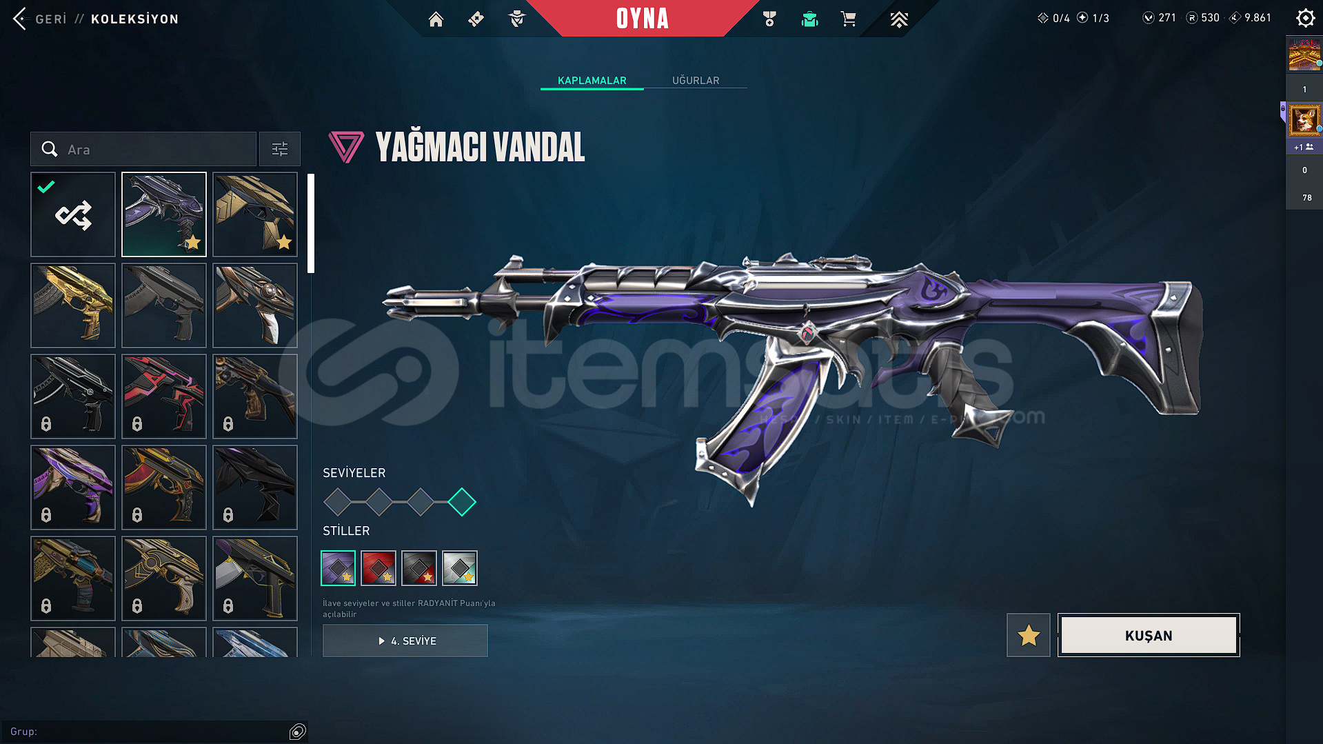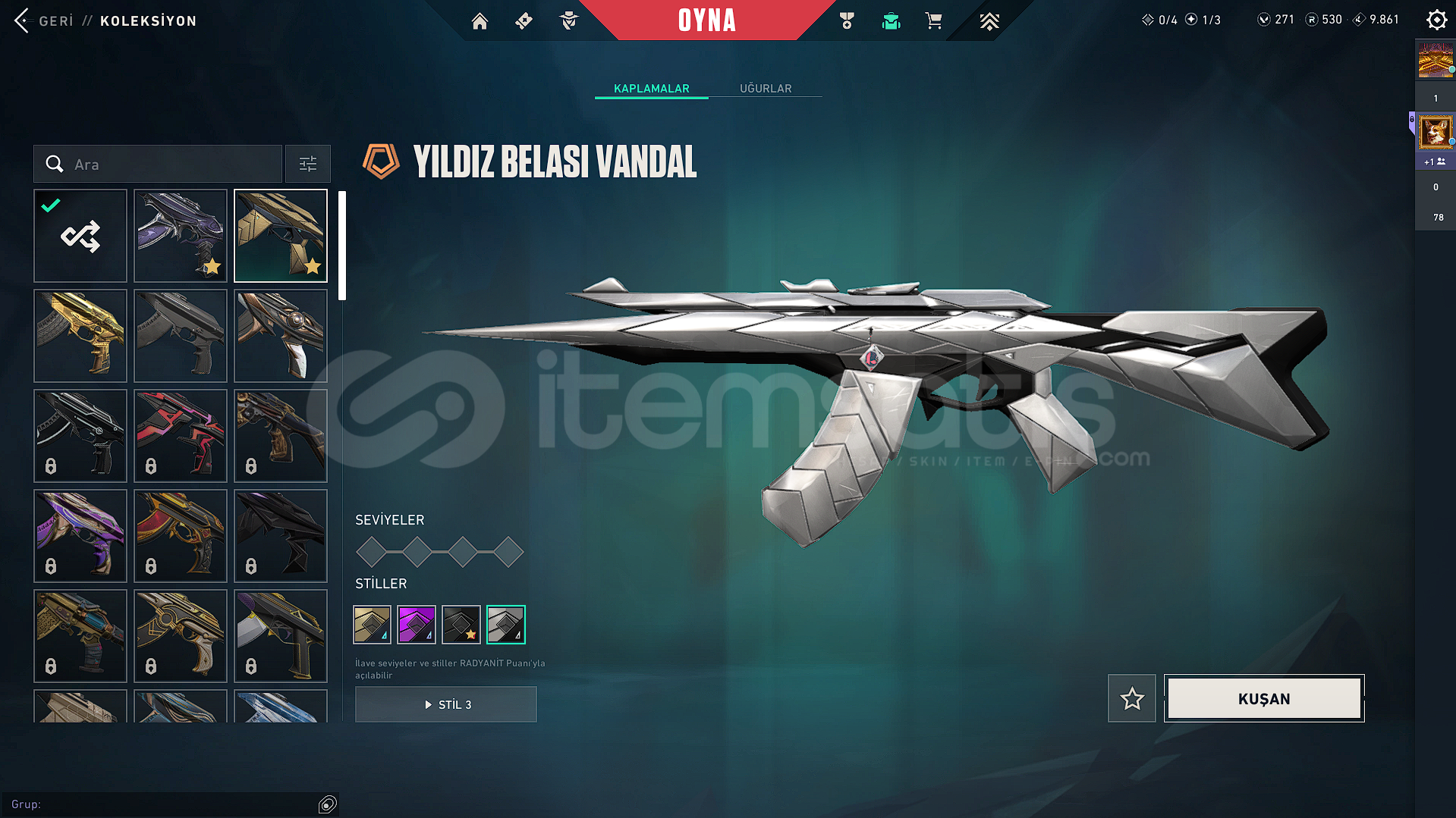 • Koleksiyonda Phantom, Vandal, Operator, Bulldog, Sheriff vb. popüler silah kaplamaları bulunuyor.