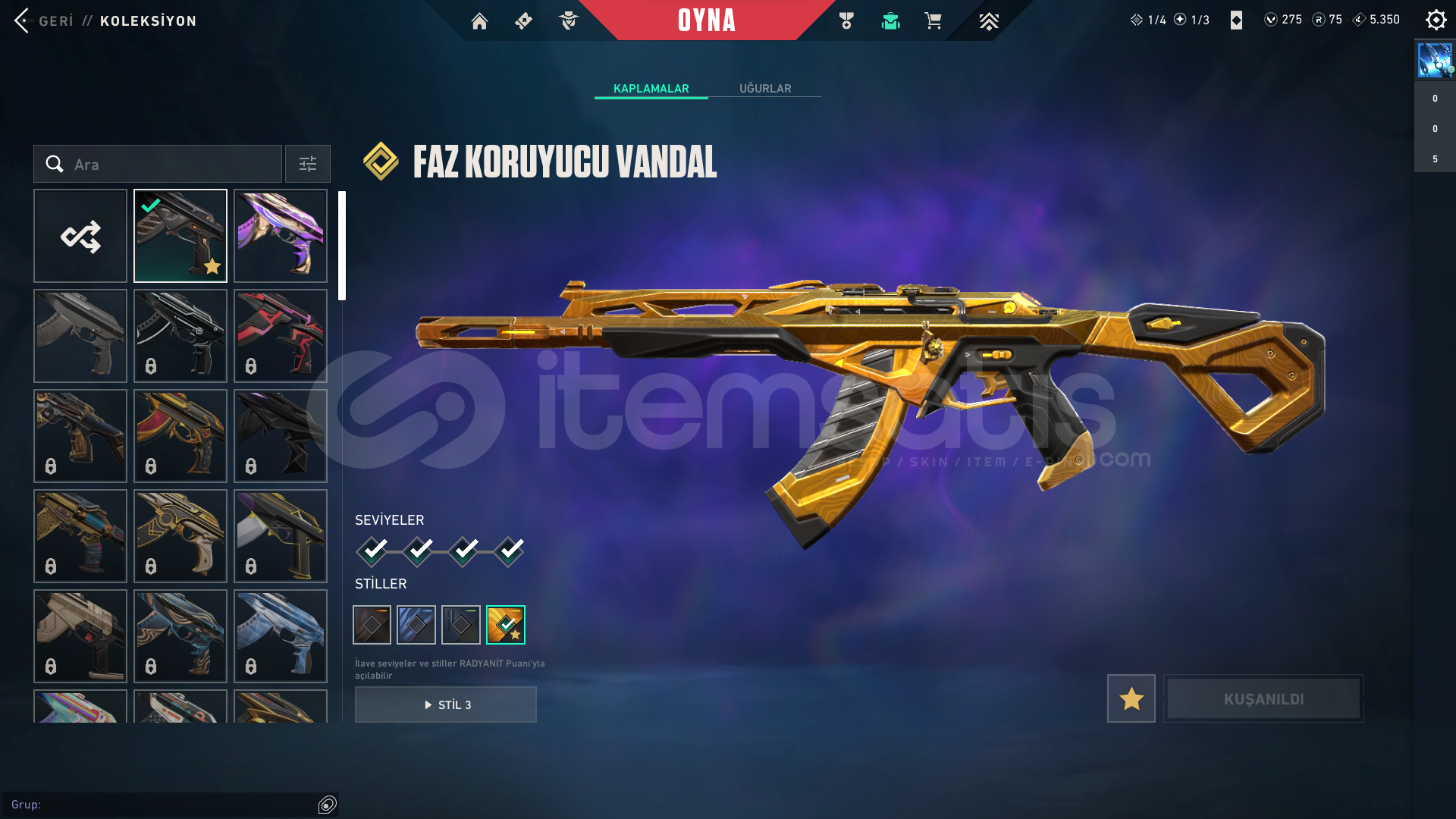 Hesabın Rankı PlatVandalFaz KoruyucuPhantomÖzel HarekatYıldız BelasıVe BP Skinleri