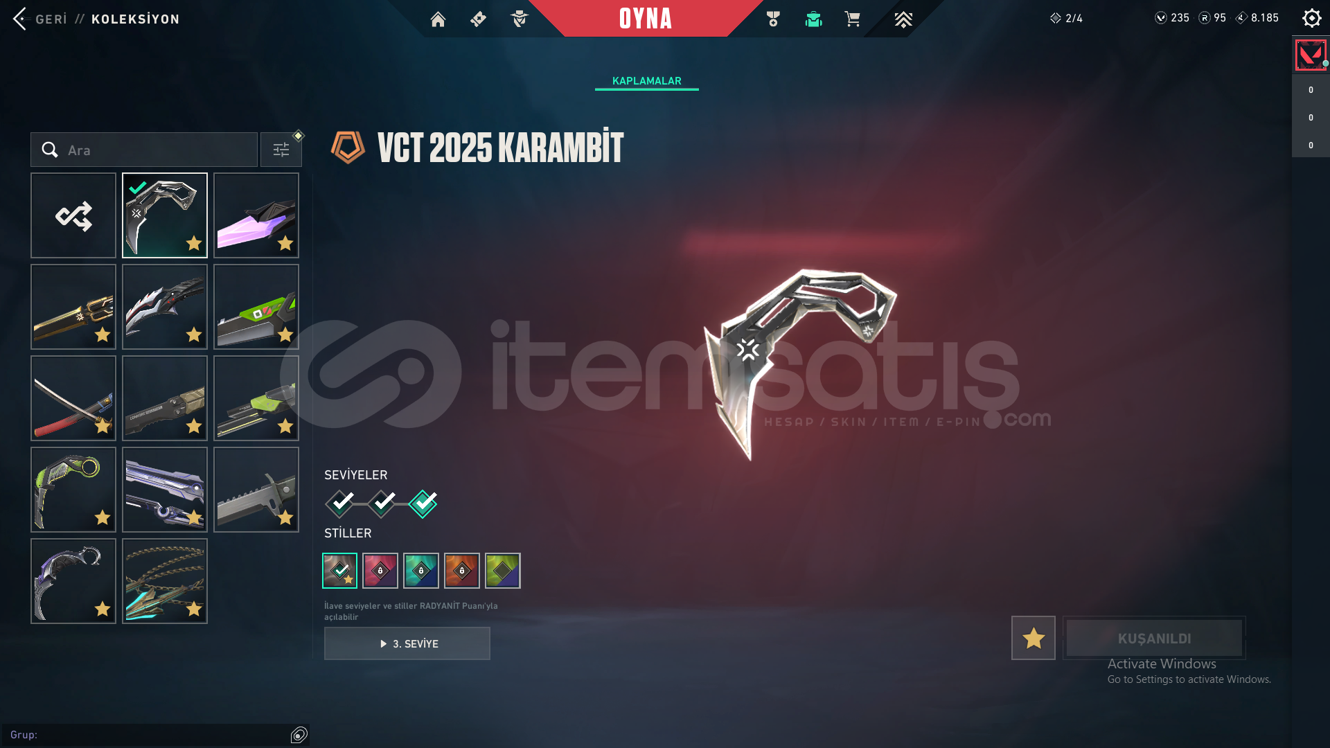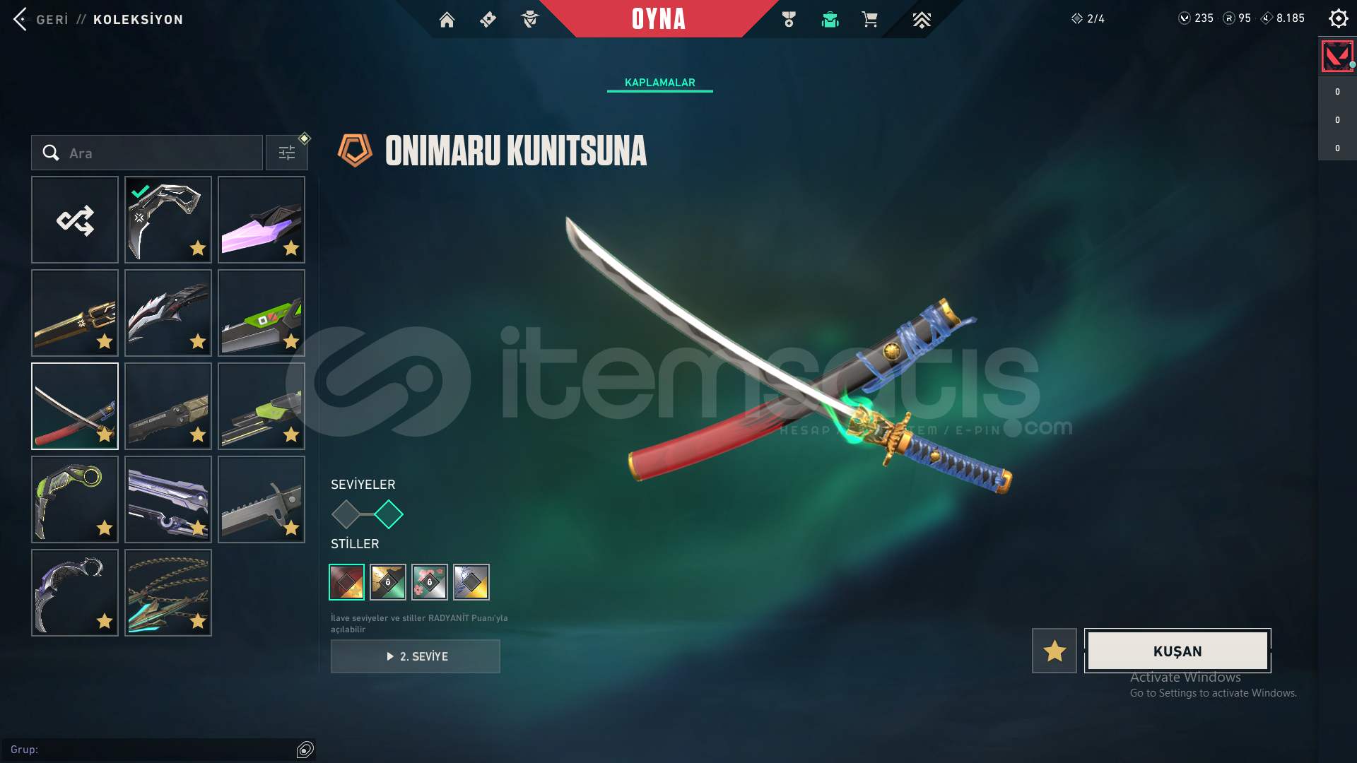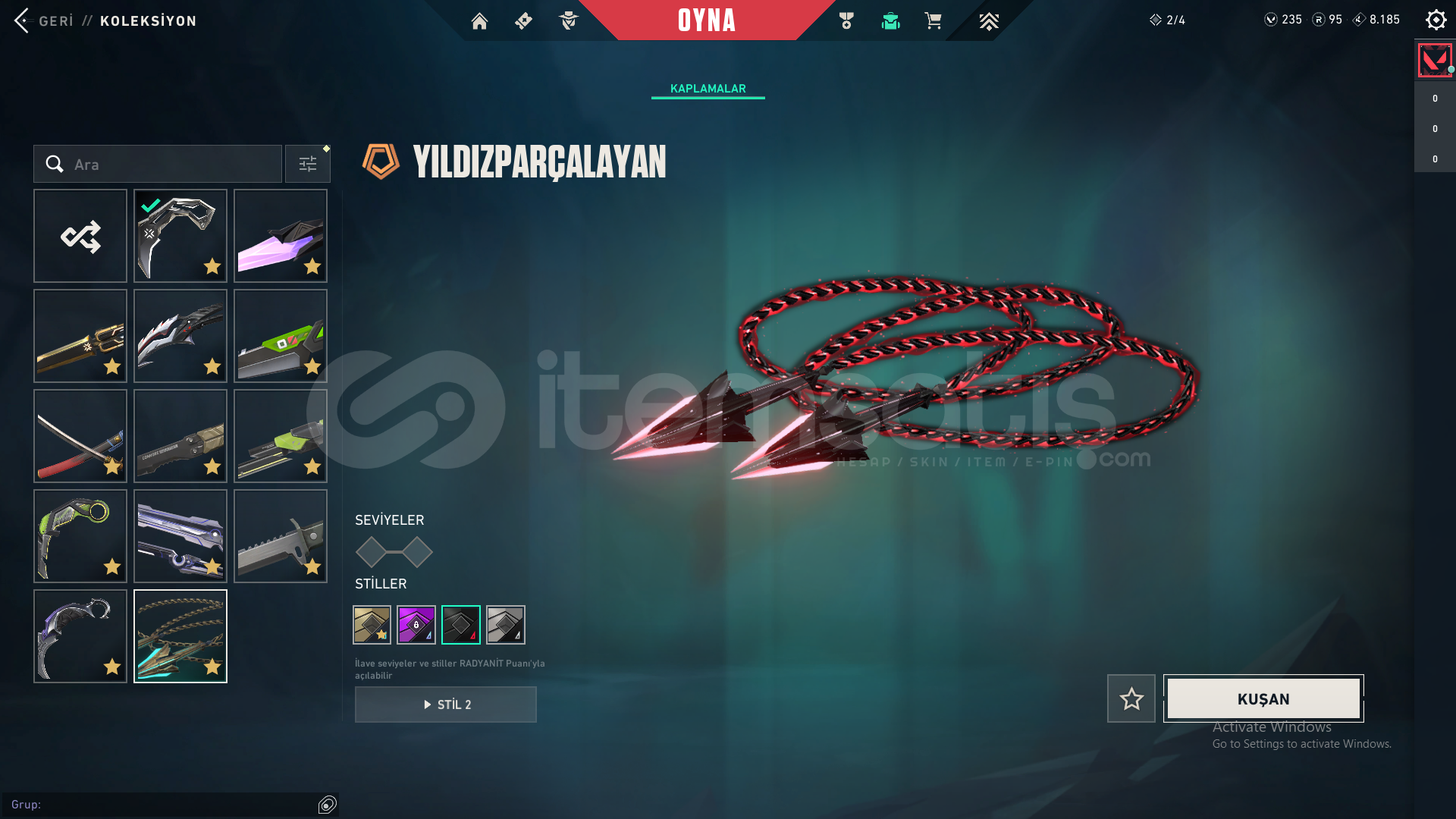 -Kuronami Vandal-Anomali Vandal-Asil Vandal-Champions 2025 Vandal-Delipop Vandal-Ejder Ateşi Vandal-Felaketin Kalbi Vandal-Işık Muhafızları Vandal-Kaosun Başlangıçı Vandal-Yağmacı Vandal-VCT 2025 Karambit-Yıldızparçalayan-Anomali Kelebek Bıçak-Champions 2025 Kelebek Bıçak-ONIMARU KUNITSUNA-Özel Harekat Kelebek-RGX 11Z Pro Bıçak-RGX 11Z Pro Karambit-Uzaylı Avcısı B...