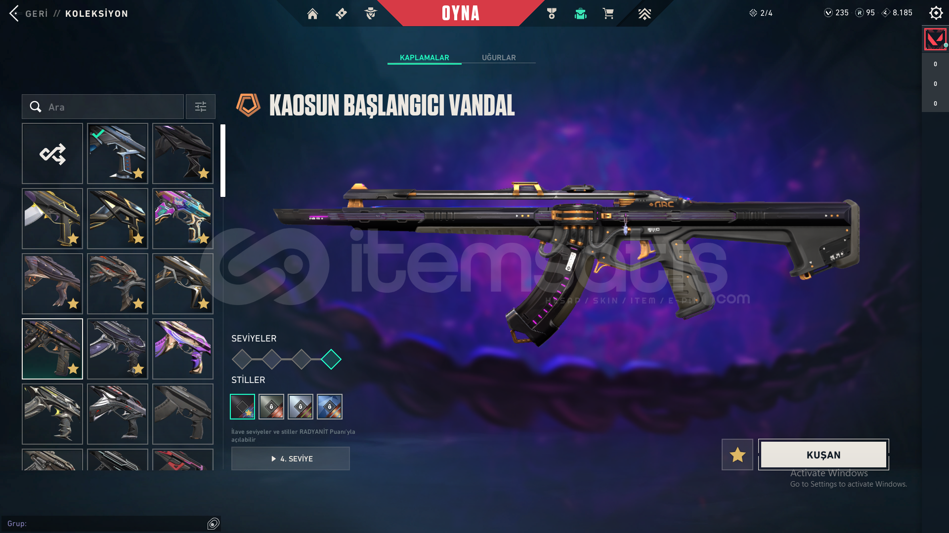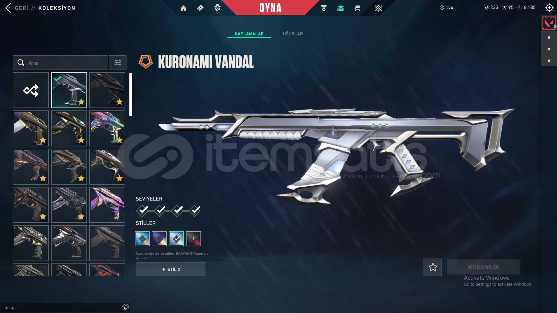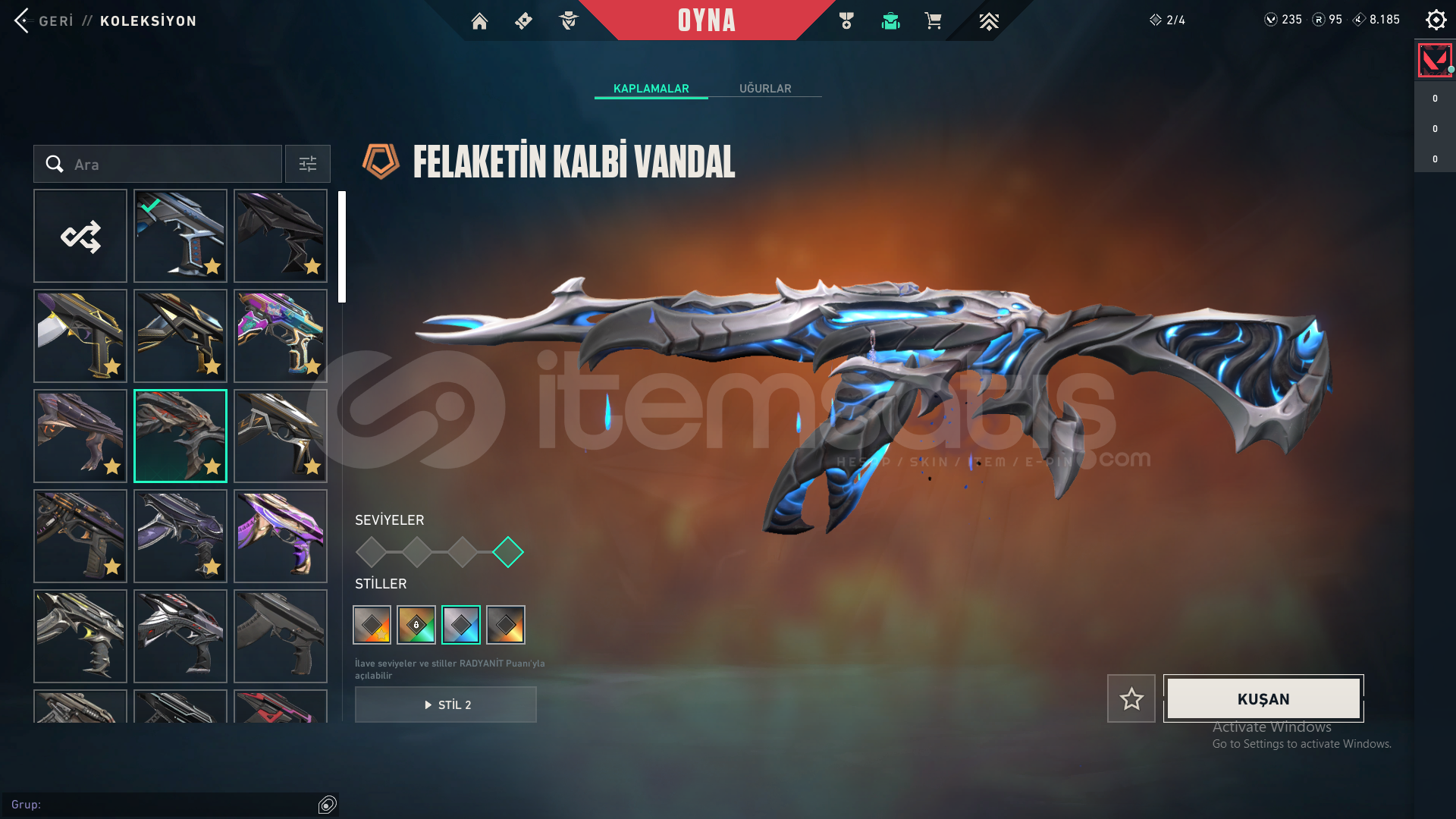 -Kuronami Vandal-Anomali Vandal-Asil Vandal-Champions 2025 Vandal-Delipop Vandal-Ejder Ateşi Vandal-Felaketin Kalbi Vandal-Işık Muhafızları Vandal-Kaosun Başlangıçı Vandal-Yağmacı Vandal-VCT 2025 Karambit-Yıldızparçalayan-Anomali Kelebek Bıçak-Champions 2025 Kelebek Bıçak-ONIMARU KUNITSUNA-Özel Harekat Kelebek-RGX 11Z Pro Bıçak-RGX 11Z Pro Karambit-Uzaylı Avcısı B...