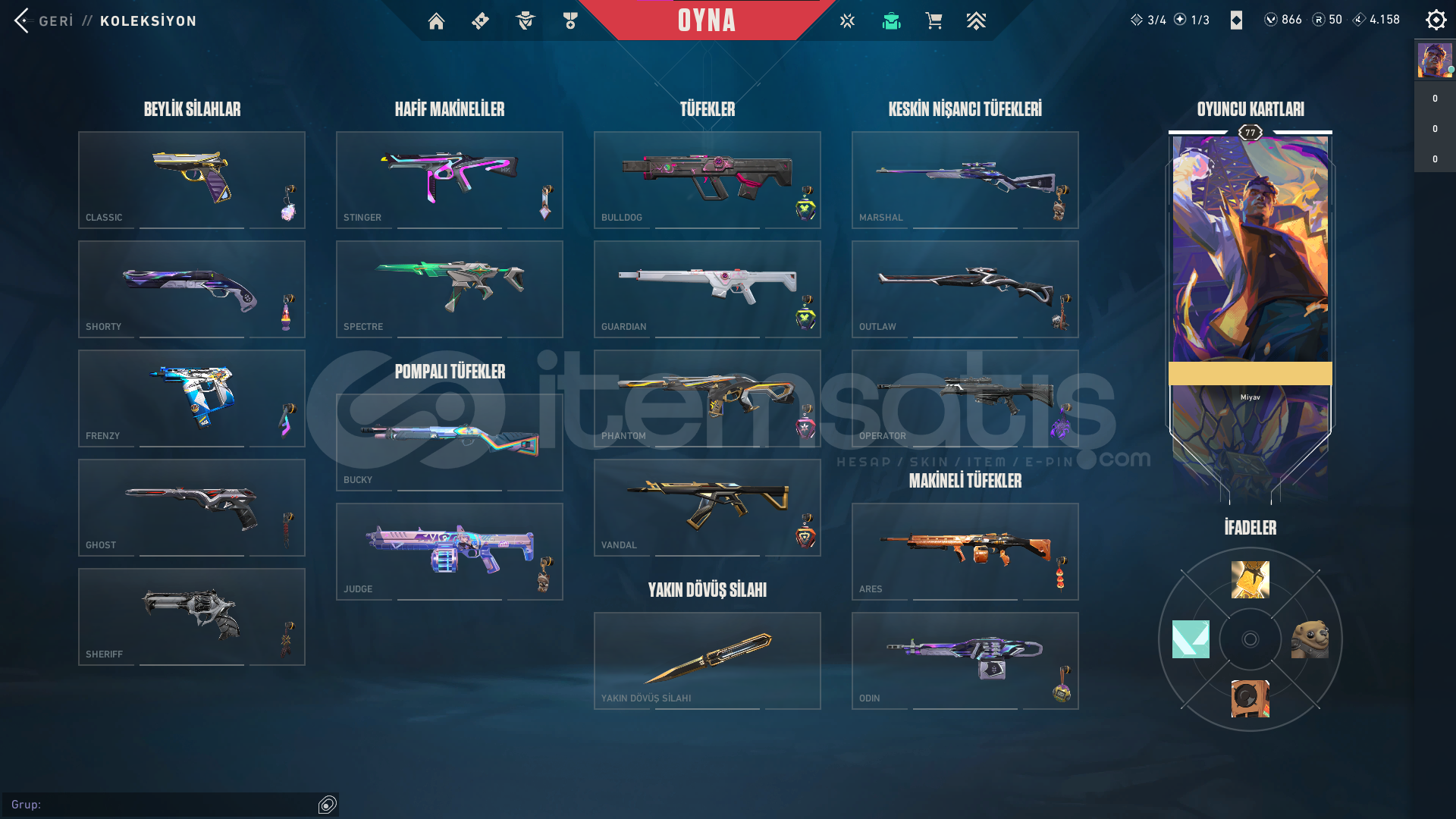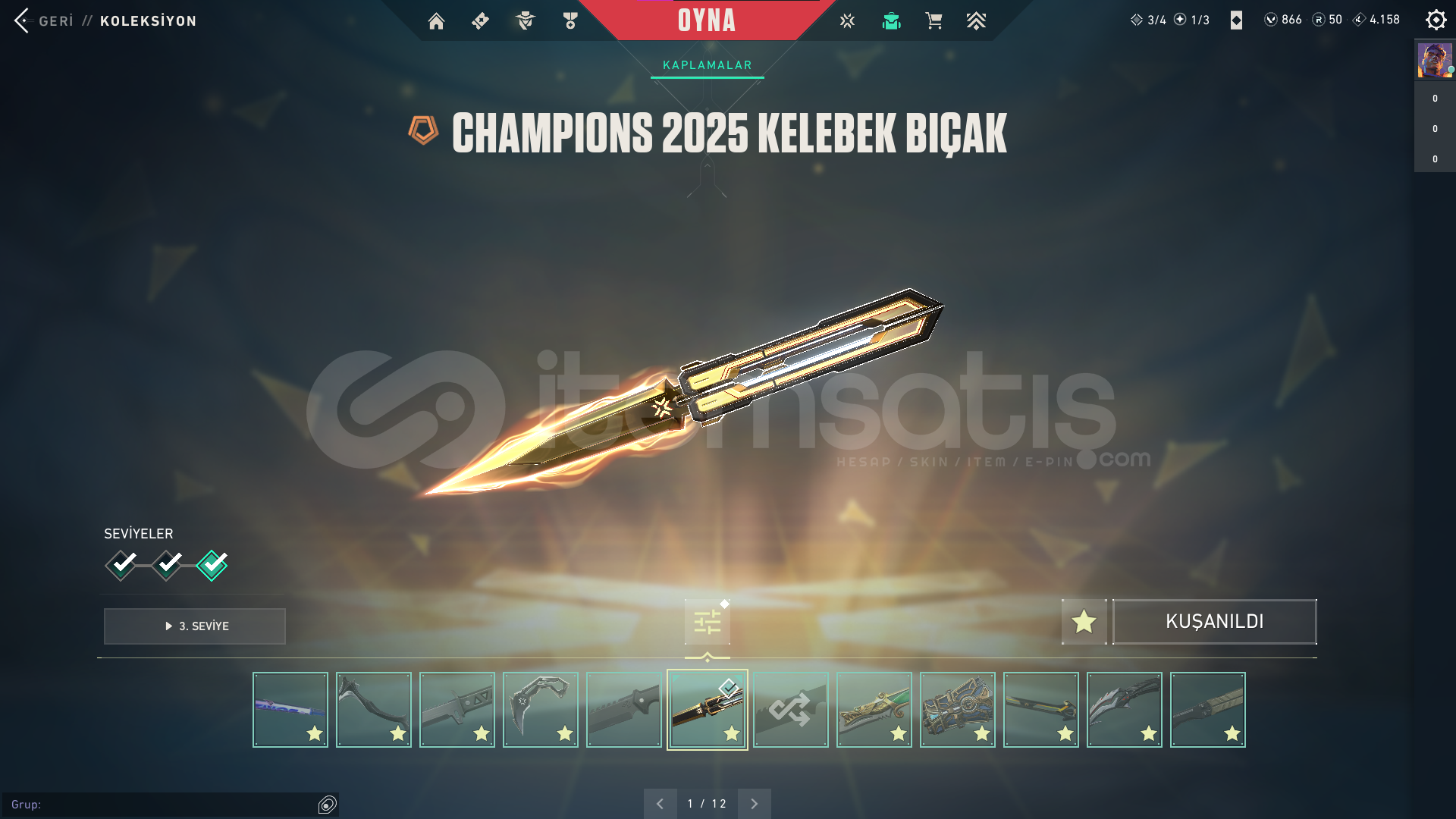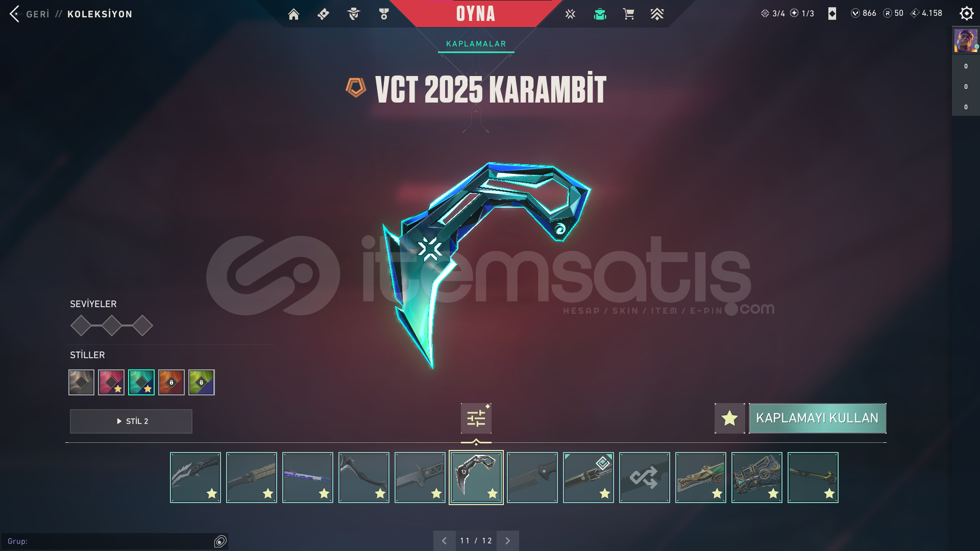 ⭐ Hesaptan Asil Classic , Yağmacı Sheriff , Spectrum Bulldog , Spectrum Guardian , Champions 2024 Phantom , Özel Harekat Phantom , BlastX Phantom , Champions 2025 Vandal , Arcane Vandal , Kaosun Başlangıcı Vandal , Gaia'nın İntikamı Vandal , Yağmacı Vandal , Champions 2025 Kelebek Bıçak , Arcane Eldivenleri , 5 Years// Beta Remastered Bıçak , Champion 2024 Kılıcı , Ecelin Isırığı Bıçak , Özel Harekat Kelebek , Ruh Azabı Tırpan , Popstar Işık Çubuğu , VCT 2025 Karambit , Uzaylı Avcısı Bıçağı ve Yağmacı Operator gibi skinler öne çıkıyor.