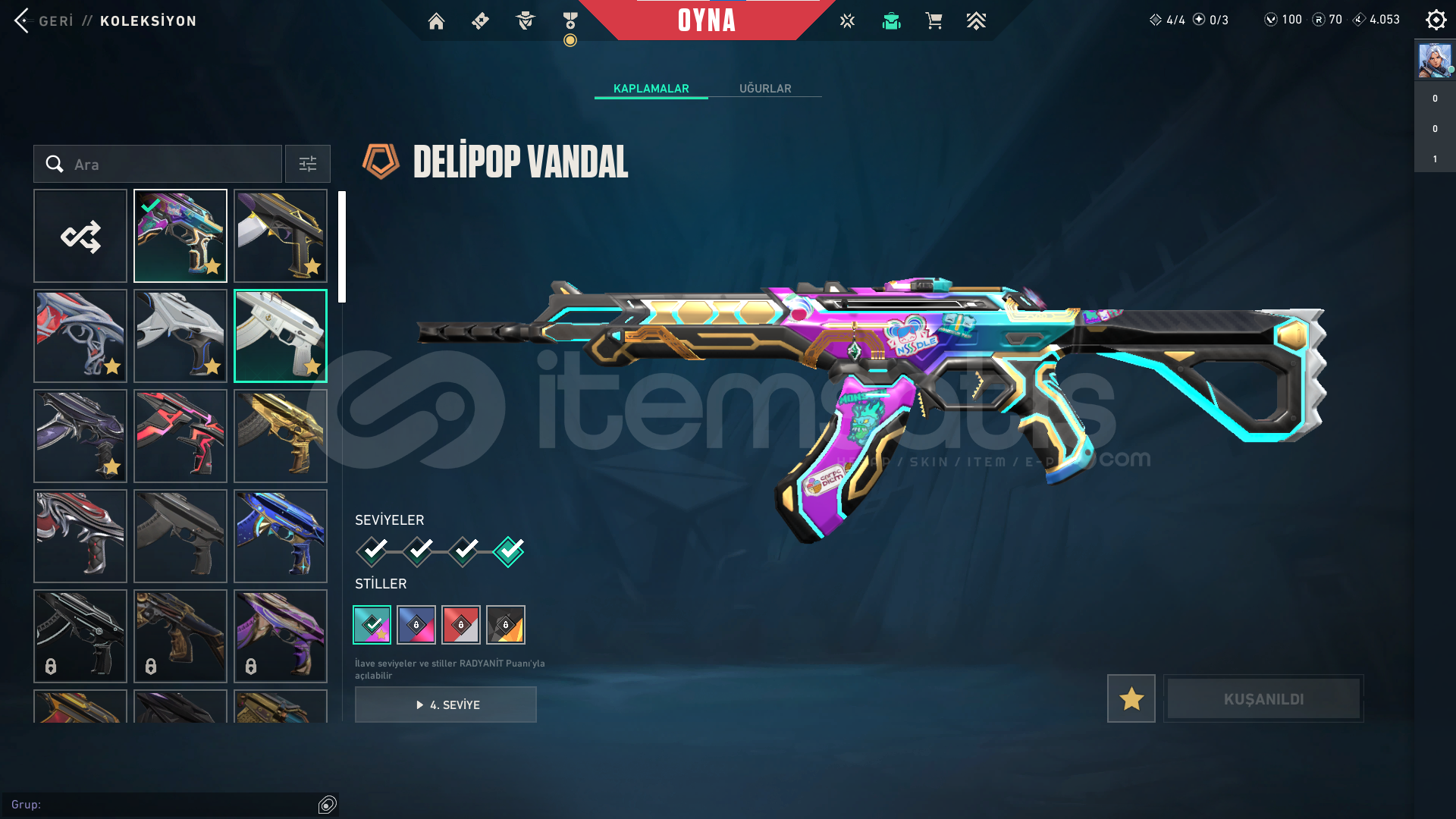 Hesap ı dizmeye kalksan ilan fiyatının 5 6 katını ödeyeceksinhesap ın garantisi vardırhesap çok sağlamşuanki sezon plat 211 adet vandal skini var10 tane bıçak skini var7 adet phantom varclassic asilghost gaiasheriff yağmacıspectre radyant krizijudge zamanın ötesiguardian oniares anomalioperatör kökenodin BlastxPhantom asilPhantom rgxPhantom spectrumVandal AsilVandal NeptünVandal Yağmac...