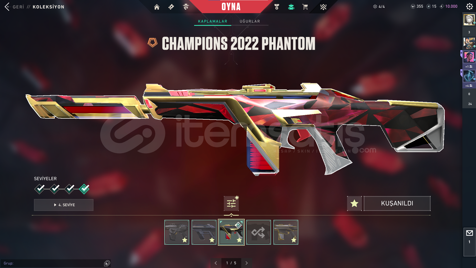 VANDAL = CHAMPIONS 2023 , CHAMPIONS 2025 , EXO , ZAMANIN OTESİ , ASİL , YAGMACI , SURAT CANAVARI , NEPTUN , SİHİRPUNK , DOLMIRIN İNTİKAMI , KAOS , EJDER ATEŞİ , ONİ , SOĞUK ÇELİK + BP SKİNLERİ