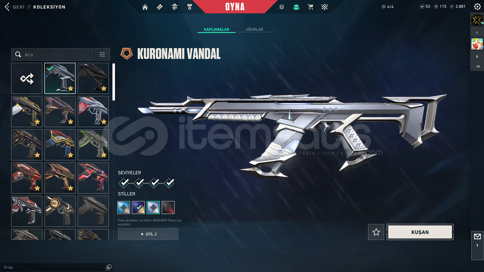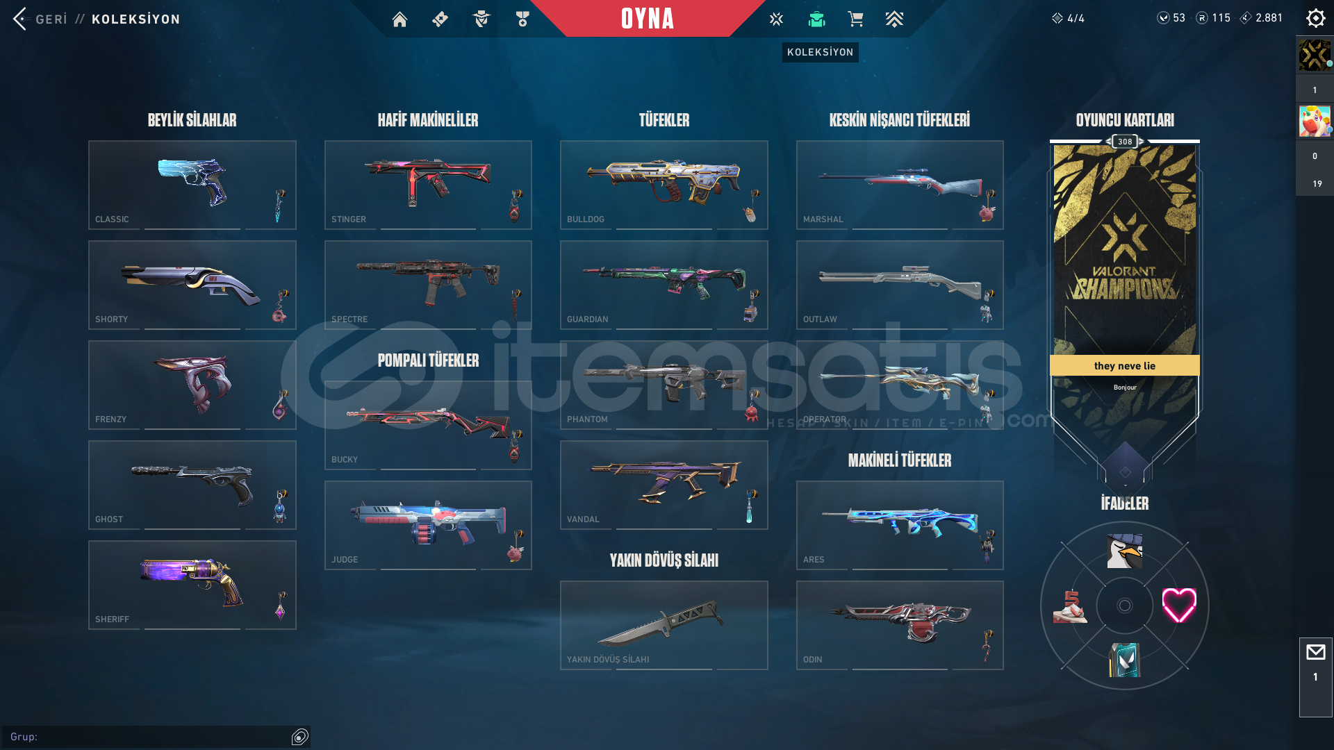 308 LEVELRANK BRONZ100+ SKİNVANDAL:KAOS,KURONAMİ,ONİ,EJDER,RGZ,SÜRAT CANAVARİ,ULU PENÇE,ANOMALİ,ASİL,GAİA,KÖKEN+3PHANTOM:PROTOKOL,CHAMPİONS 2024 +4BIÇAK:UZAYLI AVCISI,ANOMALİ KELEBEK,ASİL 2.0 KARAMBİT+4SHERİFF: SERİ TETİK,AEMONDIR,YAĞMACI+5GHOST:ULUPENÇE+9SPECTRE: ÖZEL HAREKAT+5BULLDOG:ONİ+5OPERATOR:SIRÇİÇEĞİ+4CLASSIC:+5SHORTY+5FRENZY:+3BUCKY+4OUTLAW+3A...