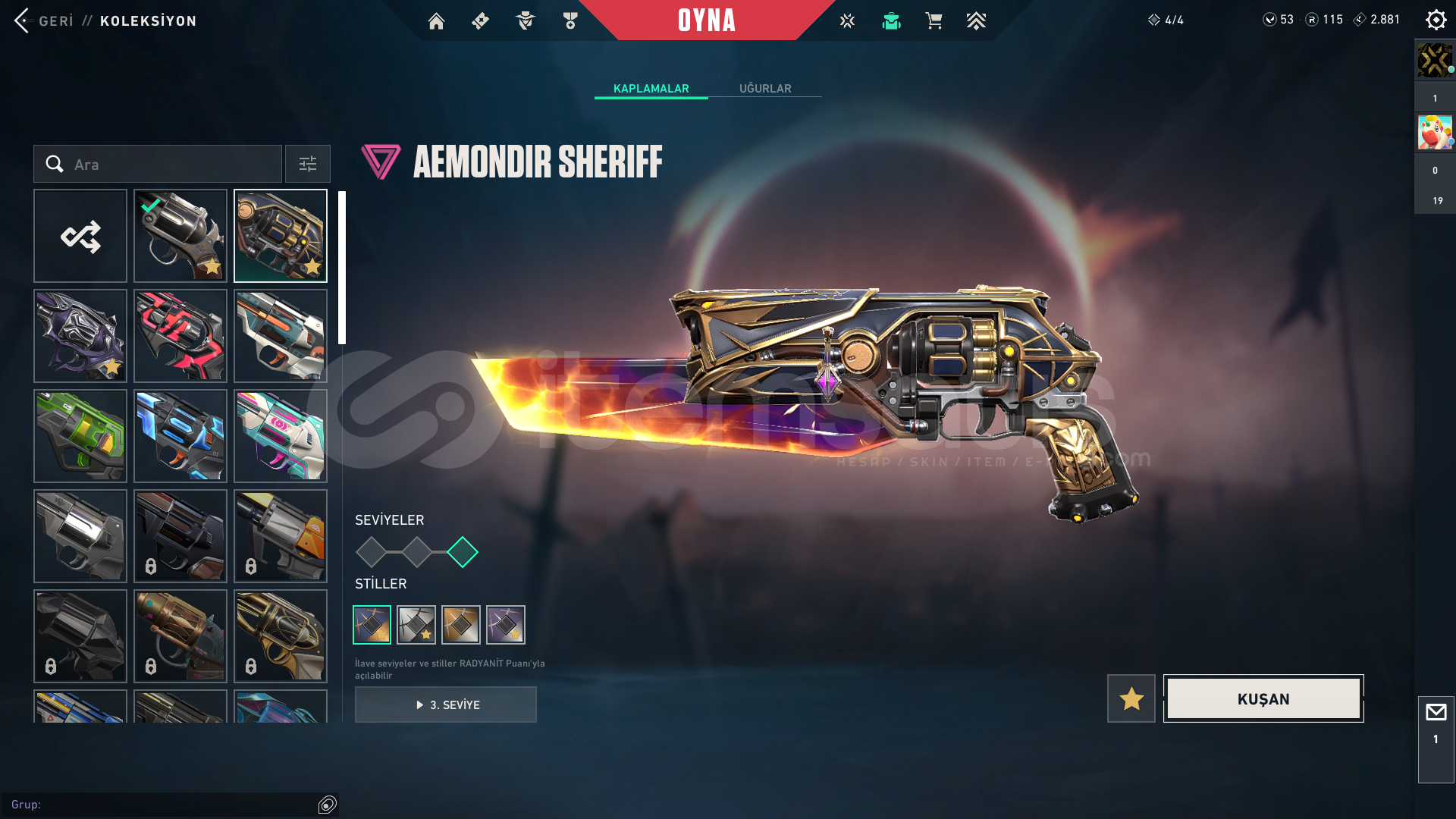 HER SİLAHTA EN AZ 3 SKİN VAR BÜTÜN AJANLAR AÇIK BÜTÜN SİLAHLARIN BÜTÜN SEVİYELERİ AÇIKTIR VE NEREDEYSE HEPSİNİN STİLLERİNİN BİLE HEPSİ AÇIKTIR DETAYLI İSTEYENE ATARIM EFSANE HESAP KAÇIRMA DERİM