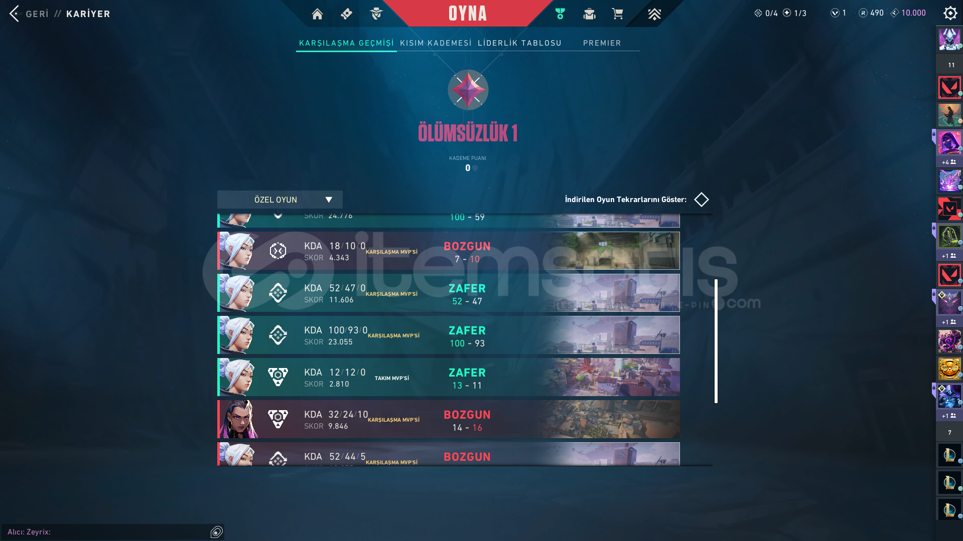 10000 TL DEĞERİNDE İMMORTAL HESAP