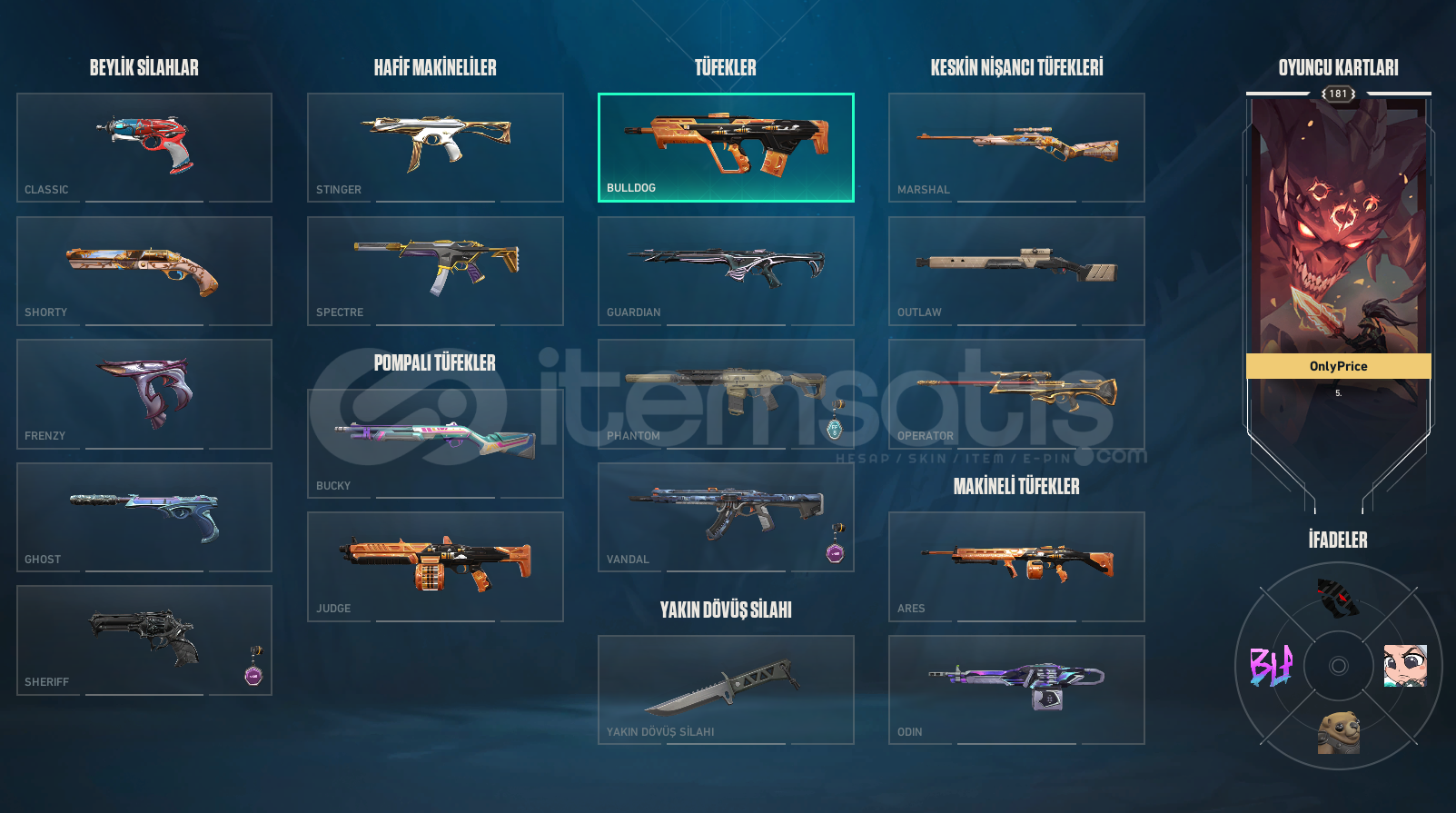 Fotolarda da gözüktüğü gibi 10000tl yatırılmış Valorant hesabı güvenilir hiç bir şekilde geri çekilme olmaz mainlemelik alabilirsiniz.İçindekiler:URANYUM CLASSİCCESUR YÜREK GHOSTYAĞMACI SHERİFEXO SHERİFSİHİRPUNK SHERİFFATİH STİNGERFATİH GUARDİANÖZEL HAREKAT PHANTOMASİL SPECTRECESUR YÜREK OPERATORKAOSUN BAŞLANGICI VANDALCYRAX VANDALF...