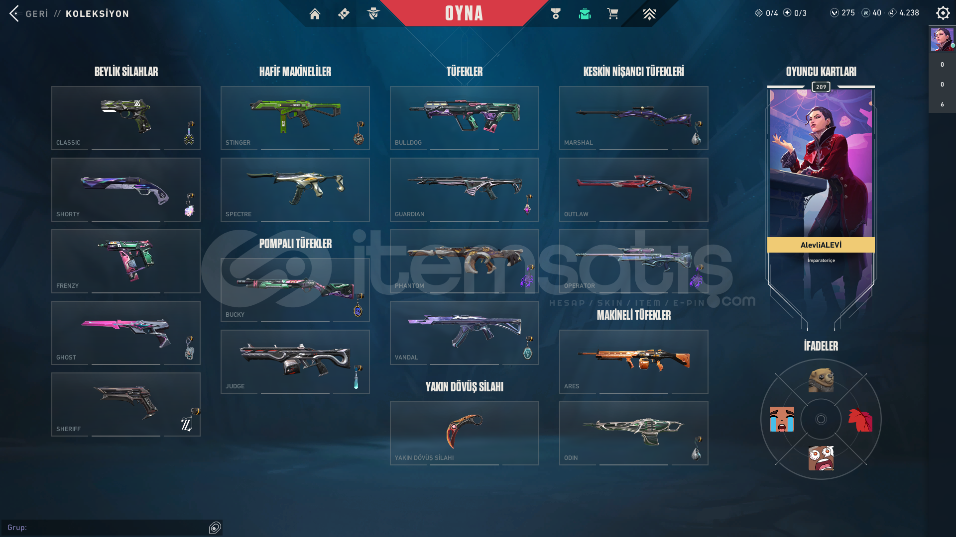 iÇİNDEKİ SKİNLER VANDALasil vandalyağmacı vandalejderin buyruğu vandalışık muhafızı vandalneptün vandal PHANTOMyağmacı phantomonı phantomzıfırı phantom BICAKıyon karambıt + battle pass OPcesur yürek op SHERİFkuronamı sherıf GUARDİANfatih guardian CLASICvct x zeta paketı ODINfatih odın========gmail ile verilecektir. pazarlık vardır