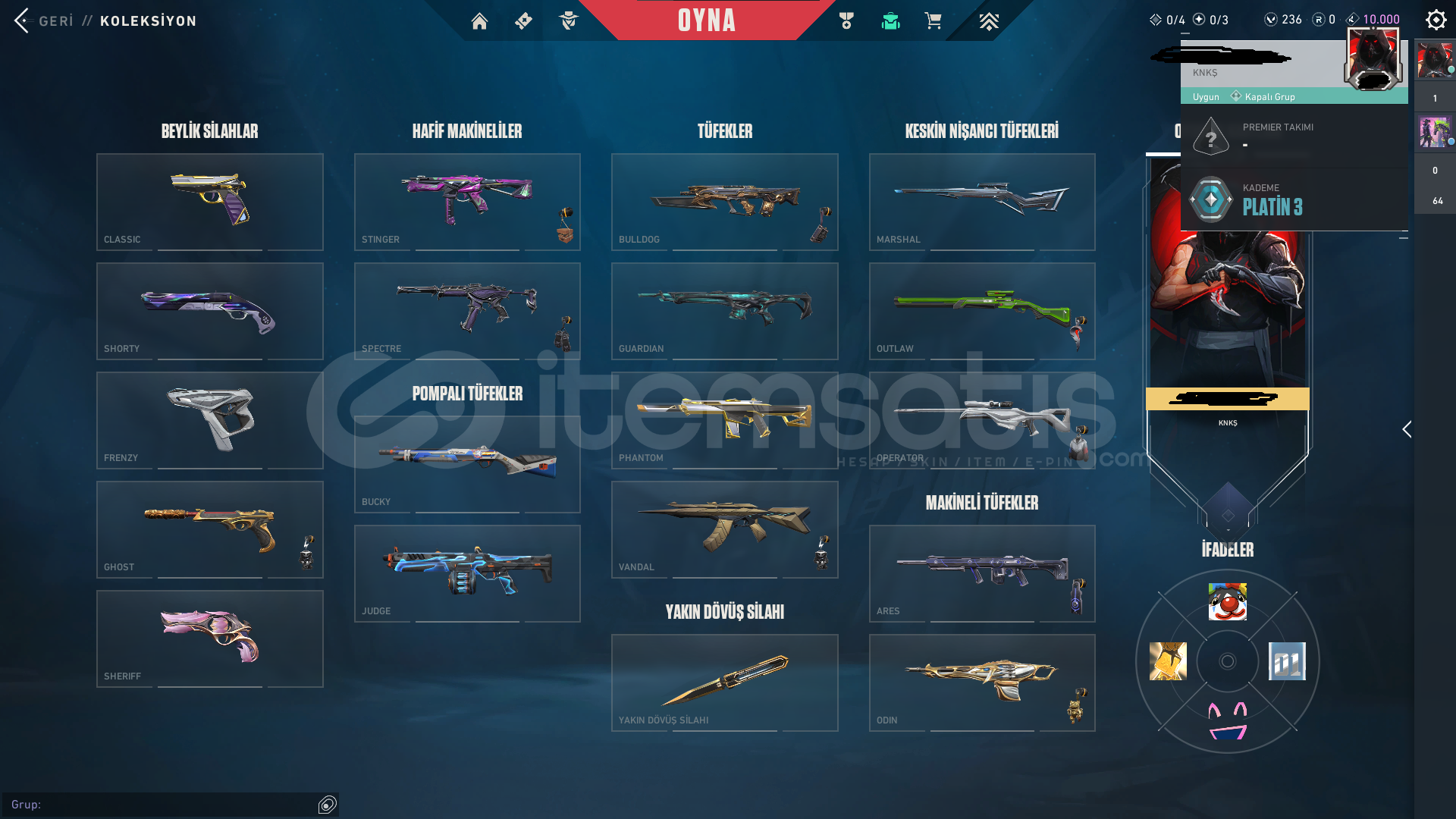 Total 167450 VP HARCANDIPeak Rank: DIAMOND 3Bıçak :Araxys Bio-Atomizers, SplashX Gloves, Reaver Knife, Arcane Gauntlets, Reaver Karambit, Gaia's Fury, VCT 2025 Karambit, Champions 2025 Butterfly Knife, Bubblegum Deathwish Chainsaw, Eternal Sovereign, Xenohunter KnifeVandal :Gaia's Vengeance Vandal, Cryostasis Vandal, Magepunk Vandal, Valiant Hero Vandal, Prelude to Chaos Vandal, SplashX Vandal, Aemondir Vandal, Ion Vandal, Singularity Vandal, EX.O Vandal, Champions 2025 Vandal, Senti...