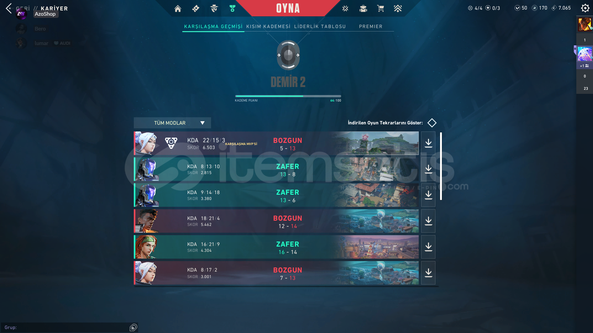 Ürün Hakkında Bilgi;İLANI SATIN ALDIĞINIZDA 7/24 OTOMATİK OLARAK TESLİM EDİLİR.RANK - DEMİR 2HESAP SEVİYESİ - 37SKİN SAYISI - 11VP SAYISI - 50+ 100.000 BAŞARILI İŞLEM İLE GÜVENLE ALIŞVERİŞ YAPABİLİRSİNİZ