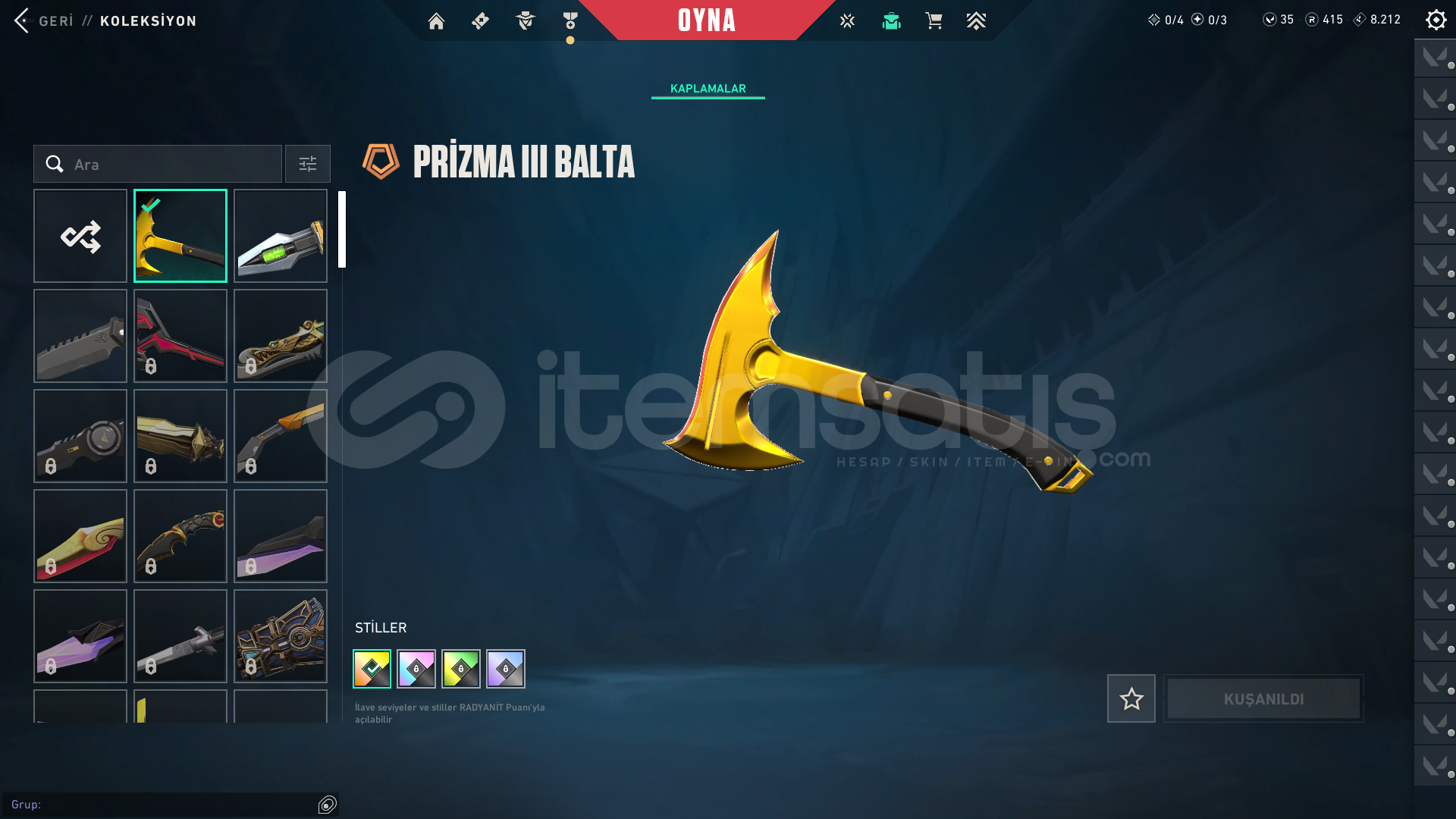 YAGMACI VANDAL PRİZMA BALTAVE DAHA FAZLA BICAK VE VANDAL SKİNLİ 100 GUVENİLİR HESAP