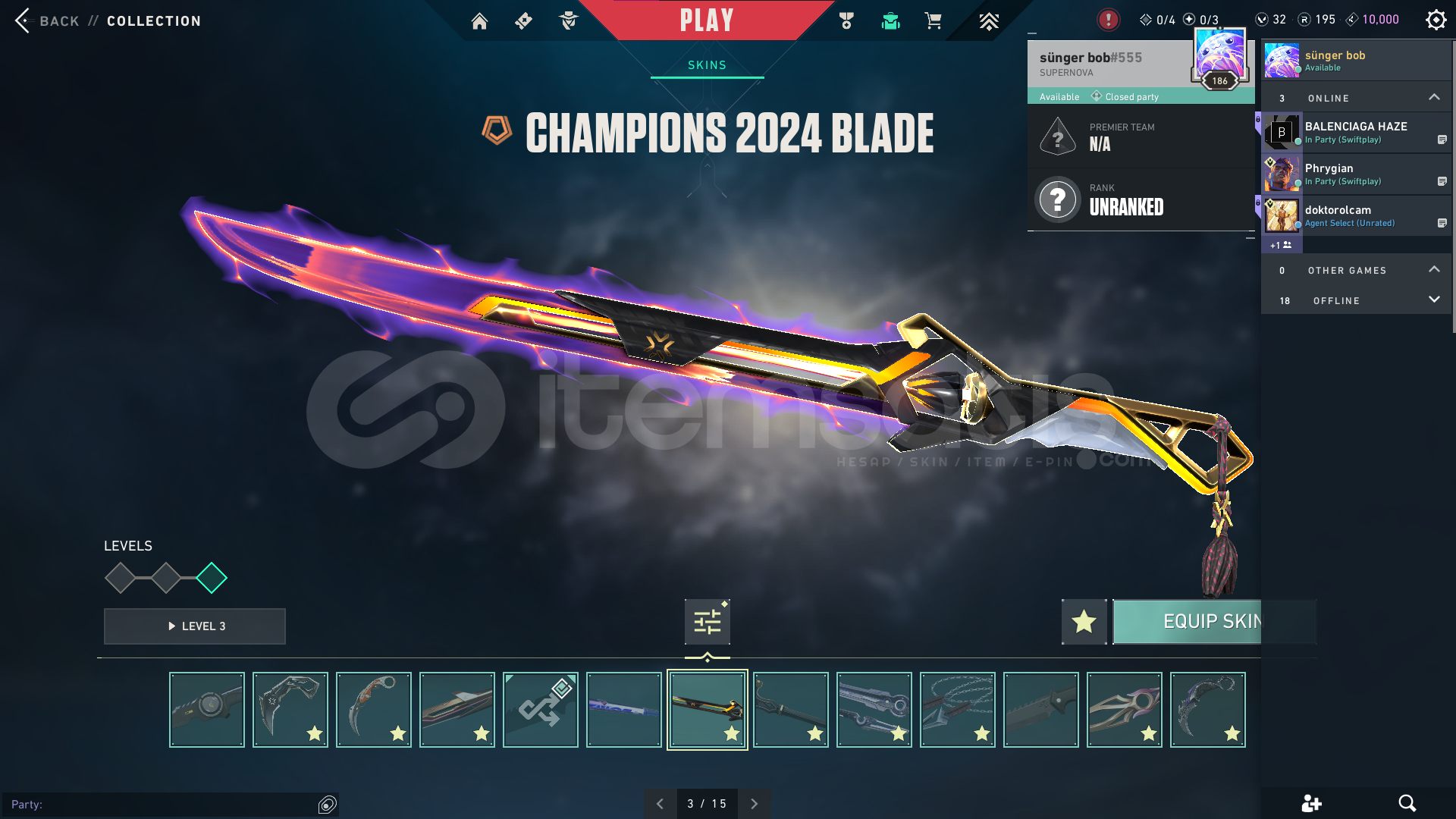 VALORANT HESABIMI SATIYORUM TOPLAMDA 12.257 TL HARCANDI. MADDİ SIKINTIDAN VE ARTIK VALO SARMADIĞI İÇİN SATIYORUM. SADECE 1 KERE DİA GÖRDÜ , VCT 2025 KARAMBIT CHAMPIONS 2024KURONOMİ SET, YAGMACI 2.0ASİL, KAOS, EVORİ, IŞIK MUHAFIZI, KÖKEN, KURONOMİ VANDALDELİPOP, CHAMPIONS2024 ,YAĞMACI PHANTOM