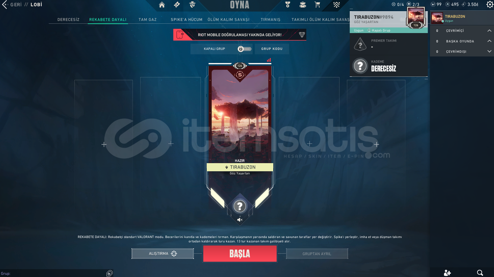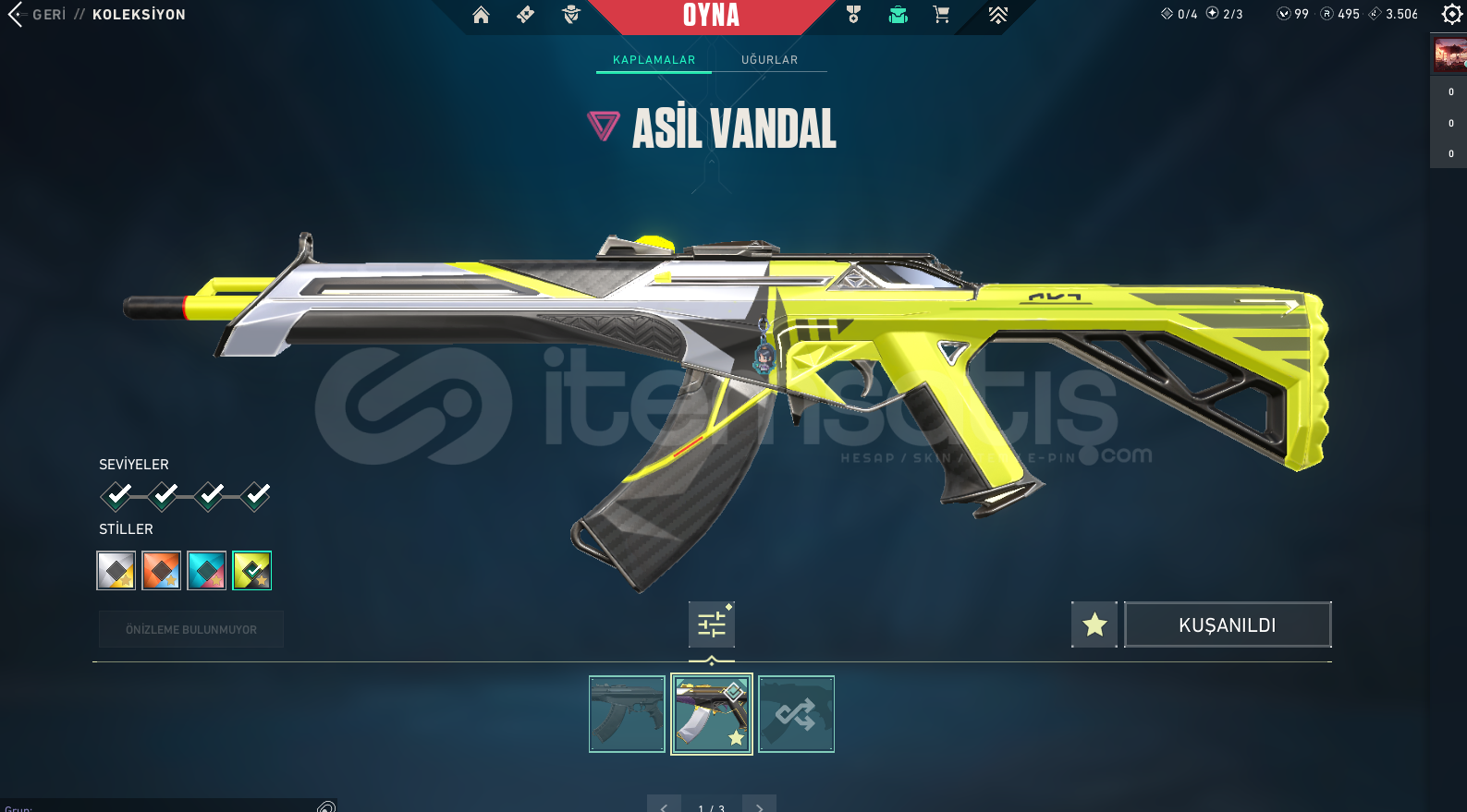 hesabın vp değeri yaklaşık 3500Vp’den daha fazladır.🌌 🔥 ULTRA ÖZEL VALORANT HESABI 🔥 🌌💎 Rank: Gümüş 1💥 Seviye: 126🎨 SKIN ENVANTERİ:⚔️ Asil Vandal🌿 Radyant Krizi Phantom📧 Mail: Değişim yapılacaktır💰 VP: 99 | 💎 Radyanit: 495