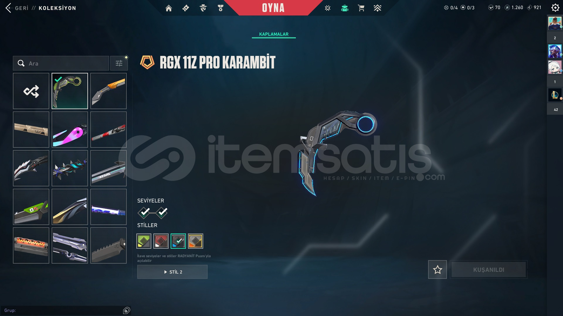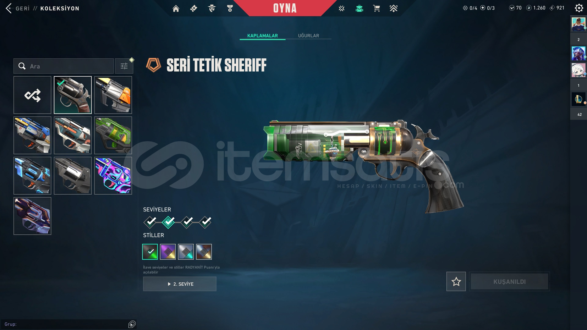 Bu skinlerim hepsi son seviye ve stilleri açık hesabı açtığımdam beri çoğu savaş biletini bitirdim hali hazırda 1260 radyaniti var mail devredeceğim bıraktığımdan dolayı satıyorum pazarlık sünnettir detaylı bilgi veya öğrenmek istediğiniz herhangi bir şey var ise lütfen iletişime geçin
