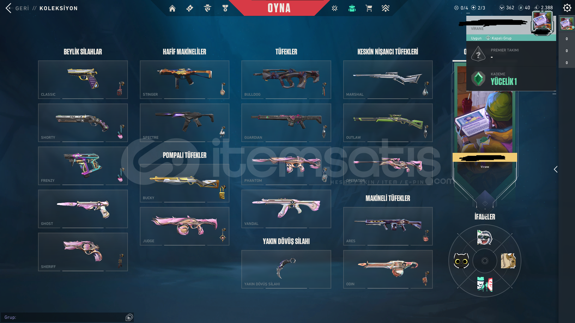 Total 175225 VP YatırıldıPeak Rank: ASCENDANT 3Bıçak : Mystbloom Kunai, Kuronami no Yaiba, Ruyi Staff, Arcane Gauntlets, Reaver Karambit, Champions 2024 Blade, Onimaru Kunitsuna, Evori's Spellcaster, Prime//2.0 Karambit, Singularity Butterfly Knife, Nocturnum Scythe, RGX 11z Pro Karambit, Xenohunter KnifeVandal : Elderflame Vandal, XERØFANG Vandal, RGX 11z Pro Vandal, Arcane Vandal, Prelude to Chaos Vandal, Reaver Vandal, Primordium Vandal, Ion Vandal, Overdrive...