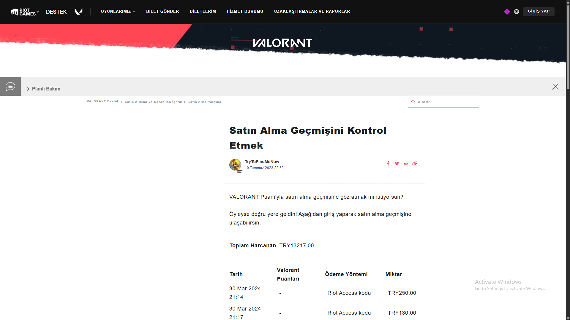 13000 TL YATIRMA GEÇMİŞLİ HESAP