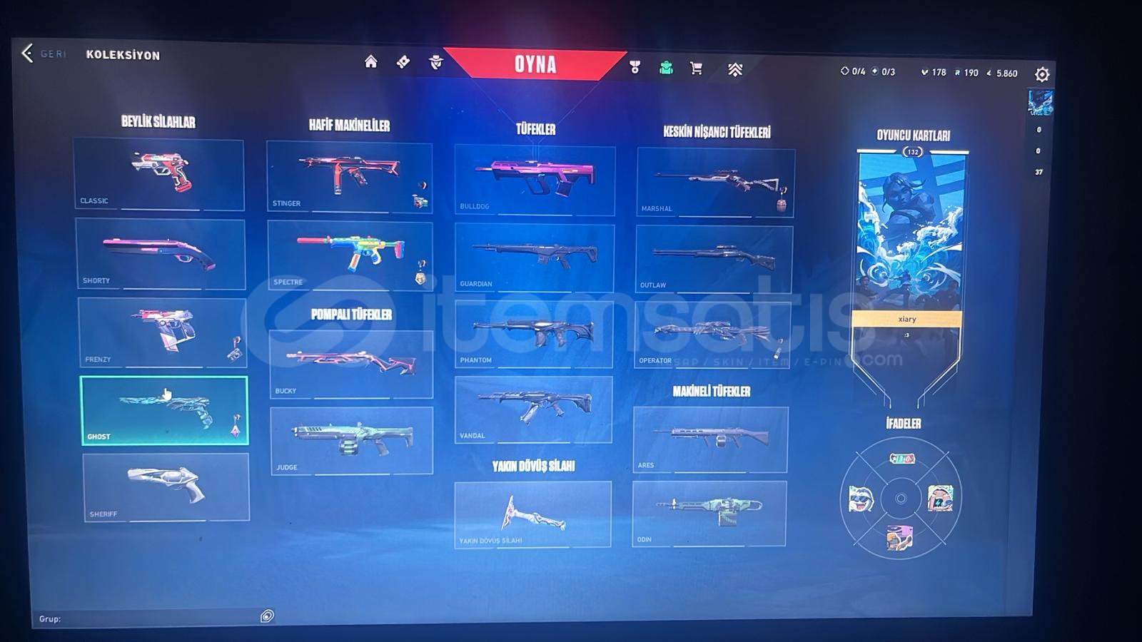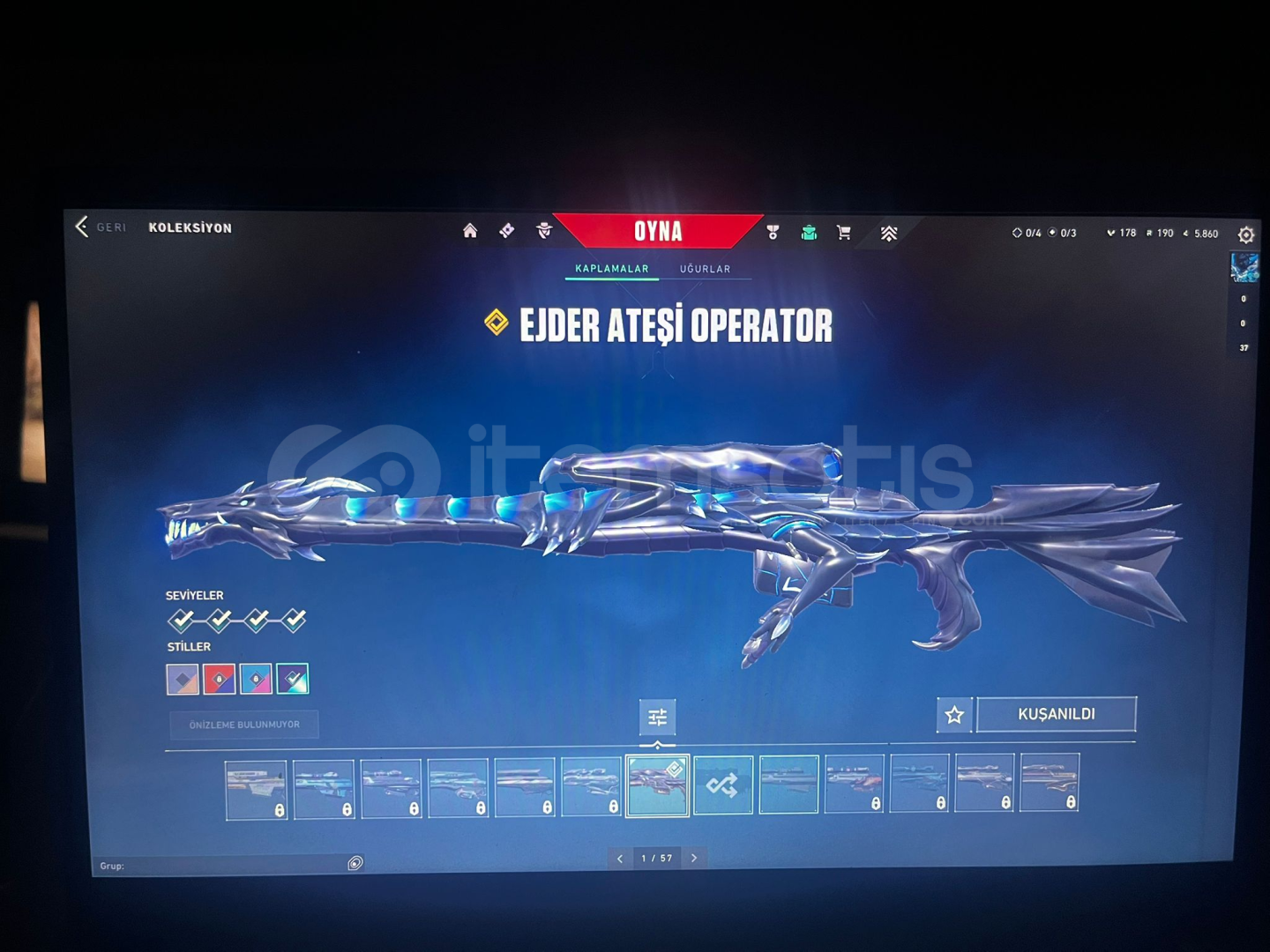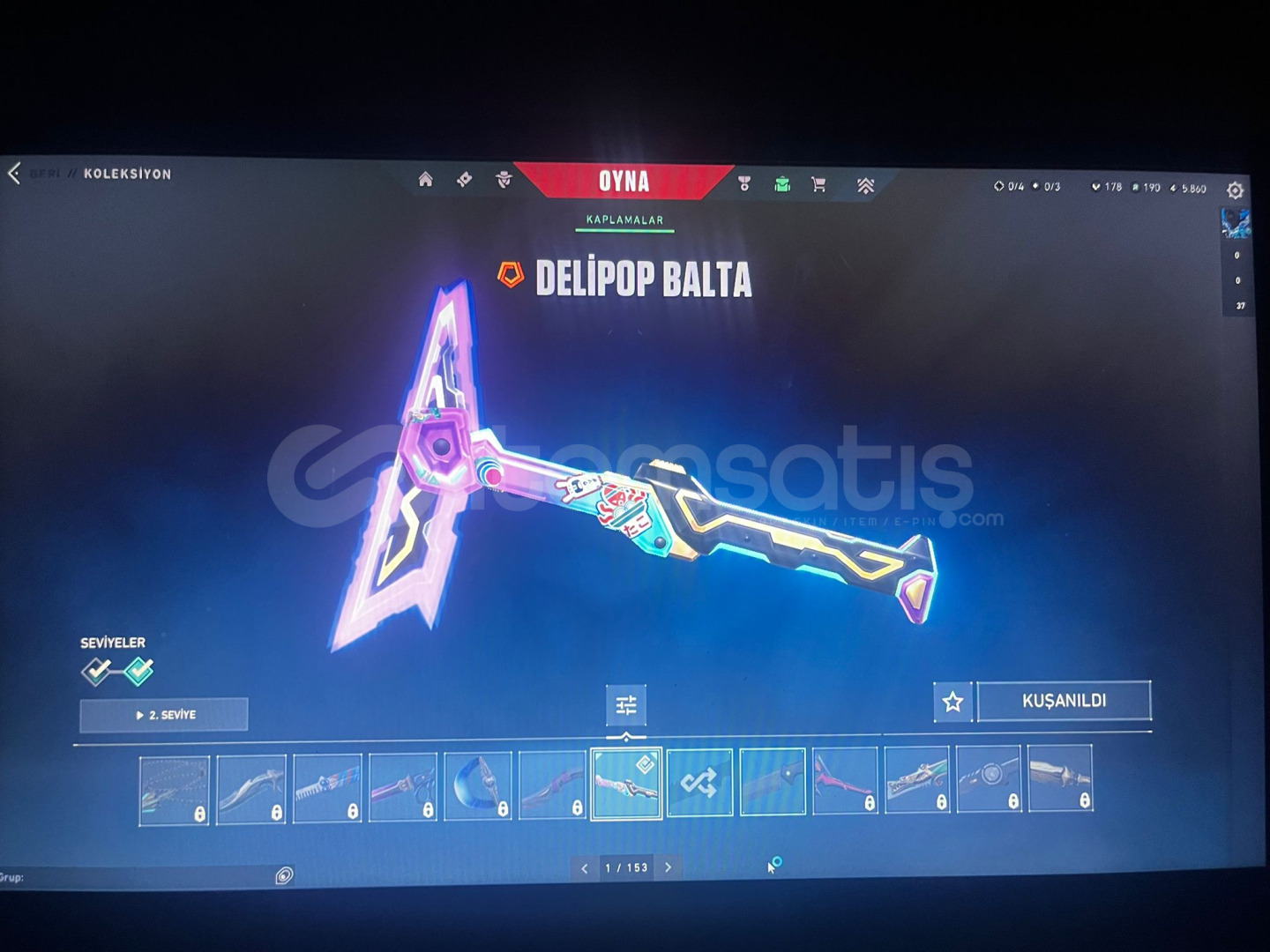 Hesaptaki skinlerYağmacı VandalGaia VandalYağmacı phantomEjder operatorDelipop BaltaDelipop Classicİyon ShreiffBlastx spctreGaia ghostHesap iki battlepass bitirilmiş olup en fazla dia 2 ye kadar cikmis hesaptırİhtiyaçtan satiliktadir