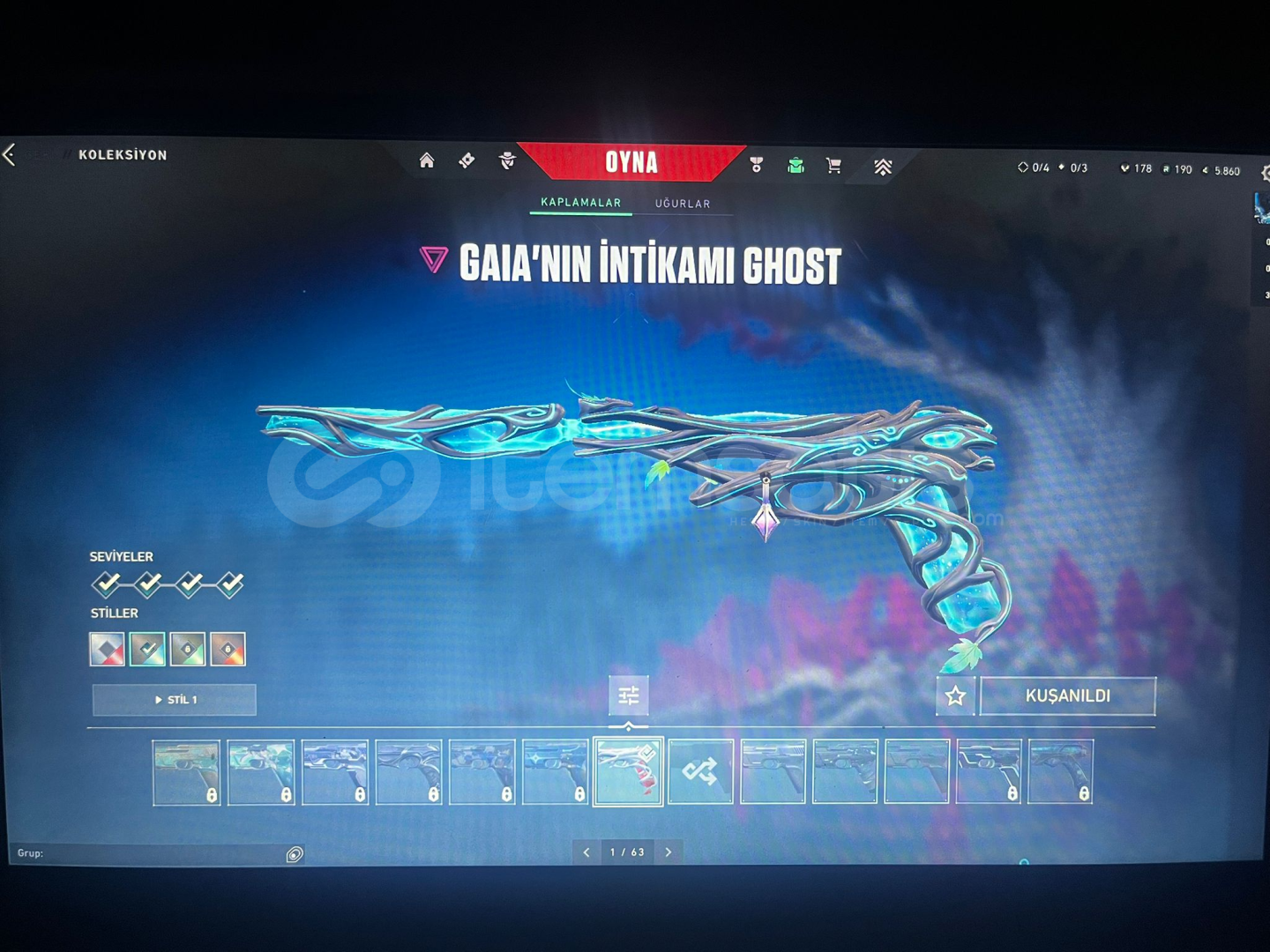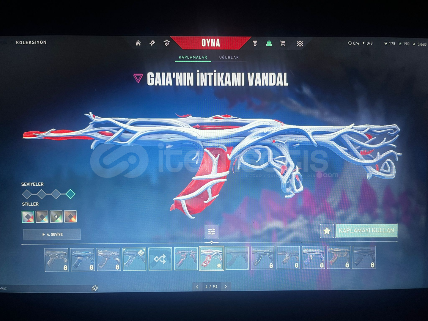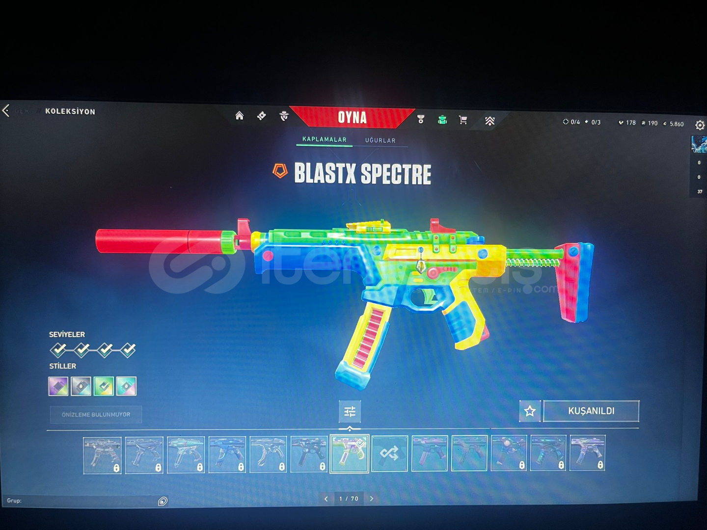 Hesaptaki skinlerYağmacı VandalGaia VandalYağmacı phantomEjder operatorDelipop BaltaDelipop Classicİyon ShreiffBlastx spctreGaia ghostHesap iki battlepass bitirilmiş olup en fazla dia 2 ye kadar cikmis hesaptırİhtiyaçtan satiliktadir