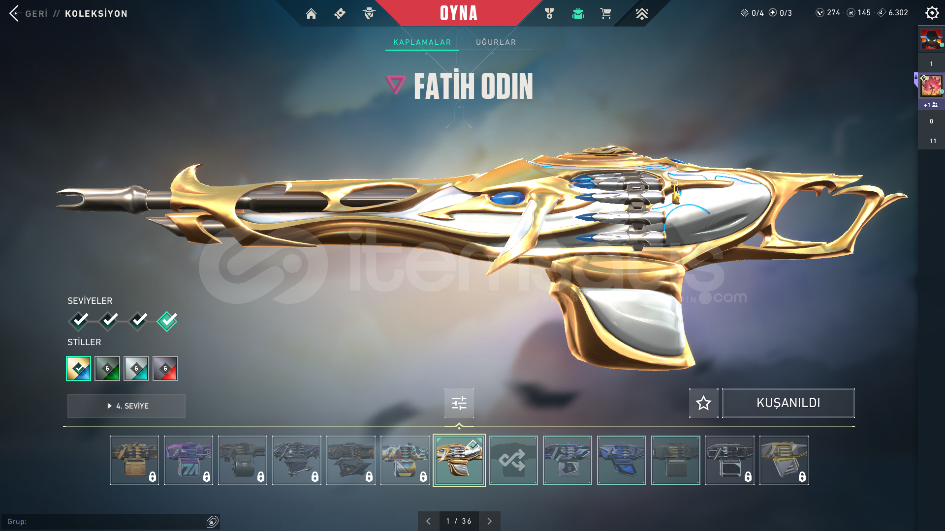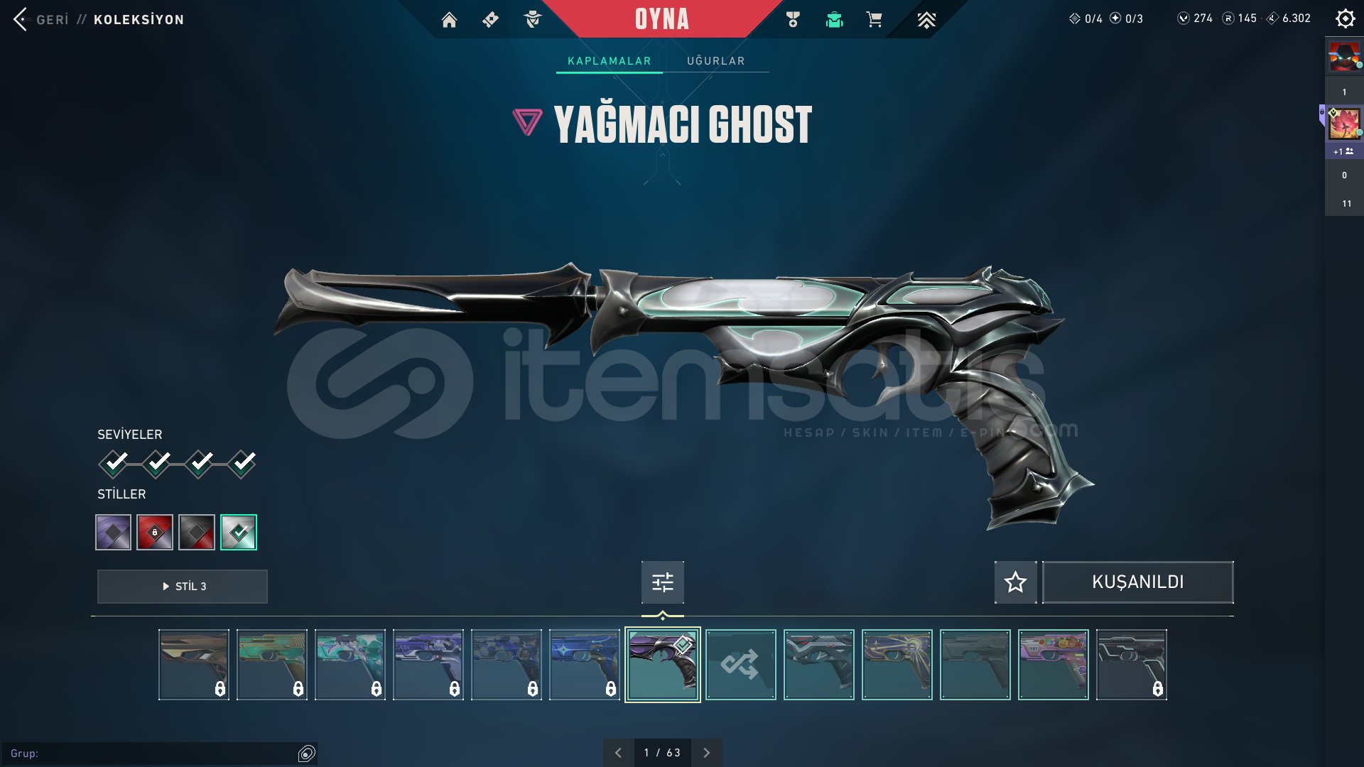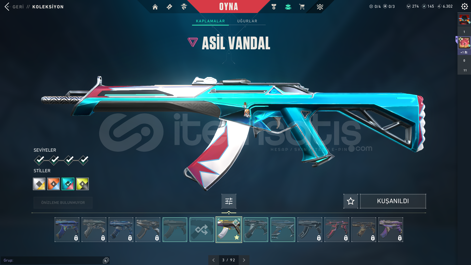 💥 Skin Listesi:Yağmacı setleri:Yağmacı GhostYağmacı SpectreYağmacı PhantomYağmacı OperatorKuronomi setinden:Kuronomi VandalKuronomi ŞerifKuronomi MarshallAsil VandalSeri Tetik ŞerifRGX KarambitFatih Guardian⚙️ Hesap Bilgileri:Seviye: 133Rank: Altın 2VP: 274Radianit: 145Sunucu: TR💬 Ek Bilgi:Mail ve güvenlik bilgileri devir teslim yapılır.Fiyat görüşülür.Mail Durumu...