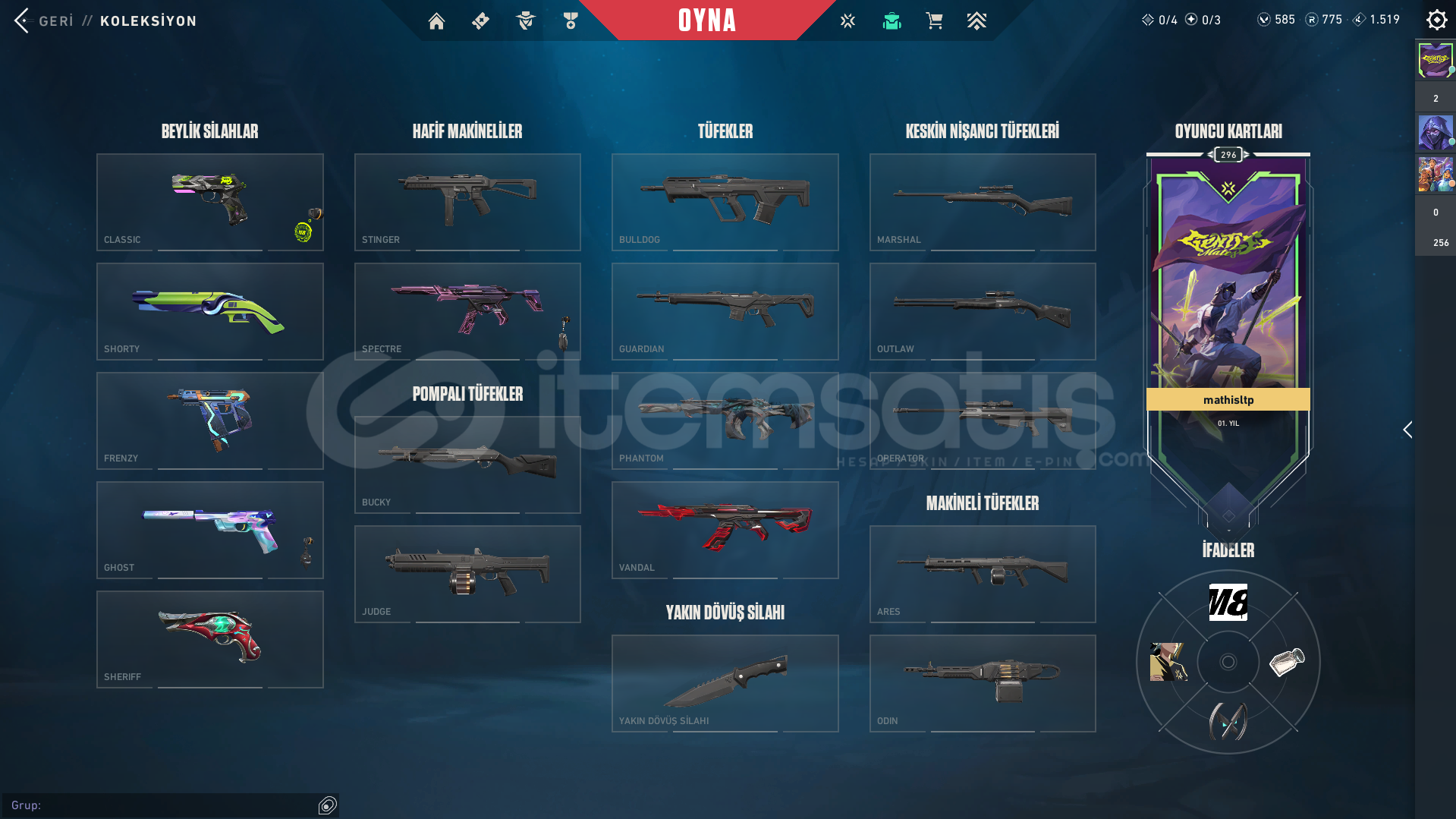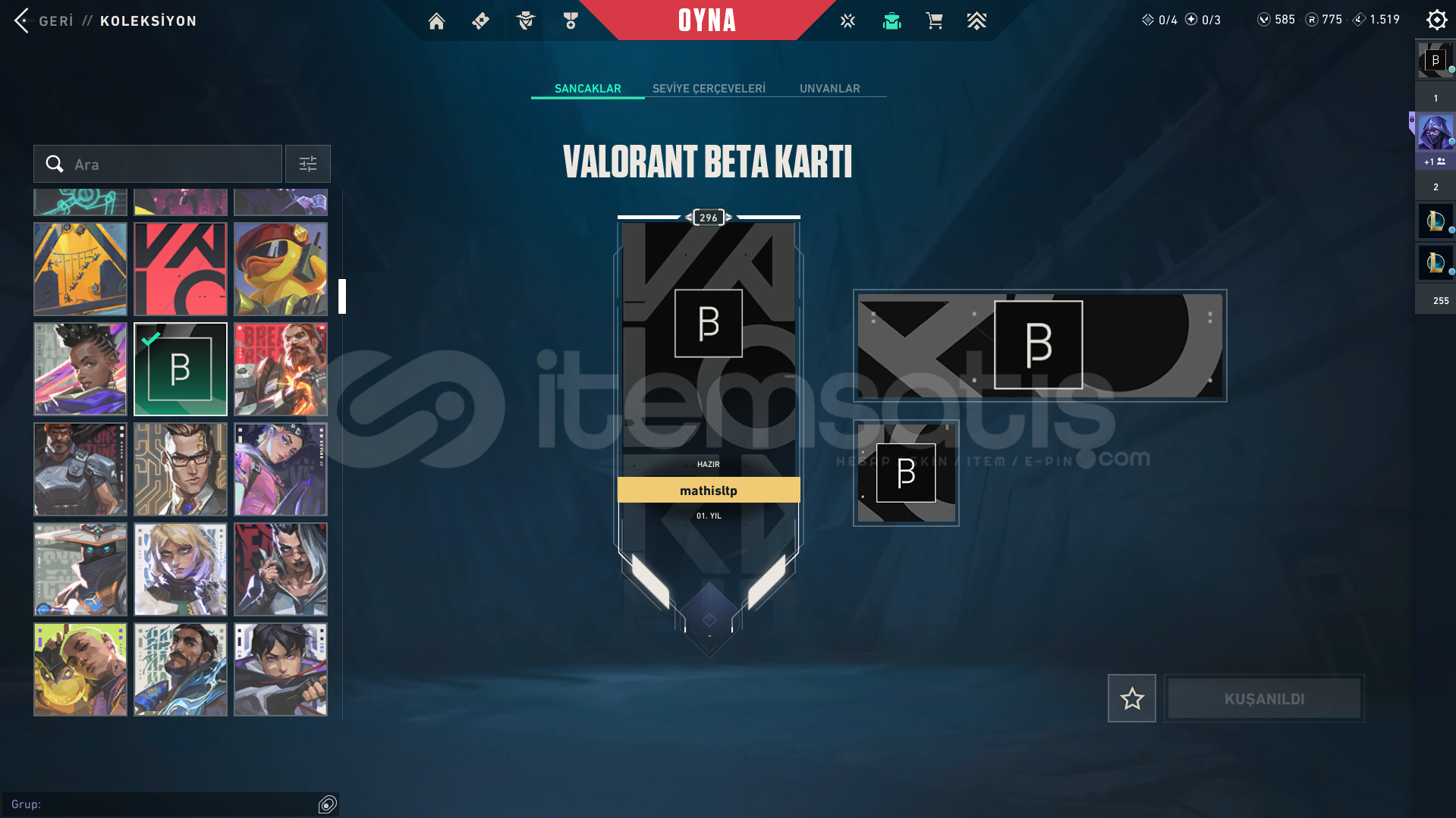 Riot Hesabı Olarak Verilecektir Ve Tamamen Üstünüze Olacaktır.2021 HESABIDIR(BETA)Hesap 296 Seviyedir.35 Skin Vardır.Altın Ranktır.Türkiye Server Olup Sadece Mağazası Avrupadır.(Ms Listesi Türkiye)Bazı Değerli Skinler;Vct X M8 Classic.EX.O Spectre.Zifiri Phantom.Rgx Phantom.EX.O Vandal.Işık Muhafızı Vandal.!!! HESAPTA BETA KARTI VE 01. YIL ÜNVANI VARDIR !!!