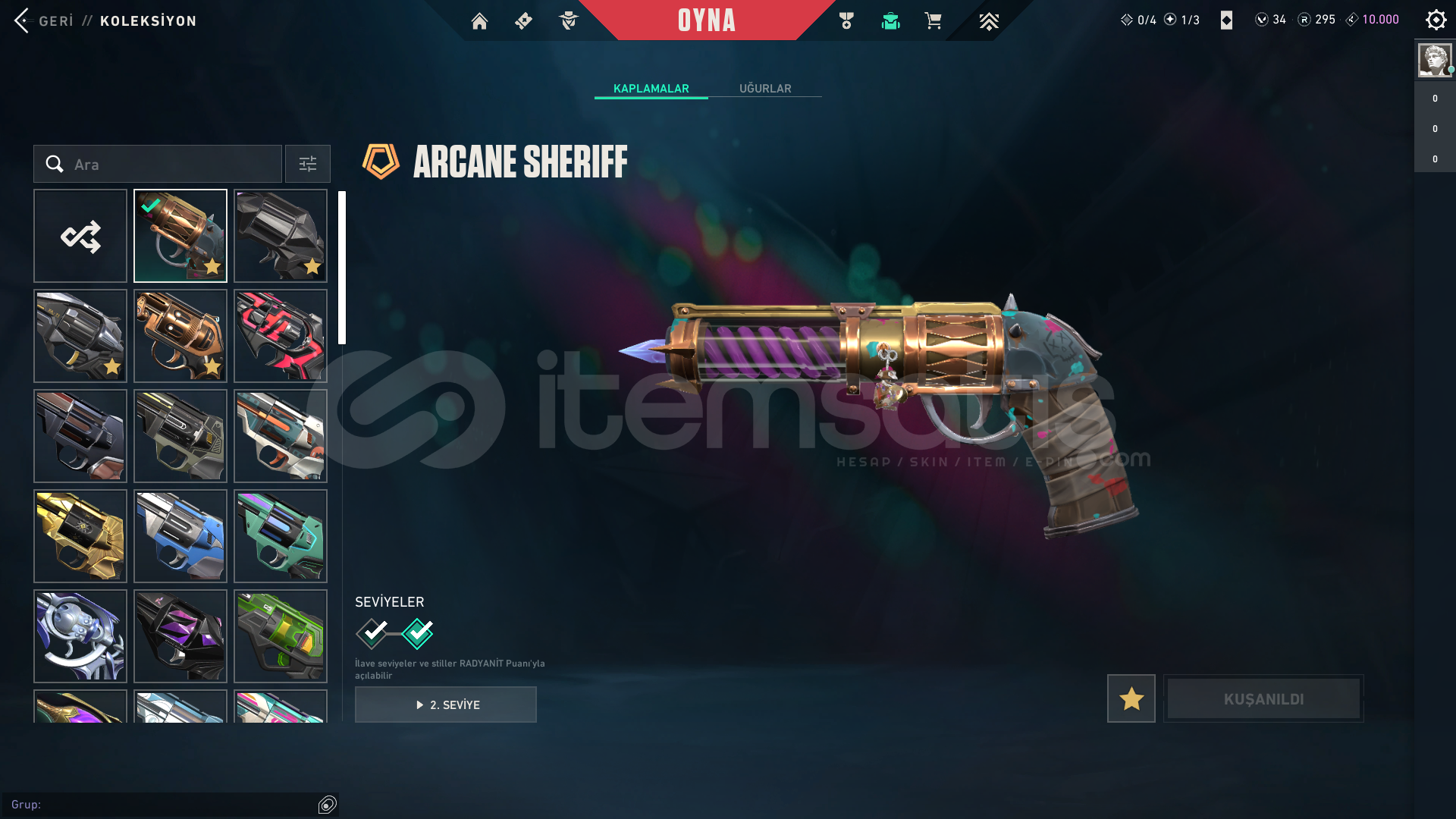 Hesap Özellikleri:- 15 adet bıçak deseni (Battle Pass bıçakları hariç)- 12 adet Vandal deseni (Battle Pass desenleri hariç)- Arcane Vandal (tek alınmış)- Arcane Sheriff (koleksiyon olarak alınmış)- Champions 2022 Phantom- Champions 2024 Seti (tam koleksiyon)- Premier sistemi için telefon doğrulaması yapılmış, daha sonra kaldırılmıştır.- Detaylı skin gör...