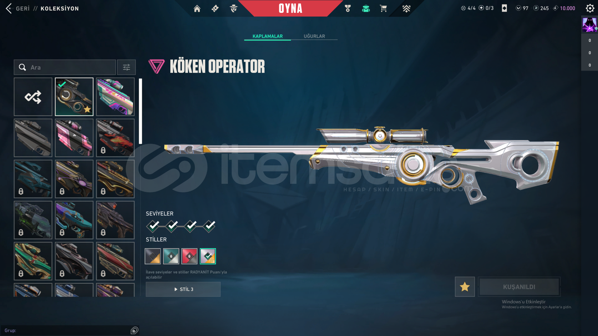 Güveni satış ile GOLD ELOOnı VandalKaos VandalFatih PhantomUzaylı Avıcısı BıçakEbedi Fatih BıçakSeri Tetik SherıffYağmacı GhostFatih JudgeFatih OdinKöken Operatör Özel Harekat SpecrteFatih FrenzyDaha fazla skın ile normal olanlar 26,450 VP HARCANDI Dolu hesaptır mail devri yapılacak şifre değiştirip hesap üstünüze olcak sorun yoktur Şimdiden Hay...