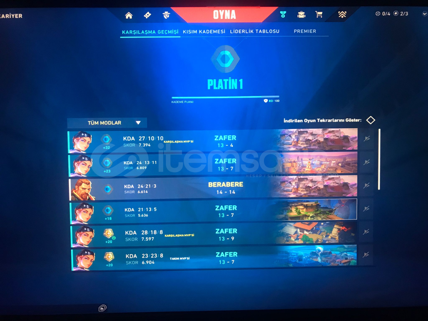 Hesap Özellikleri159 LevelGüncel Rank: Platinum 1Sunucu: TRBan, uyarı, chat restriction yokTelefon numarası kaldırılabilirVandal✔ Kaos Vandal Sheriff✔ Anomaly SheriffOperator✔ Yitik OperatorSpectre✔ Asil Spectre Skinler temiz ve hesapta hiçbir sıkıntı yok.Riot destek değişimi sorunsuz yapılabilir.E-posta ve tüm hesap bilgilerinin devri alıcıya teslim sırasında verilecektir.
