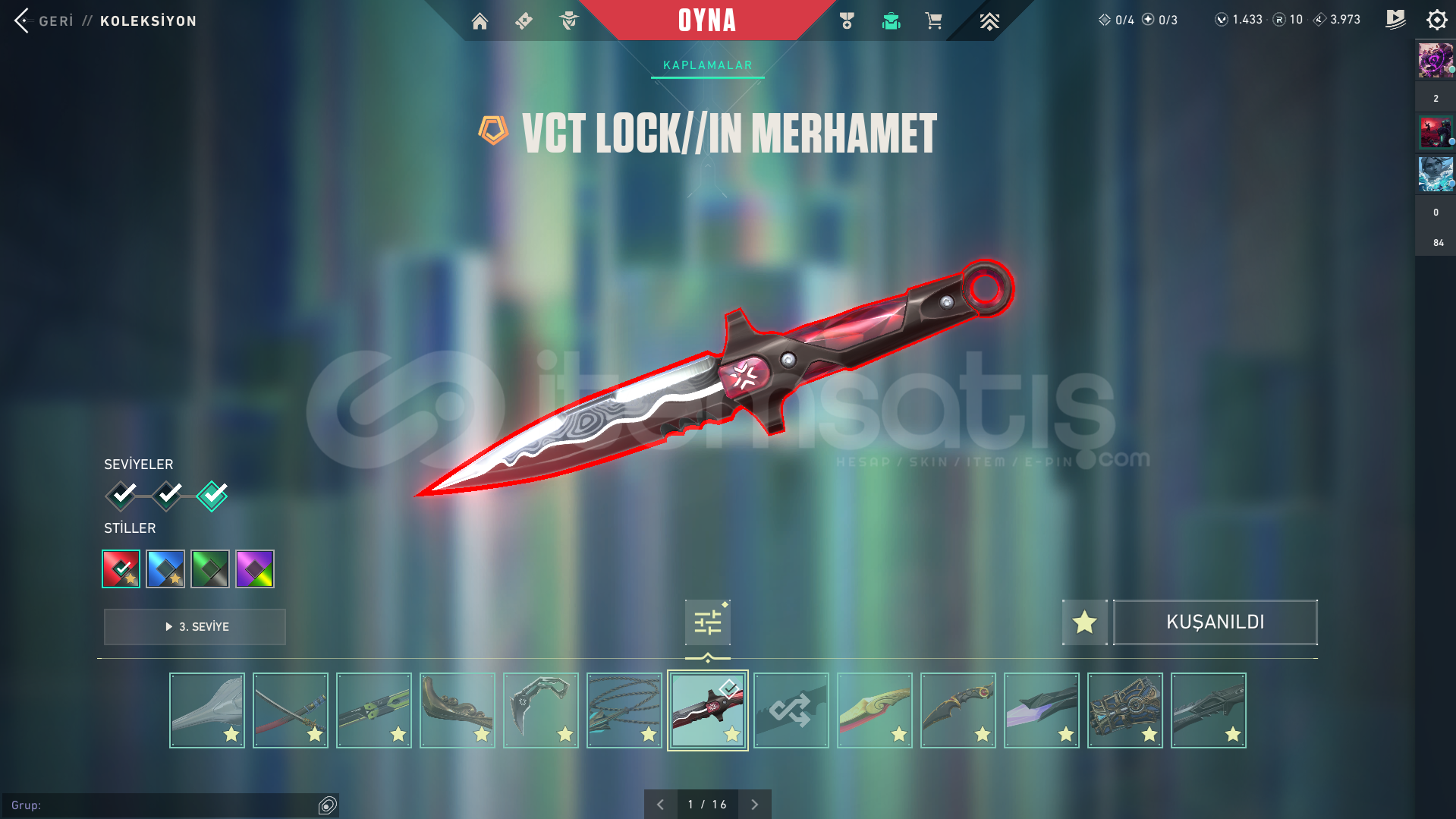 BIÇAK: ALTIN AFET HANÇER, ALAZ YELPAZE, ANOMALİ KELEBEK, ARCANE ELDİVEN, PROTOKOL BIÇAK , CHAM24, CHAM25, DOLMİR KILIÇ, İYON PENÇE, ONİ KATANA, RGX KELEBEK, SEMAVİ YELPAZE, VCT 25 KARAMBİT, VCT LOCK IN MERHAMET, YILDIZ PARÇALAYAN(15)