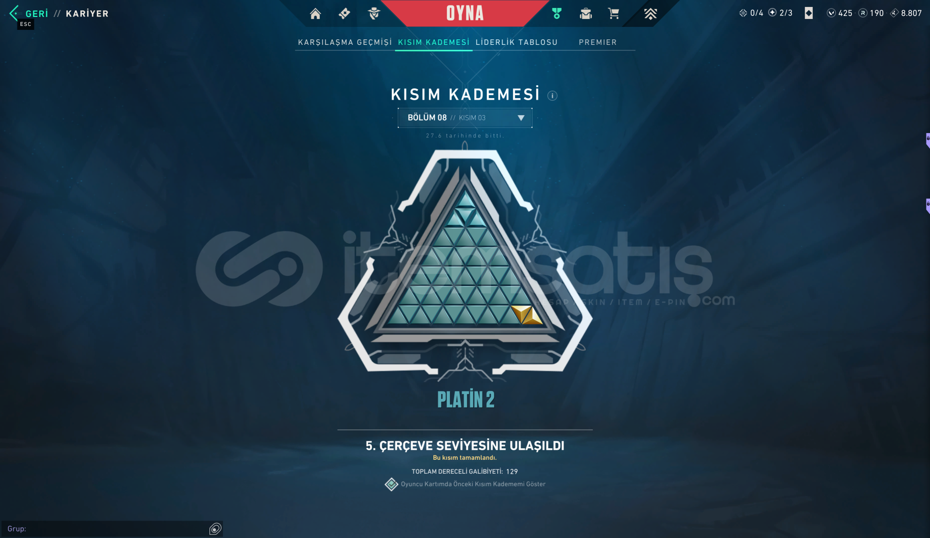 Hesapta 2 Battle Pass açılmış son açılan battle pass daha fullenmemiştir 46. Seviyededir. Hesap 131 seviyedir Türkiye sunucusudur. Hesapta 425 VP + 190 Radyanit puanı vardır ve hesapta tüm ajanlar açıktır. Daha önce Plat 2 Gördü hesap ama şuan Bronz 1.