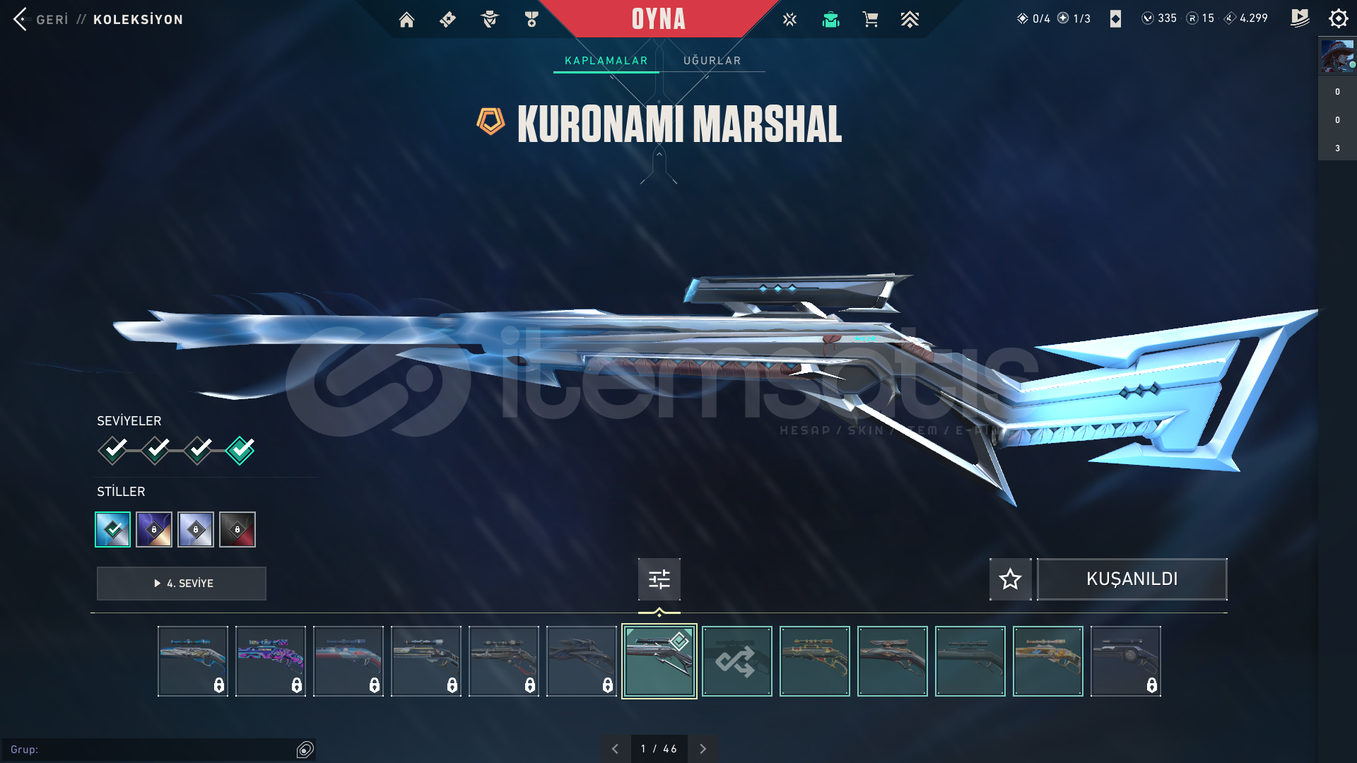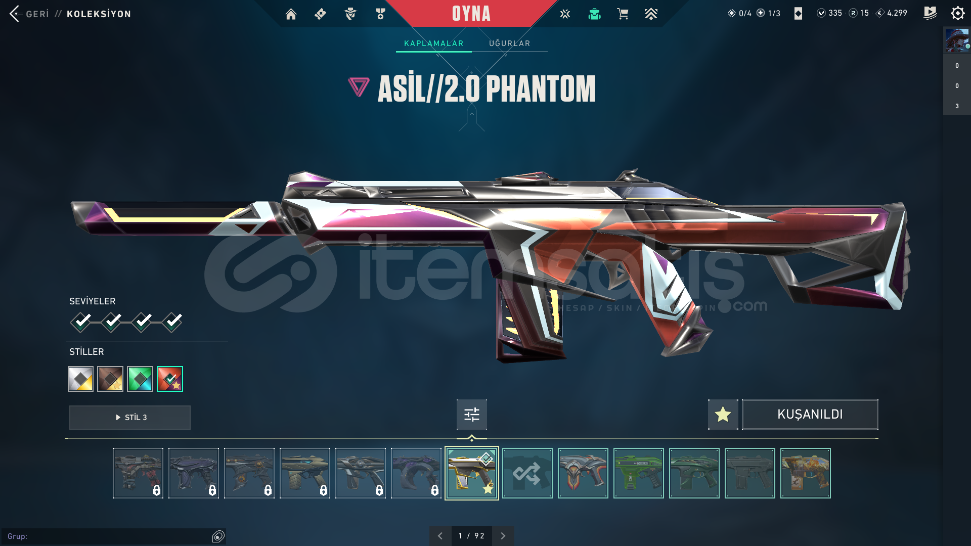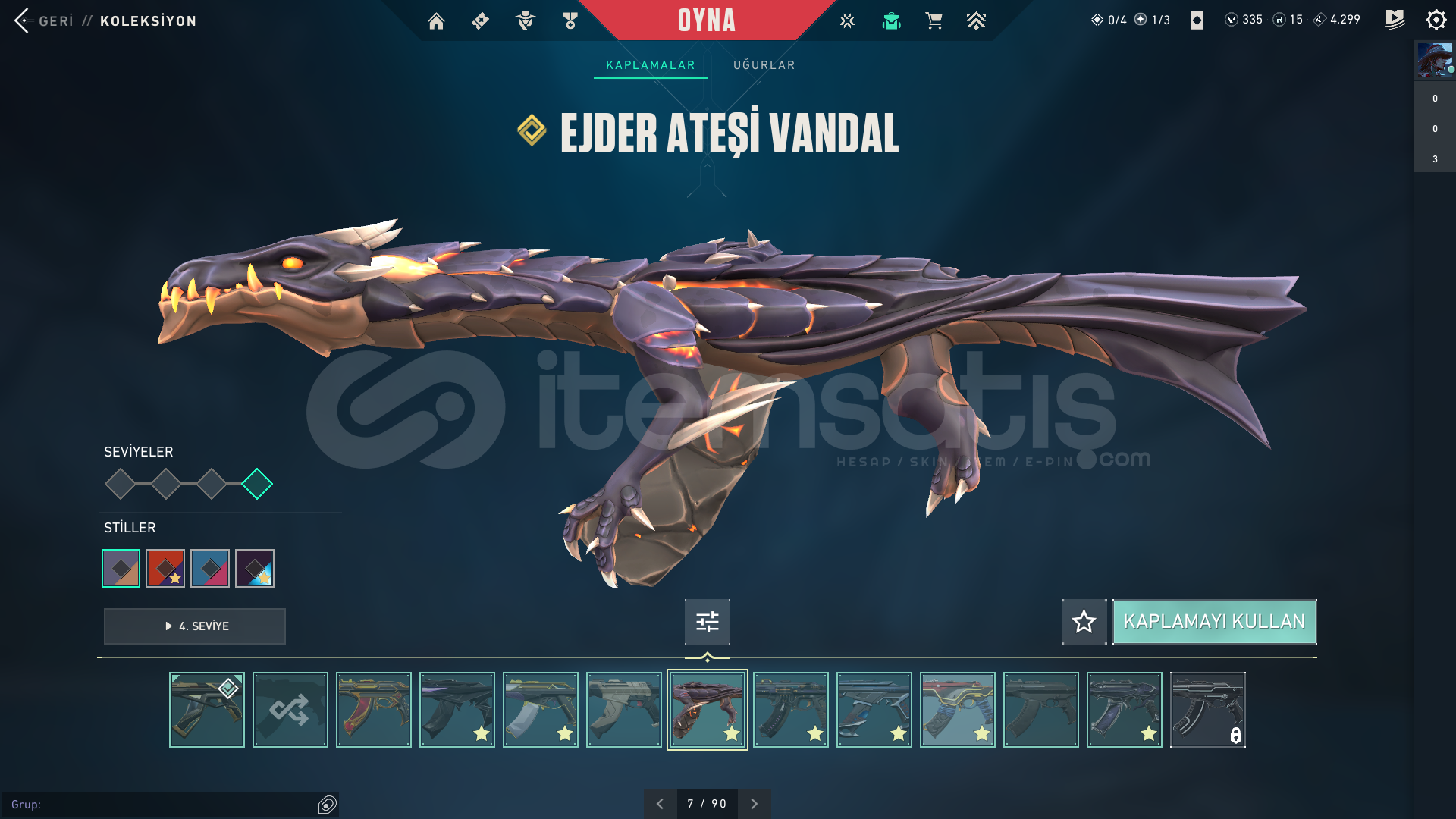 • Skinler:  Vandal Kuronami -Anomali-Oni-Yağmacı-Ejder-/Toplam 7-8 Tane Vandal var ve daha sayamadığım bir sürü desen vardır hemen hemen silahda desen vardır.