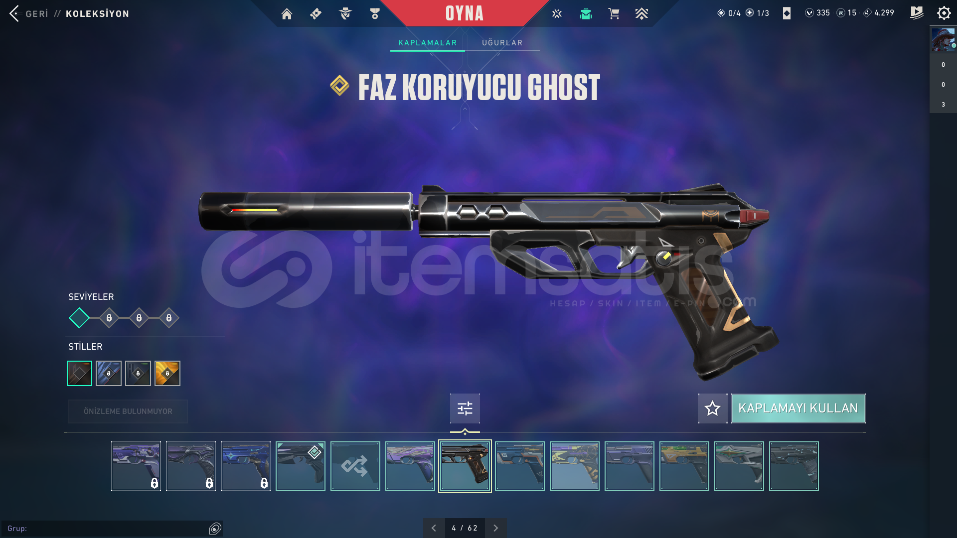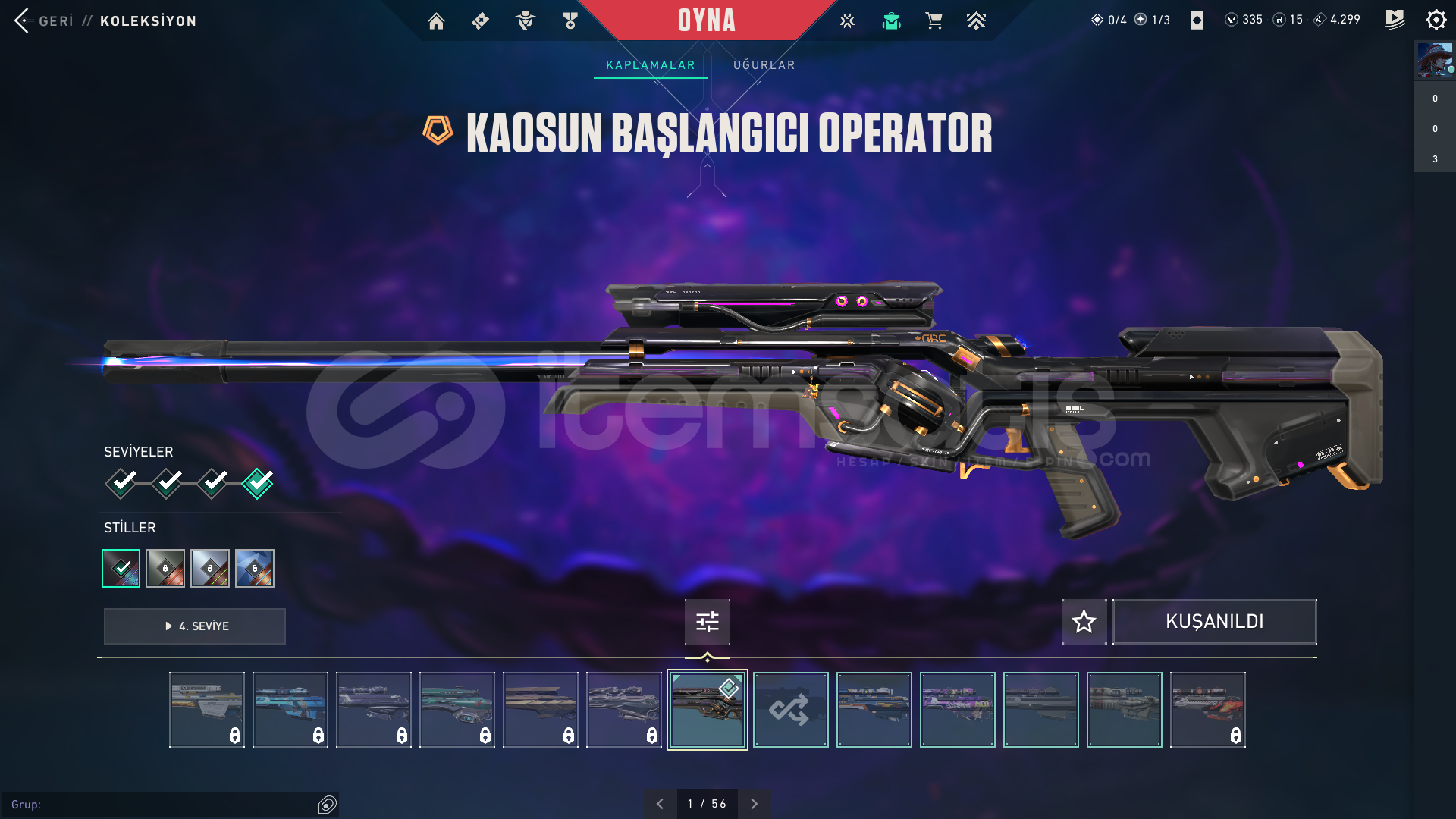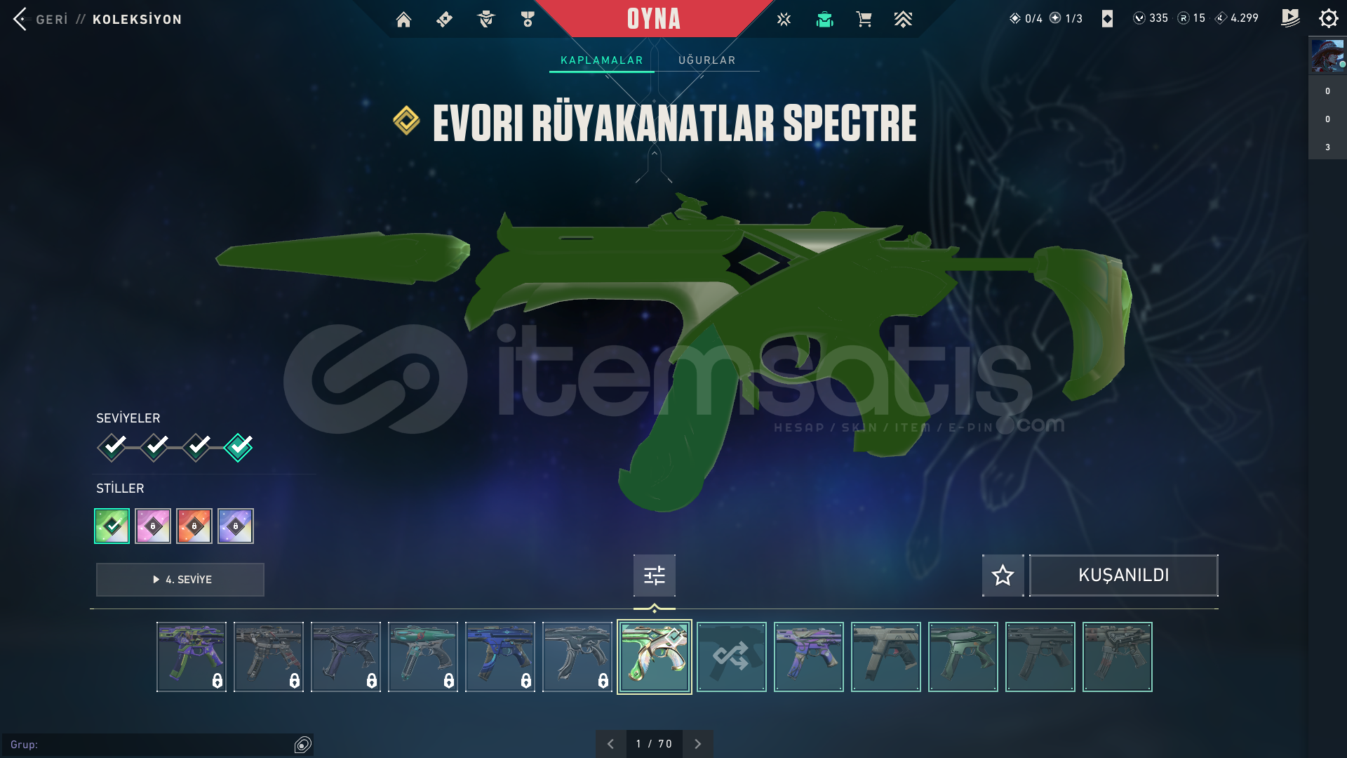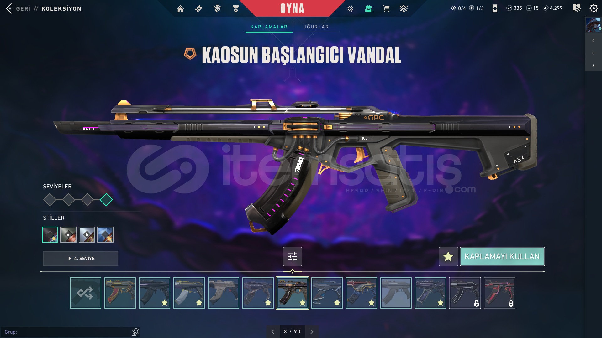 • Skinler:  Vandal Kuronami -Anomali-Oni-Yağmacı-Ejder-/Toplam 7-8 Tane Vandal var ve daha sayamadığım bir sürü desen vardır hemen hemen silahda desen vardır.