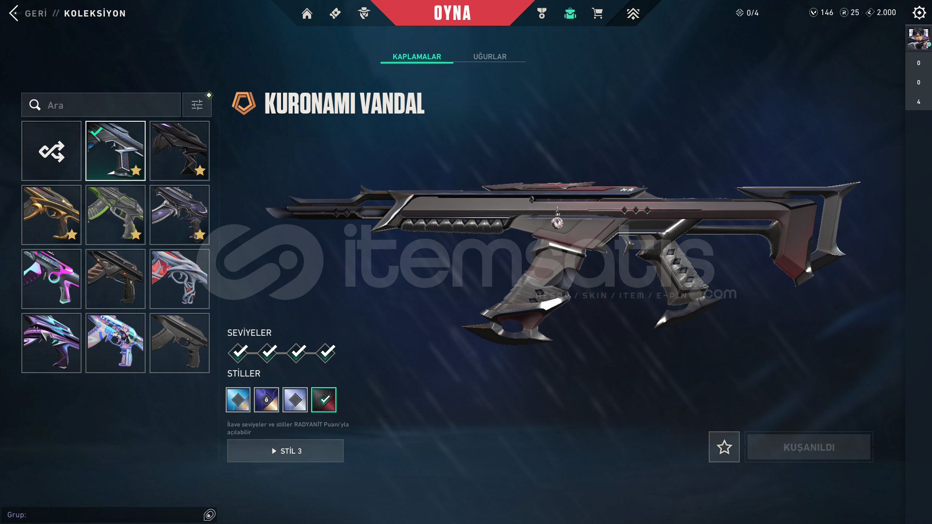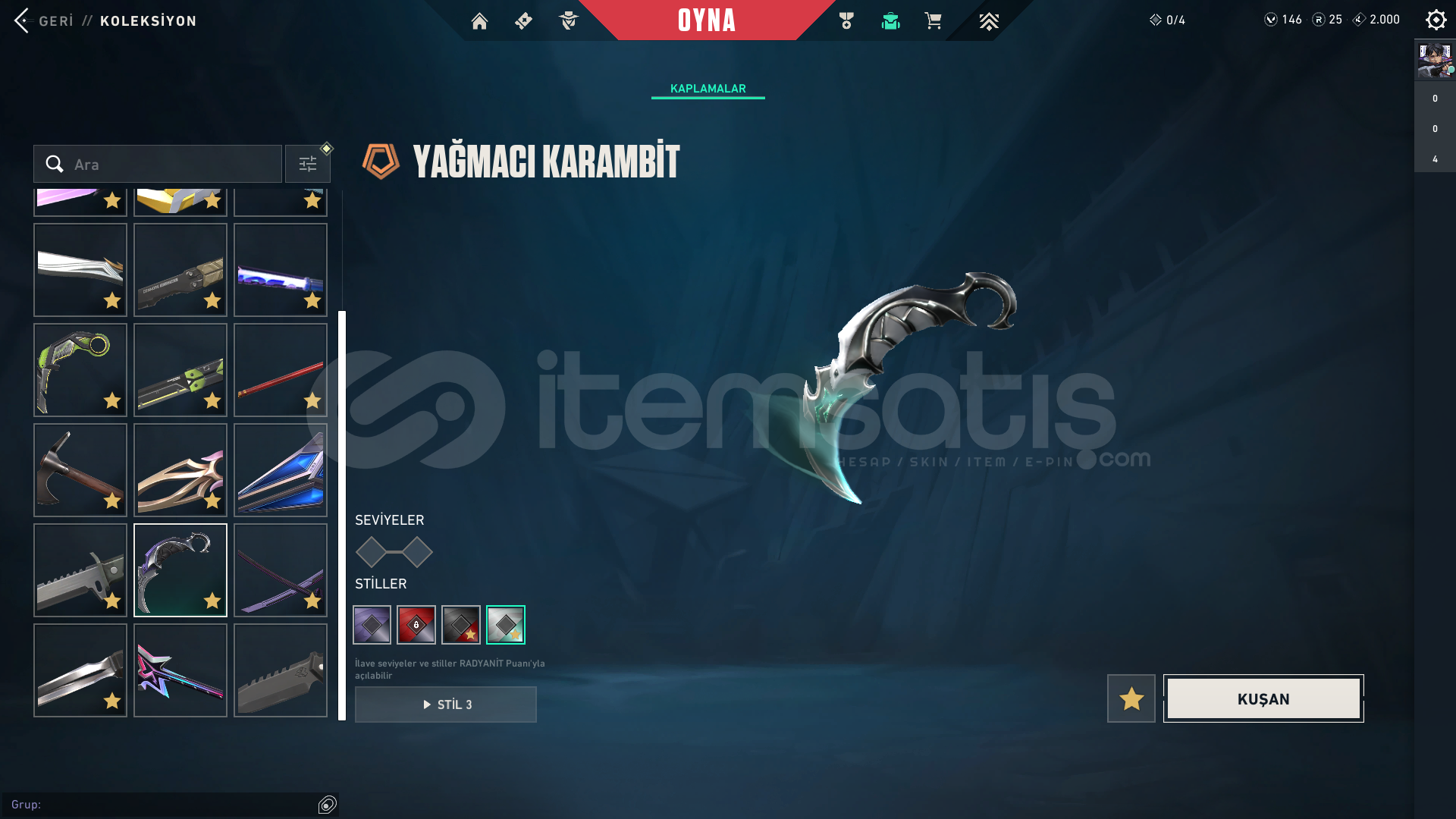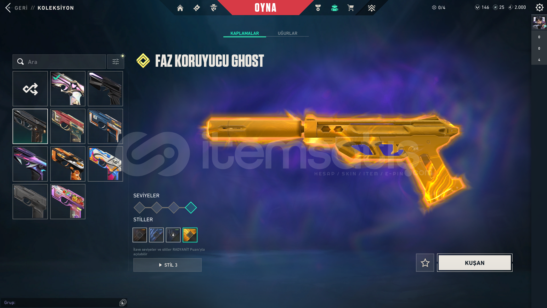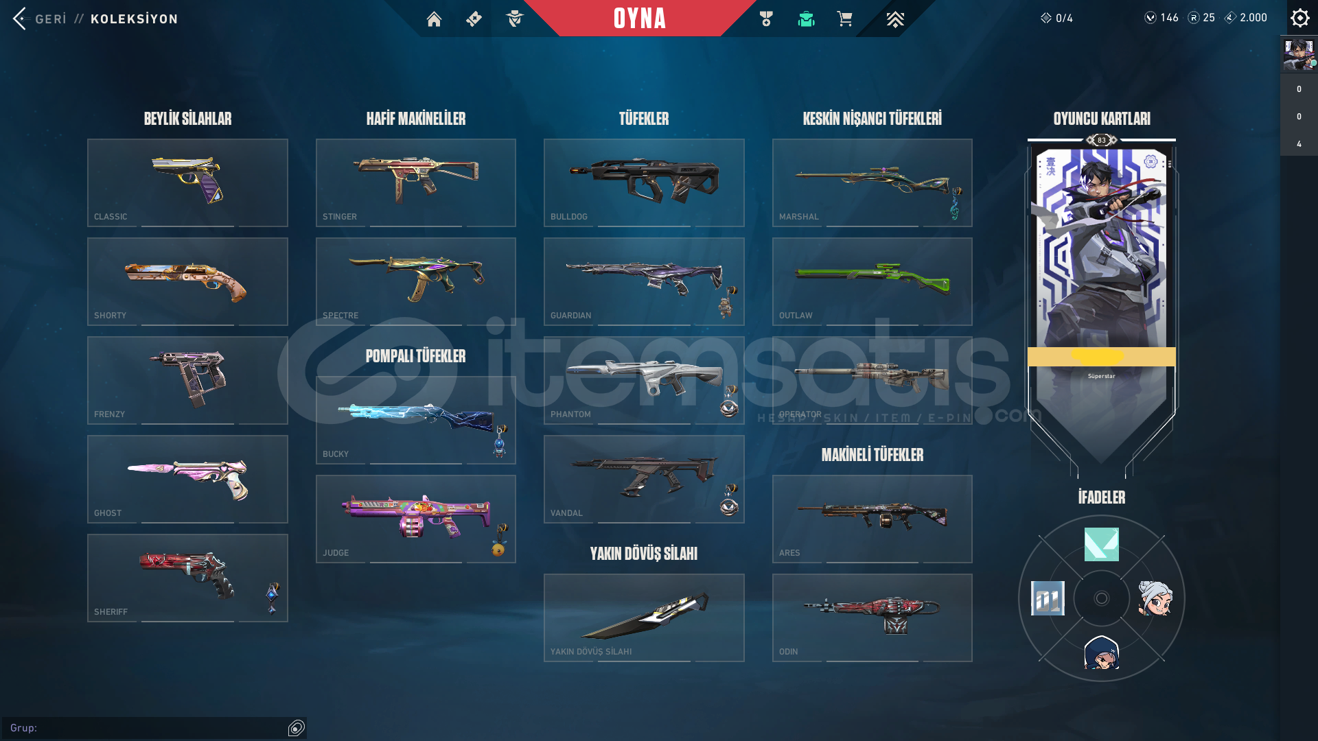 Hesaba 1420 Euro (70.435,64 Türk Lirası) Yatırılmıştır.Seviye: 83Kademe: Gümüş 2VP: 146Radyanit: 25Skinler;Faz Koruyucusu BulldogFaz Koruyucusu VandalFaz Koruyucusu GhostEvori GhostÖzel Harekat KelebekKuronami VandalYağmacı KarambitRuyi SopasıORA by OneTap BıçakFatih KılıçDenge (Yelpaze)Anomali VandalRGX VandalRGX KarambitEX.O KılıçAn...
