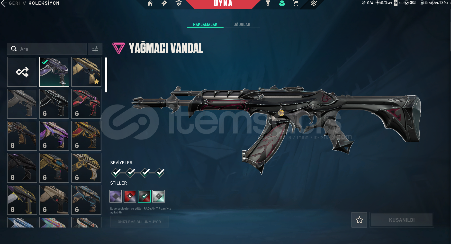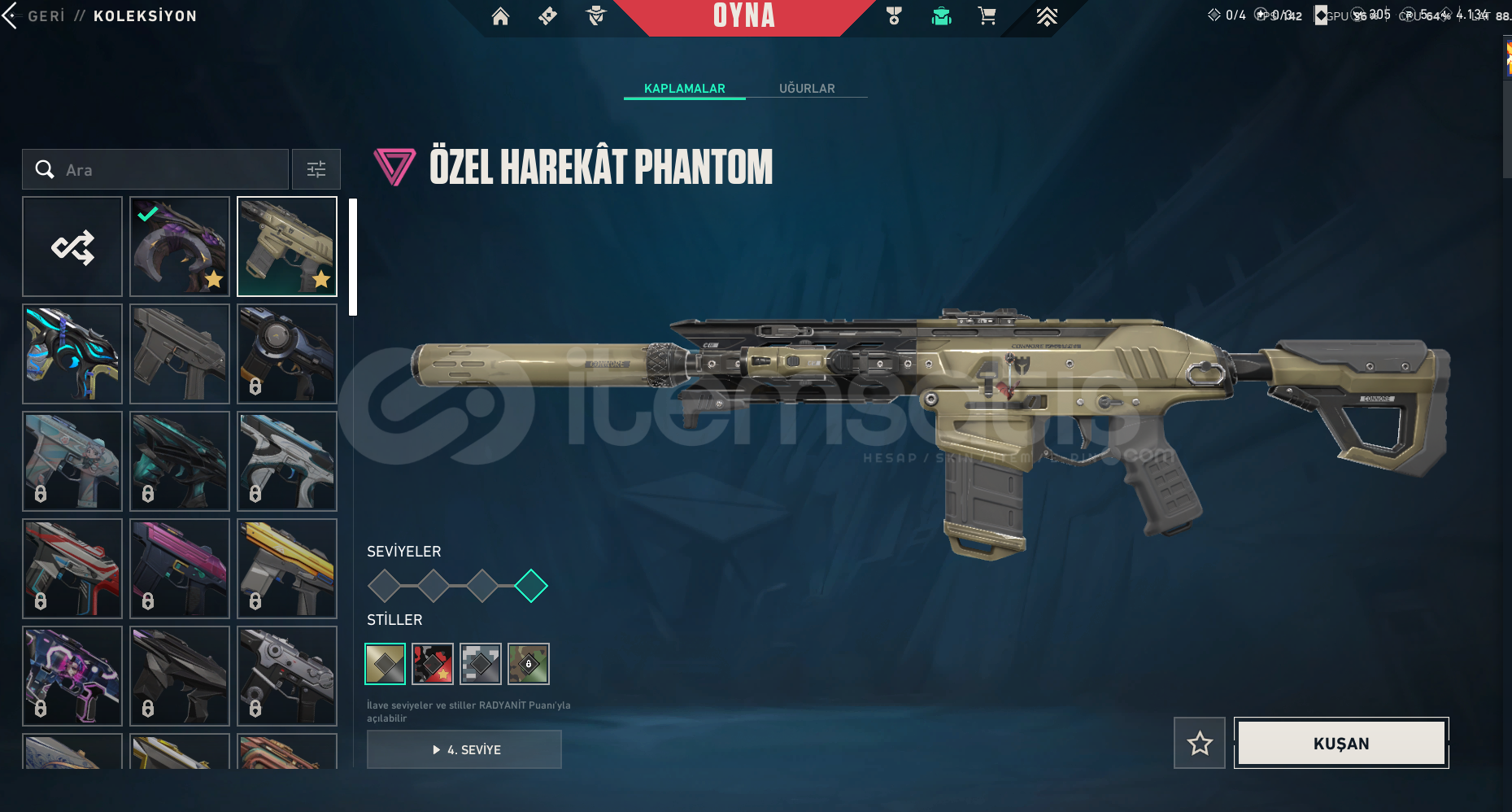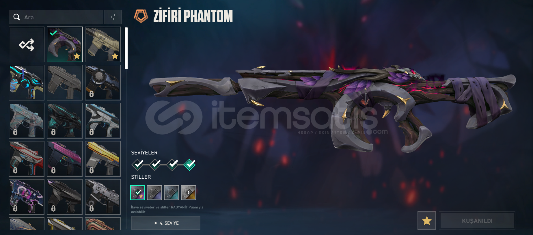 hesapta olan skinler:zifiri phantomözel harekat phantomyağmacı vandalyıldız belası vandalasil karambityağmacı karambit1 bitirilmemiş bpmail değiştirilerek verilecektir.hesap plat 3 tür 1 elmasa 1 maçı kalmıştır