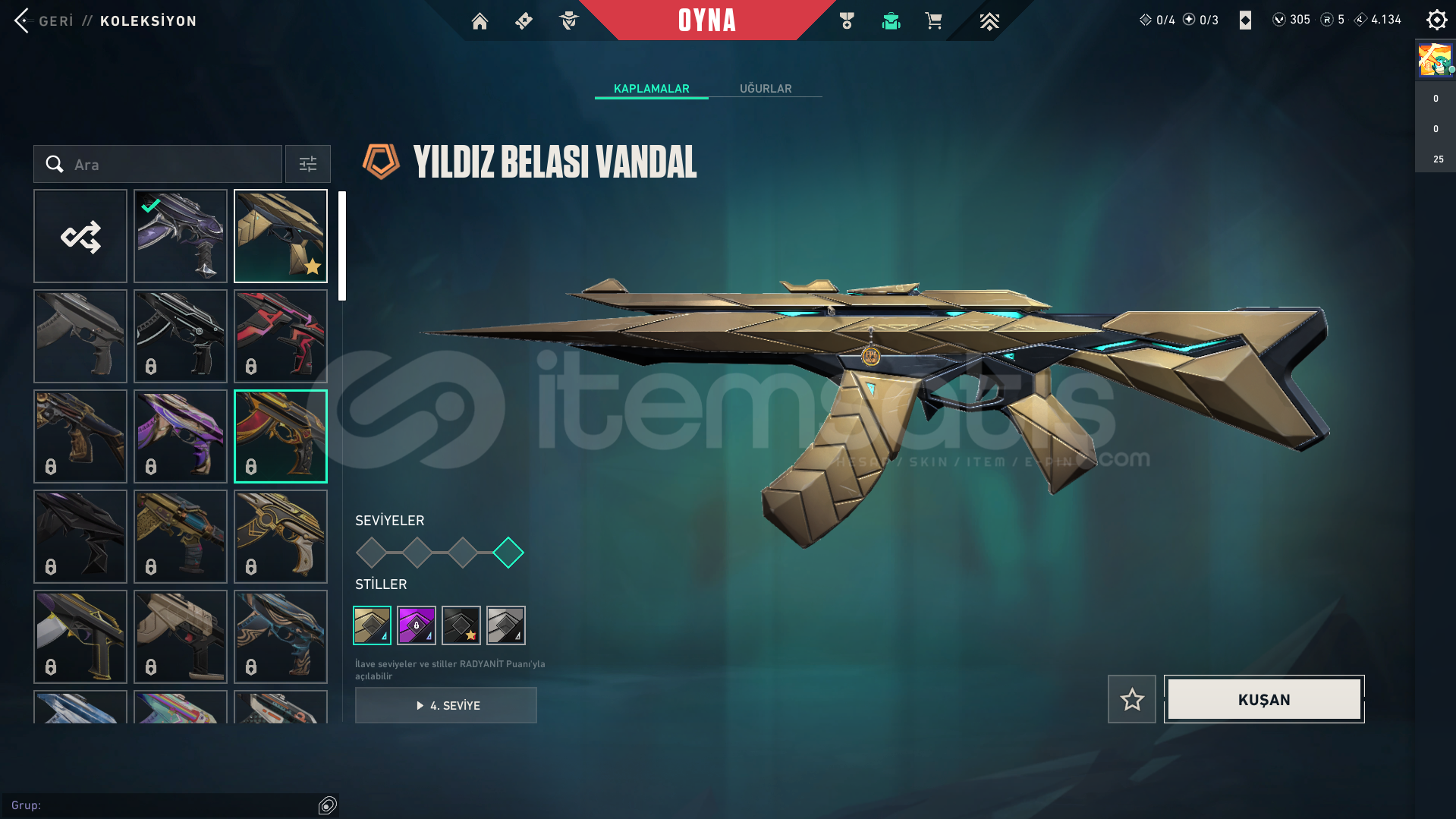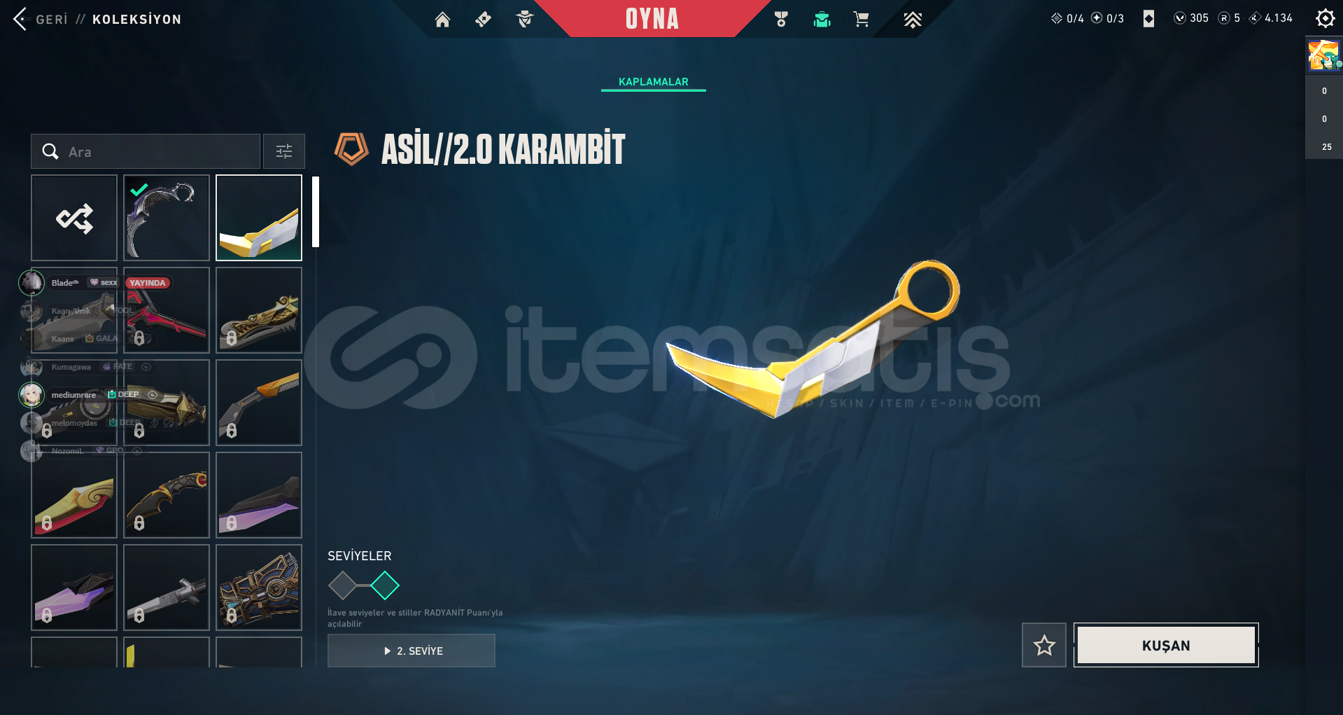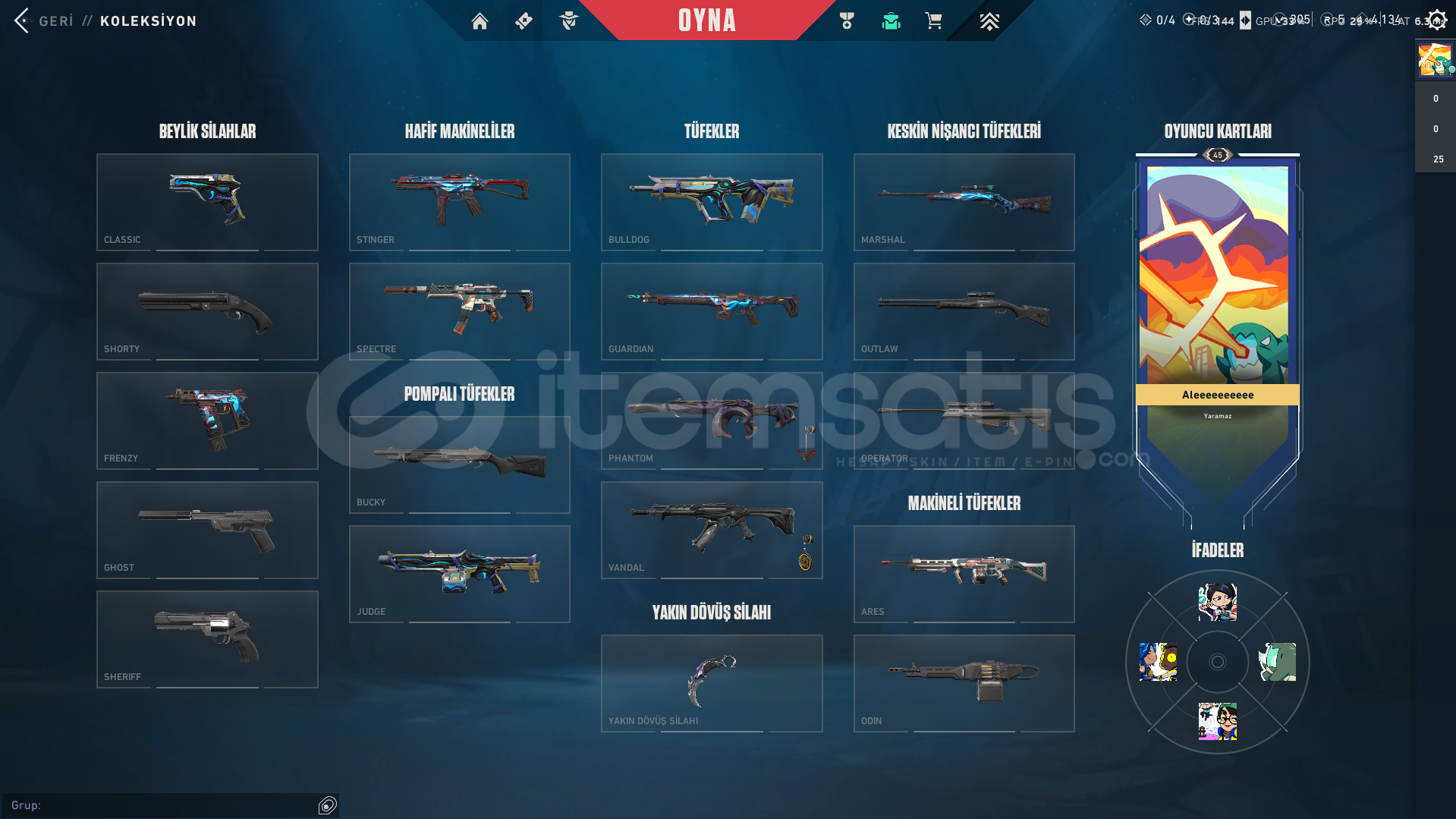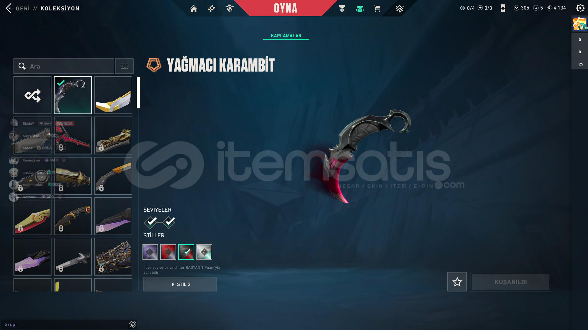 hesapta olan skinler:zifiri phantomözel harekat phantomyağmacı vandalyıldız belası vandalasil karambityağmacı karambit1 bitirilmemiş bpmail değiştirilerek verilecektir.hesap plat 3 tür 1 elmasa 1 maçı kalmıştır