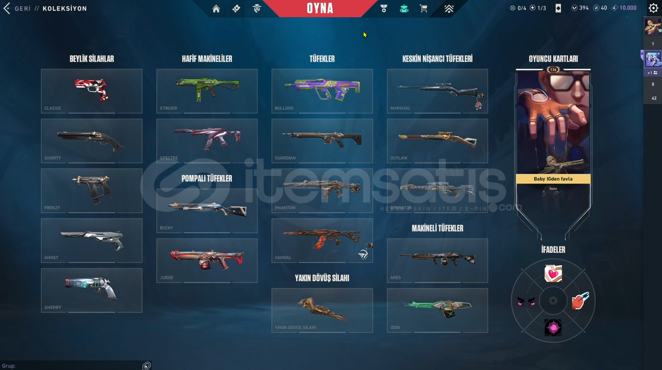 VALORANT HESAP/GAİA, KAOS, CHAMPİONS25, ONİ , ULUPENÇE VANDAL/FELAKETİN KALBİ PHANTOM/YAĞMACI, KURONOMİ, SERİ TETİK SHERRİF/YAĞMACI, ULUPENÇE GHOST/VCT CLASSİC/RGX OUTLAW/EJDER OPERATOR/SON 8 SAVAŞ BİLETİNİN 6SI ALINMIŞTIR/İYON KARAMBİT, YAĞMACI KARAMBİT, KARABORSA KELEBEK, SEMAVİ YELPAZE, DENGE , ONI KATANA, SIRCICEGI KUNAI