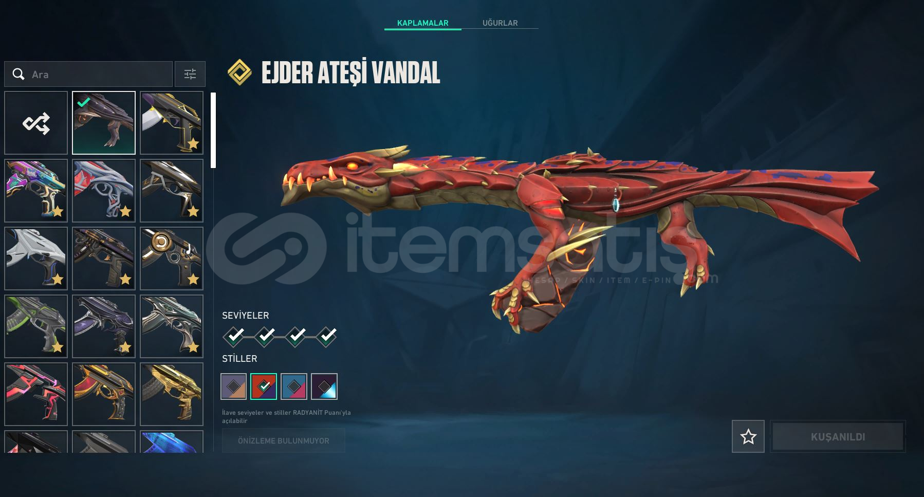 19 ADET VANDAL: EJDER ATEŞİ,IŞIK MUHAFIZI,DELİPOP,GAIA,KAOS,İYON,KÖKEN,RGX,YAĞMACI,YİTİK-gerisi battle pass😁