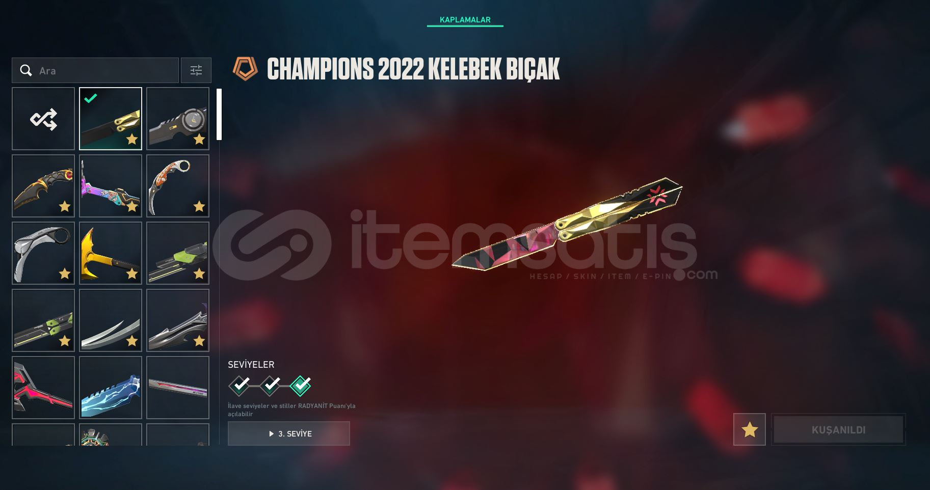 17 ADET BIÇAK: CHAMPIONS KELEBEK,RGX KELEBEK,RGX KATANA,İYON KARAMBİT,DELİPOP BALTA,YAĞMACI BIÇAK-gerisi battle pass😁
