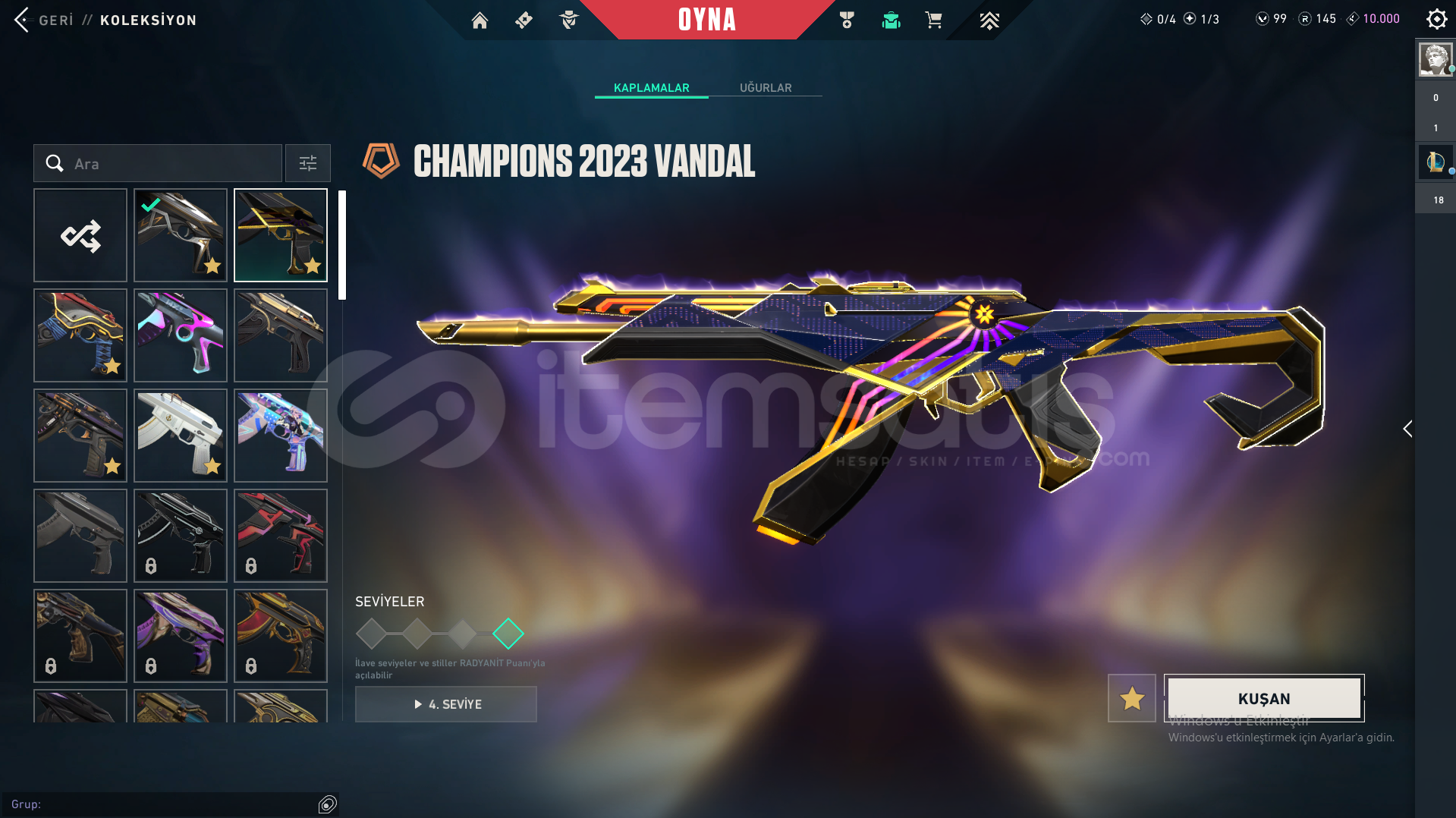 Hesap göründüğü gibidir ek bilgi isteyen olursa yardımcı olabilirim. Sınav senem oldugu ve artık oynamadığım için satıyorumçİlk maili yoktur ama olası bir durumda yazarsanırz ilgilenirim.NEPTUN VANDAL2023 CHAMP VANDALIŞIK MUHAFIZI VANDALONİ VANDALKAOS VANDALBLASTX PHANTOM2024 CHAMP PHANTOM ASİL PHANTOM ÖZEL HAREKAT PHANTOMUZAYLI AVCISI BIÇAKİYON KARAMBİTSPECTRUM BULL...