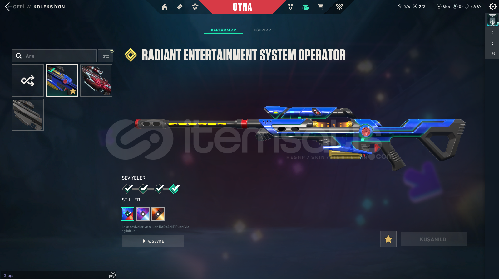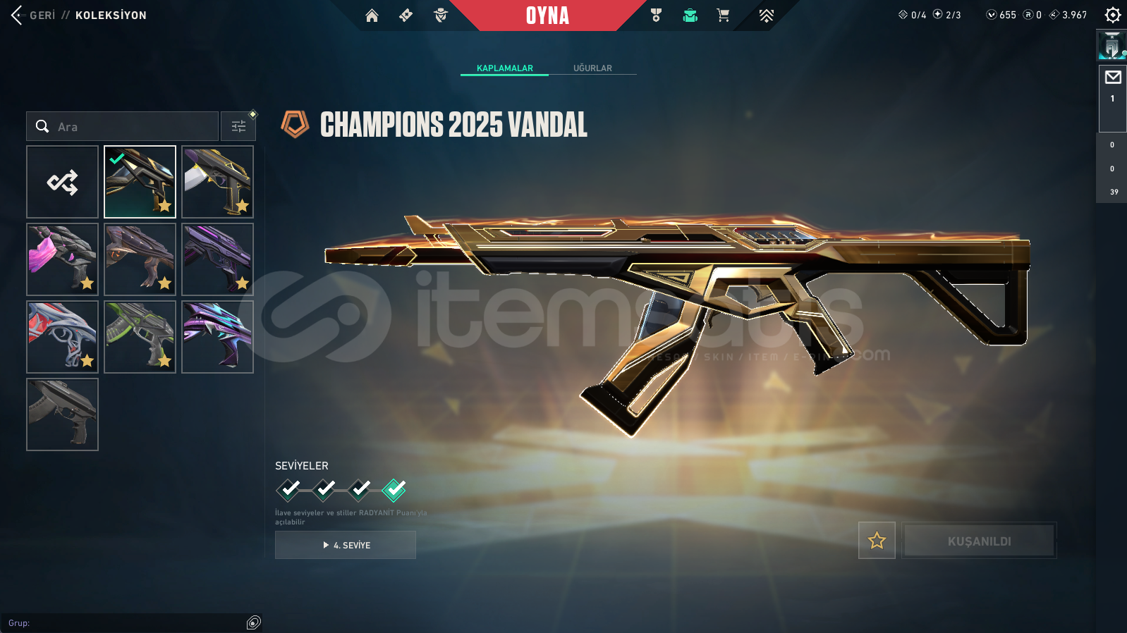 Vandallar: Champions 2025 Vandal , Asil Vandal , Dolmir in İntikamı Vandal , Exo Vandal , Gaia Vandal , Rgx Vandal , Ejder Ateşi Vandal