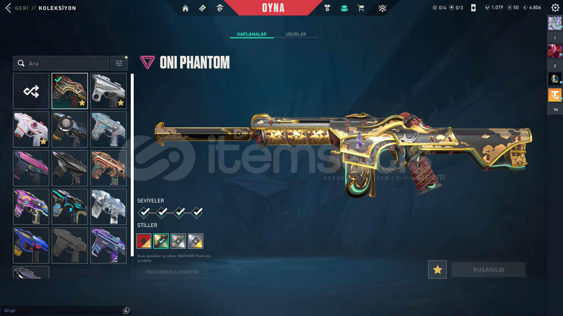 5 DAKİKADA TESLİMATHESAP İÇERİĞİ;CLASSİC: delipop, sarmal, yerçekimsel uranyumFRENZY: oniGHOST: radiant entertainment, sihirpunk ufkun sınırıSHERİFF: seri tetik, minimaSPECTRE: protokol, blastx, valorant go 1.ciltBULLDOG: oni, ufkun sınırıGUARDİAN: neptünPHANTOM: oni, iyon, spectrum, anomali, delipop, kış harikası, radiant entertainment, yağmacıVANDAL: gaia, asil delipop, ejder,...