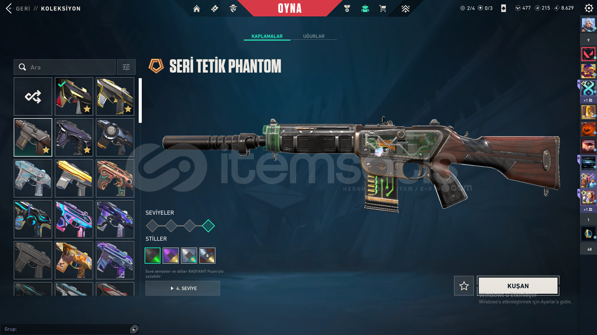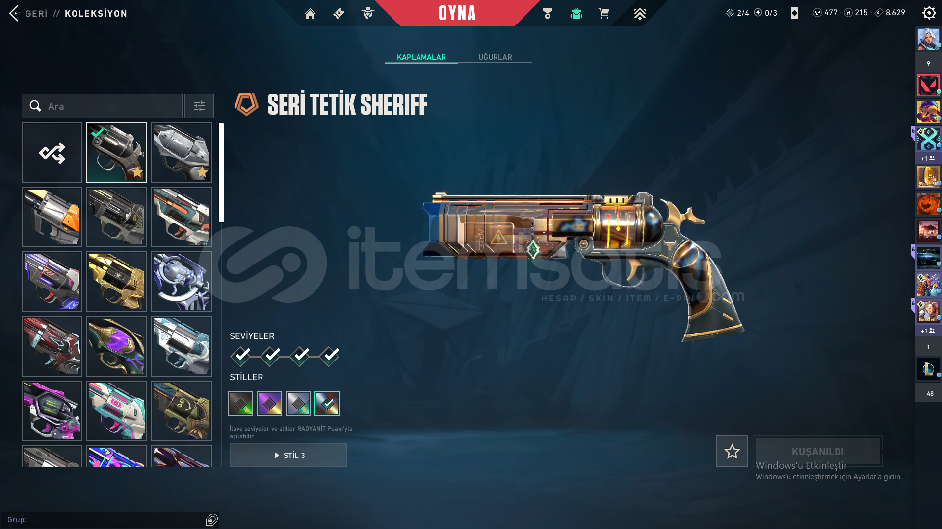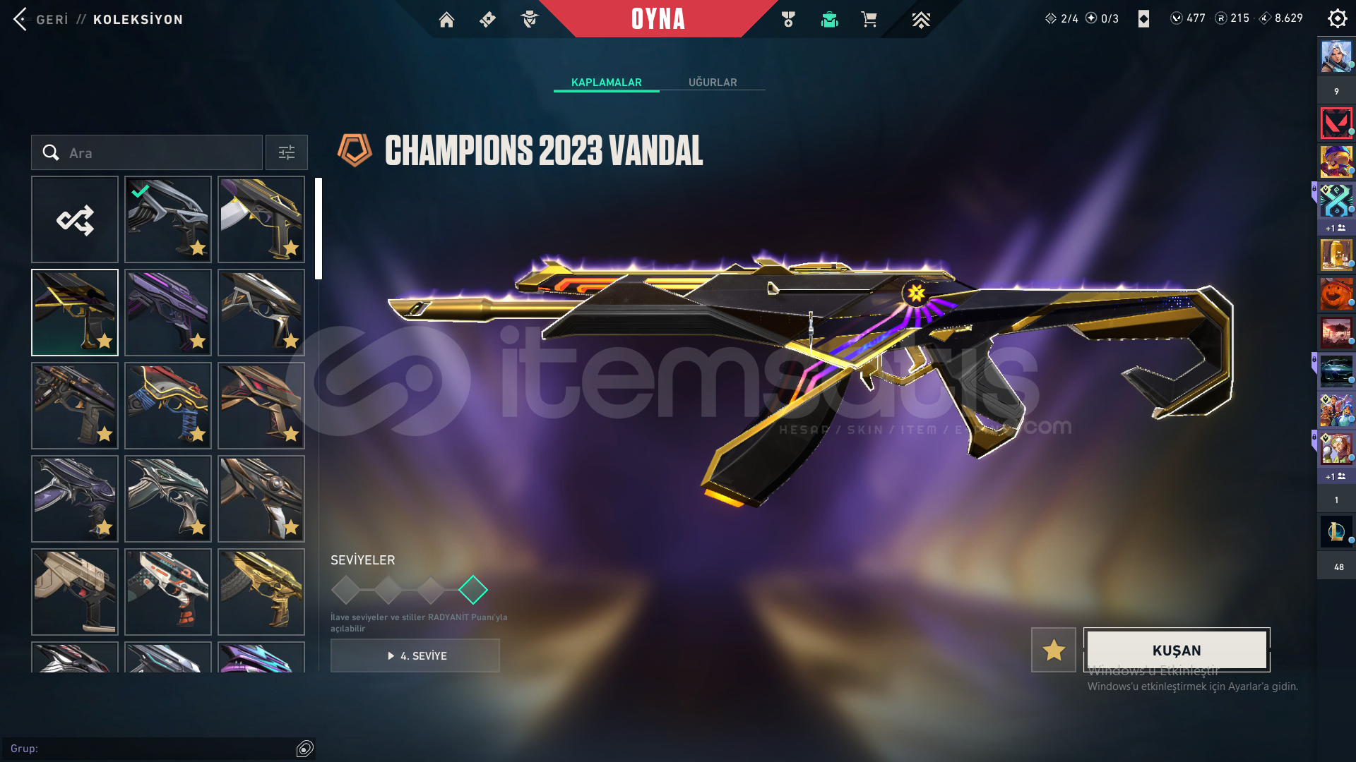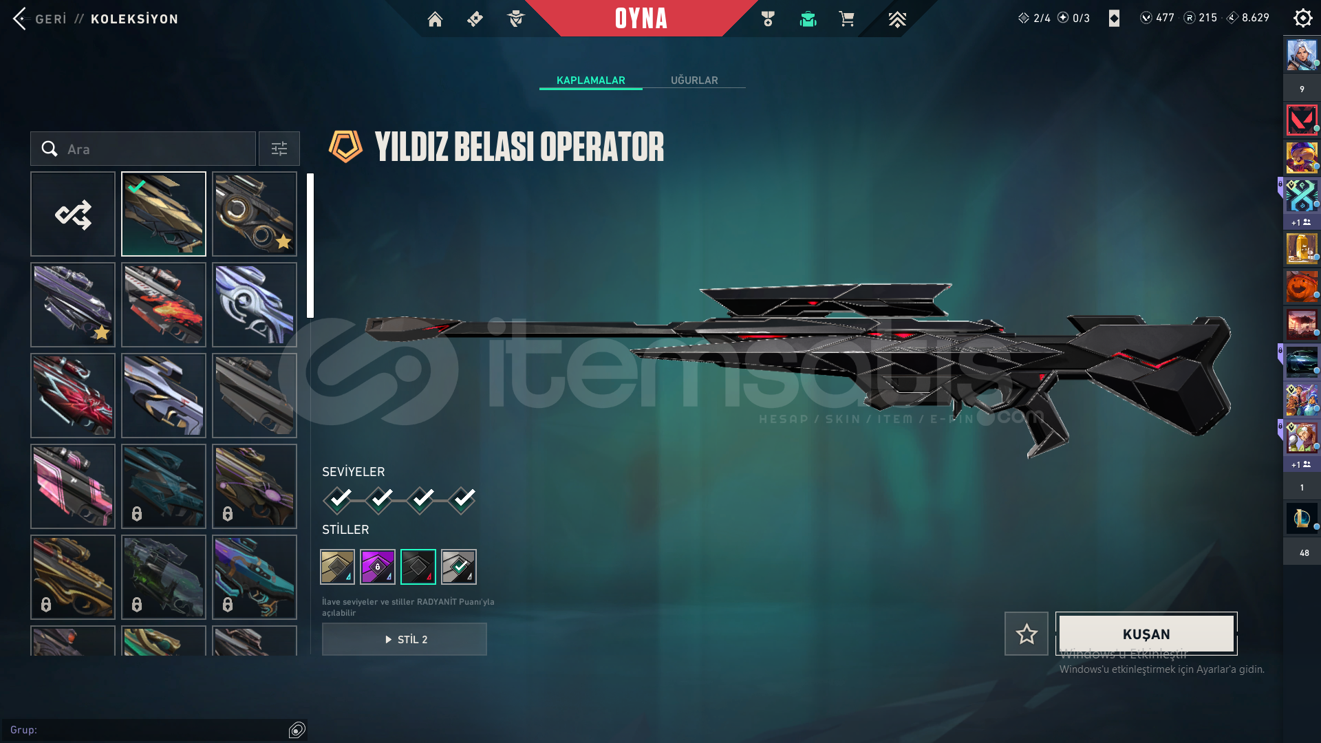 Öncelikle selamun aleyküm hesap dolular dolusu bi hesaptır toplam 191 skin mevcuttur bir çok ful set bir çok nadir itemler champions 2022 vb vb hesap kesinlikle tatmin edici bir hesaptır peek immo 3 güncel rank plat 1 olup 492 seviyedir detaylar resimlerde mevcuttur özelden detaylı bilgi verilir hesabın kurucu e postası mevcuttur fakat şahsi meil olduğu için verilmeyecektir istediğiniz güvence sağlanır bi sorun yaşarsanız hesabımın her zaman arkasındayım zararınız temin edilir bu şekilde almak isteyen iletişime geçebilir
