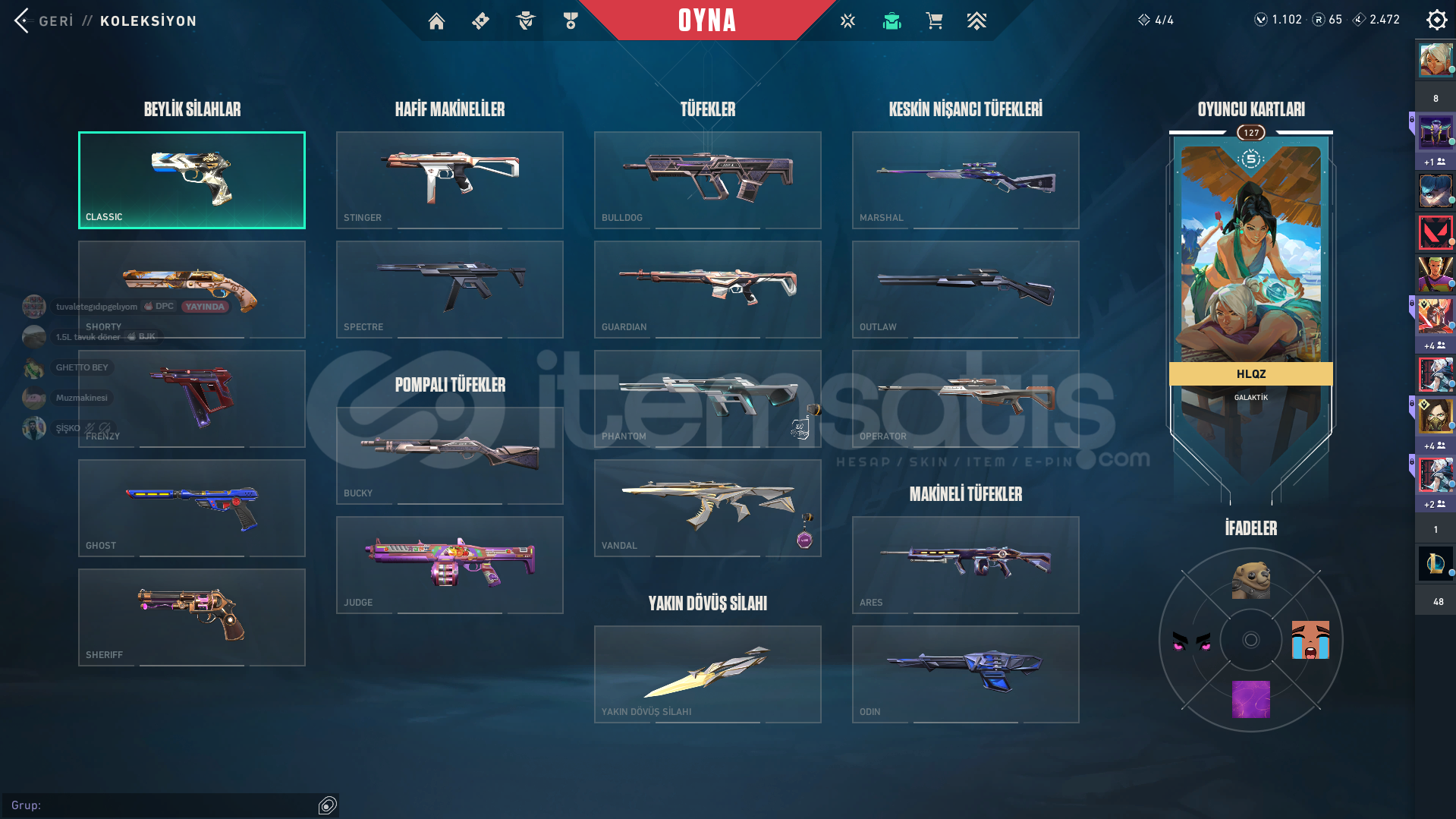 İLK SAHİBİ DEĞİLİM 7 AY ÖNCE OYNAMAK İÇİN SATIN ALDIM OYUNU BIRAKTIĞIM İÇİN SATIYORUMSKİNLER:Radiant entertteiment ghostsihirpunk sherifvct 25 classicşimşek spectreşimşek phantom anomali-iyon-ışık muhafızı vandalanomli kelebekşimşek bıçakşimşek frenzyşimşek outlawPEEK RANK DİA3