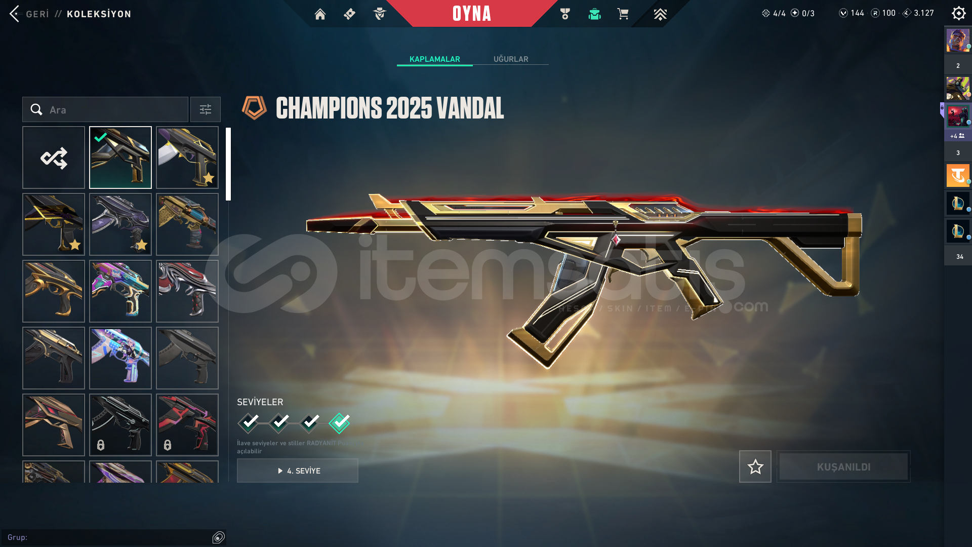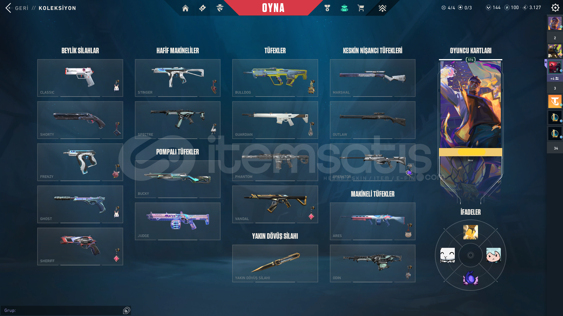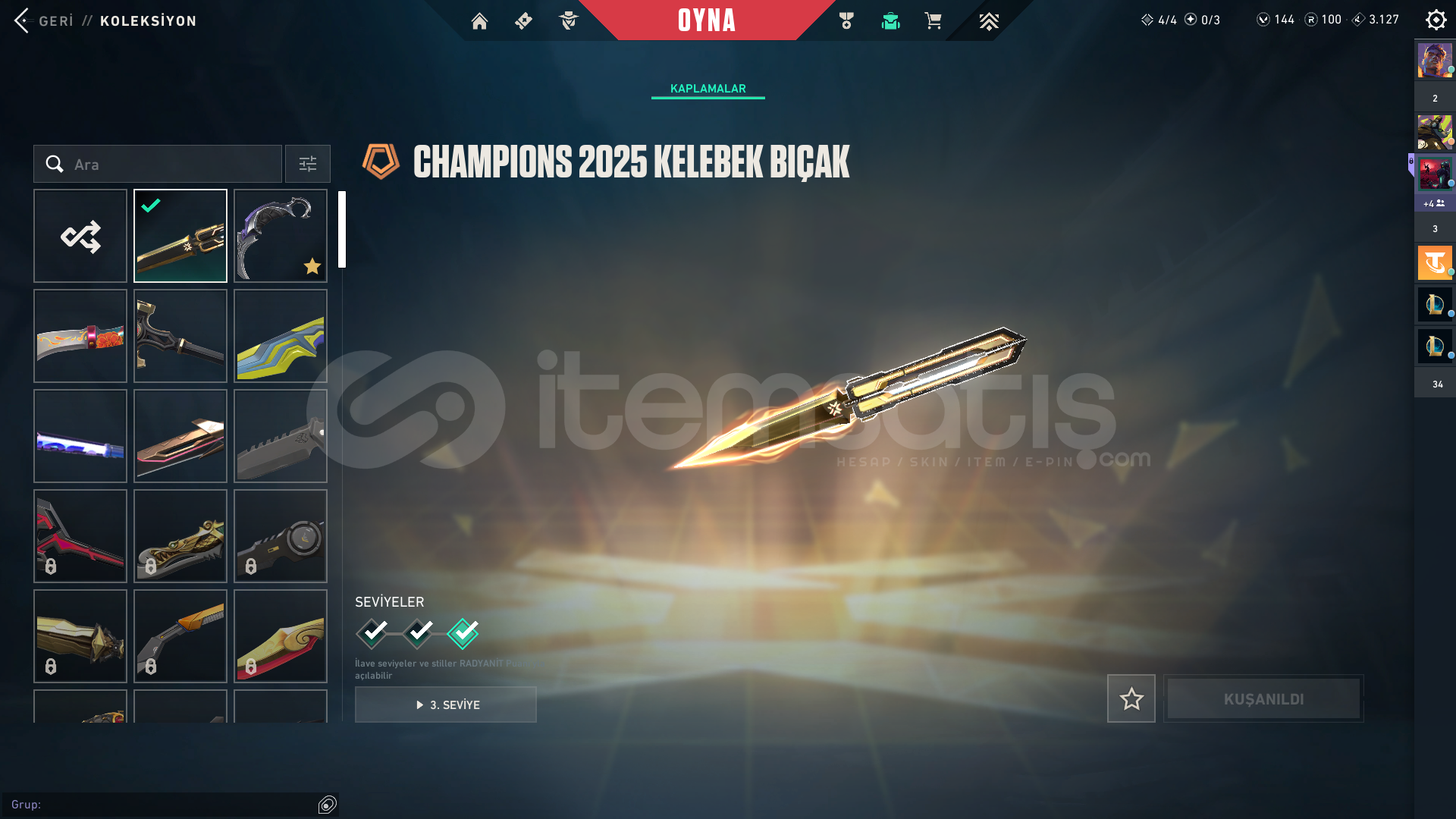 *8 VANDAL SKİNİYAĞMACI VANDAL- ASİL VANDAL - CHAMPİONS 2023 VANDAL - CHAMPİONS 2025 VANDAL - DELİPOP VANDAL - ULUPENÇE VANDAL - ARCANE VANDAL - CESUR YÜREK VANDAL*3 PHANTOM SKİNİÖZEL HAREKAT PHANTOM - YAĞMACI PHANTOM - ASİL PHANTOM*2 OPARATÖR SKİNİYAĞMACI OPARATÖR - CESUR YÜREK OPARATÖR*3 BICAK SKİNİYAĞMACI KARAMBİT - ULUPENÇE BIÇAK - CHAMPİONS 2025 KE...