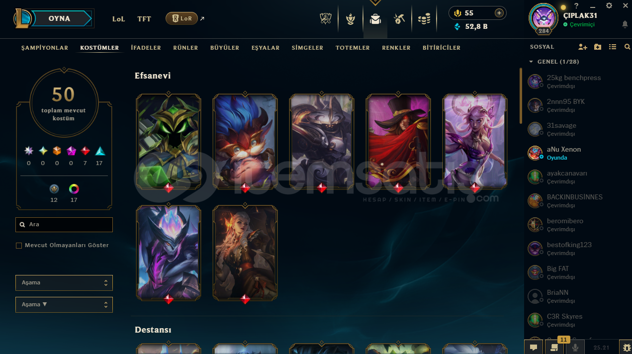 2 SKİN 82 LEVEL + LOL HESAPI BULUNMAKTA
